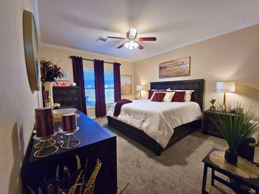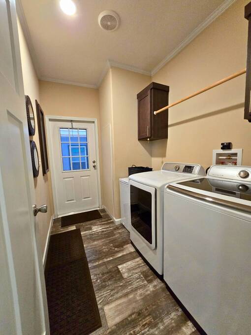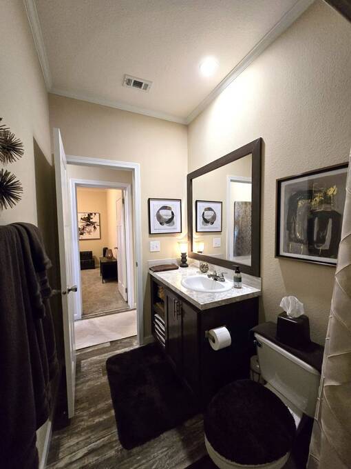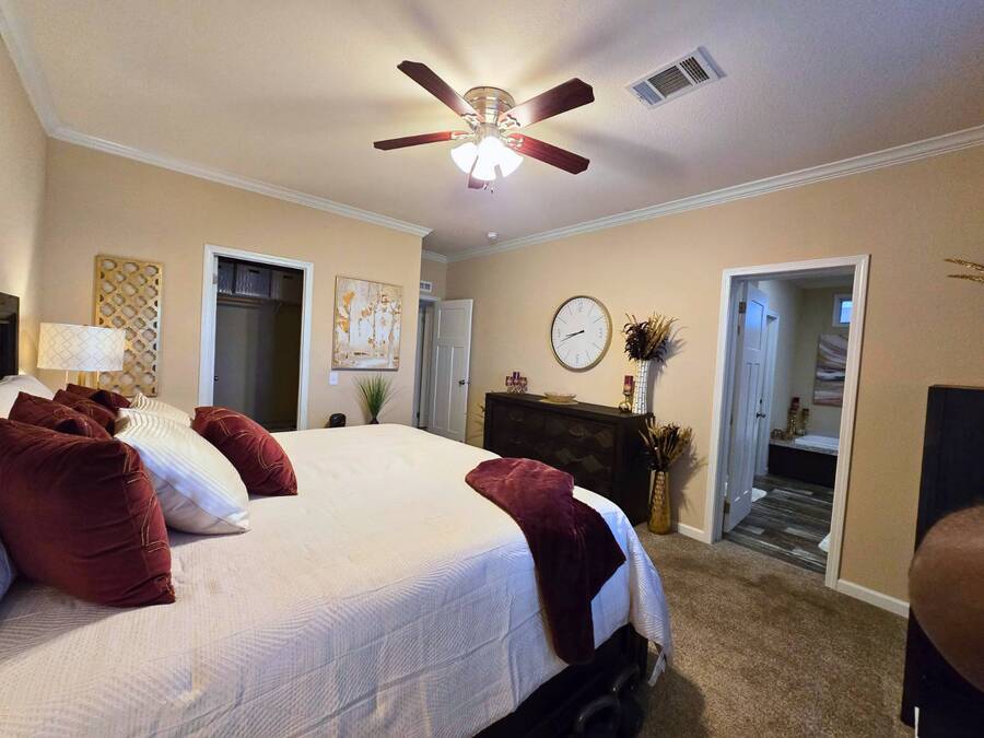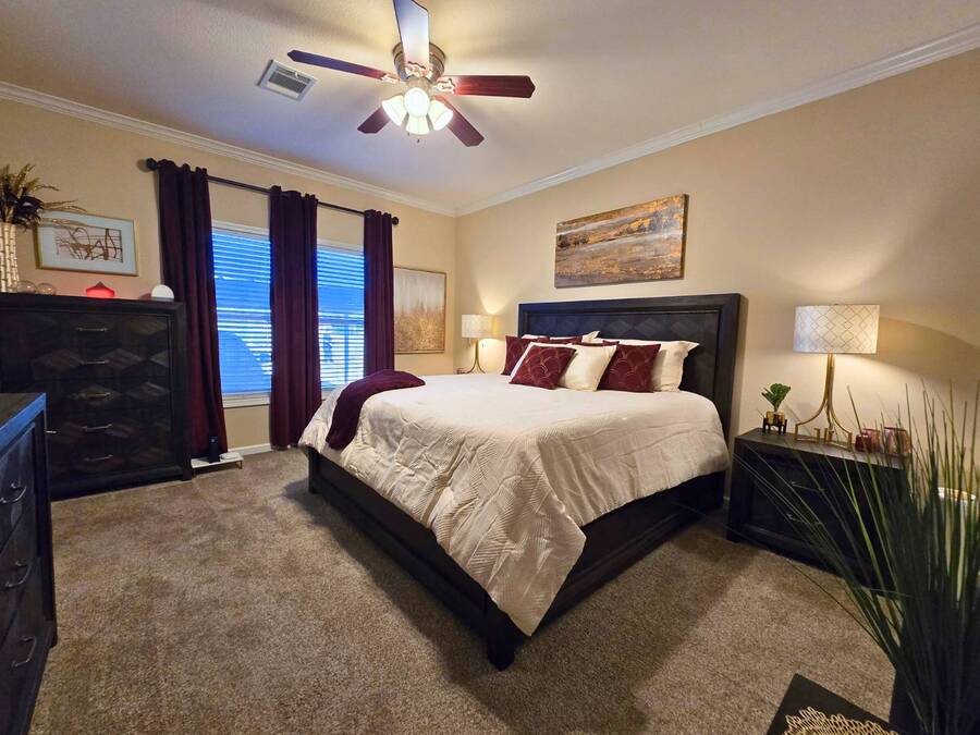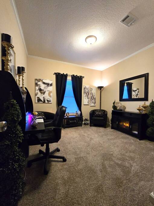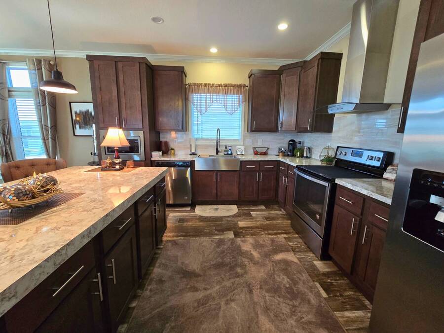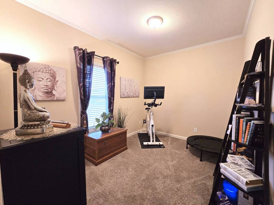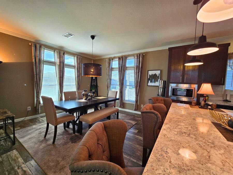 Beautiful and well-maintained 4-bedroom, 2-bath doublewide located in the highly desirable Harston Woods community. Inside, the open-concept layout features a spacious living room with a tray ceiling, large windows for natural light, and a seamless flow into the kitchen and dining areas. The kitchen includes generous cabinet storage, ample counter space, an oversized island with bar seating, and stainless-steel appliances, including a refrigerator, dishwasher, and garbage disposal; the stove and microwave are NEW (March 2026). The primary suite offers a private bath and walk-in closet, while three additional bedrooms and a secondary bathroom provide comfortable flexibility for family, guests, or work-from-home needs. Outside, the home features a covered front porch, solar screens, gutters, a large carport, and a storage shed for added convenience. The community is clean, well-kept, and ideally located near major highways, offering easy access to entertainment, shopping, and great local restaurants. Lot rent is $750 per month, and community approval is required. Disclosures are regulated by the Texas Department of Housing and Community Affairs (TDHCA). Select furnishings may be available for separate purchase.