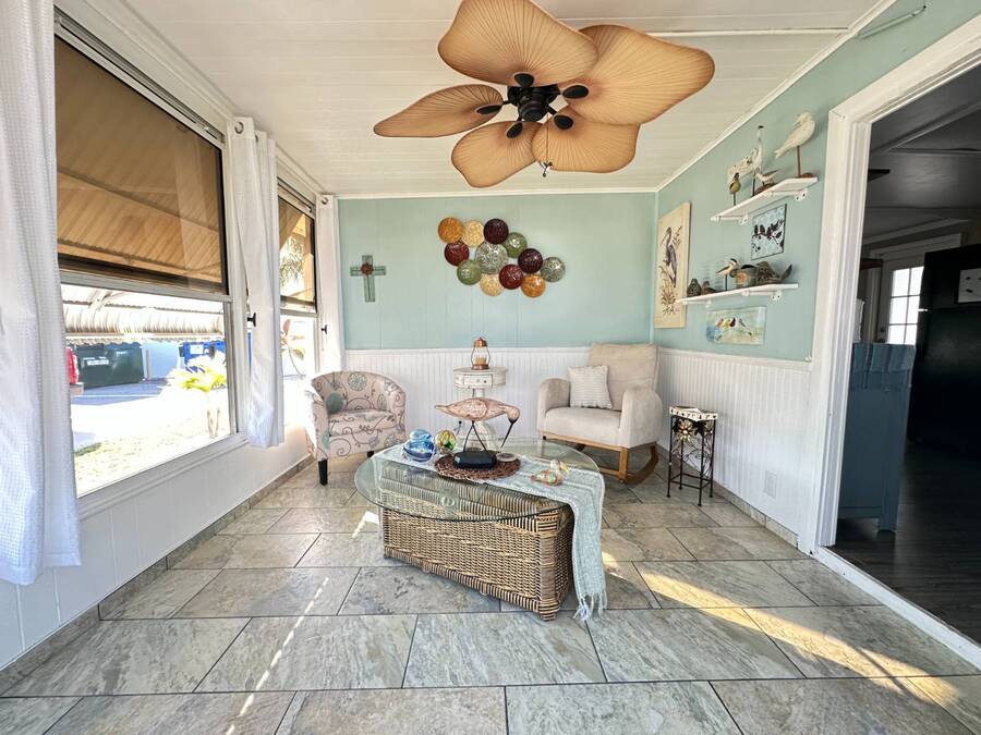 Live the Florida Beach Dream! Stylish 2-Bedroom Coastal Retreat in a Vibrant 45+ Community Step into sunshine living with this beautifully updated 2-bedroom, 2-bath coastal haven-perfectly tucked inside a friendly 45+ community that welcomes your two small furry companions (up to 20 lbs each). Whether you're looking for a seasonal getaway or your forever Florida oasis, this charming escape blends comfort, style, and low-maintenance living. From the moment you pull up, the lush landscaped corner lot and standout curb appeal set the tone. Inside, warm, easy-care laminate flooring flows throughout, adding to the clean, beachy vibe. The spacious primary suite features a private ensuite with a walk-in shower, while the renovated guest bath shines with a modern vanity and updated shower-perfect for pampering guests or enjoying your own daily retreat. The expansive Florida room offers endless possibilities: morning coffee lounge, hobby room, reading nook, or breezy home office. Step outside to the open carport's seating area to enjoy the afternoon breeze, or unwind on the private patio tucked behind the shed-a hidden sunspot ideal for those cool Florida winter mornings. Storage is a huge plus here, with multiple sheds perfect for beach gear, tools, and seasonal items. One shed even houses your in-home laundry for ultimate convenience. And here's a rare bonus: the home is equipped with TWO water heaters, ensuring hot water is always ready-ideal for guests, long showers, or winter stays. Lovingly maintained by its previous snowbird owners, this home is move-in ready and full of coastal charm. Best of all, you're just minutes from the sugar-white sands of Clearwater Beach and Indian Rocks Beach, close to beach bars, fresh seafood, boutique shopping, and everyday essentials. With a monthly lot rent under $900-including water, sewer, trash, and lawn care-you'll enjoy resort-style living without the resort-style price. Ready to embrace the Florida beach lifestyle? Call Daniela today to schedule your private tour. This cheerful coastal hideaway won't last-come claim your slice of paradise!