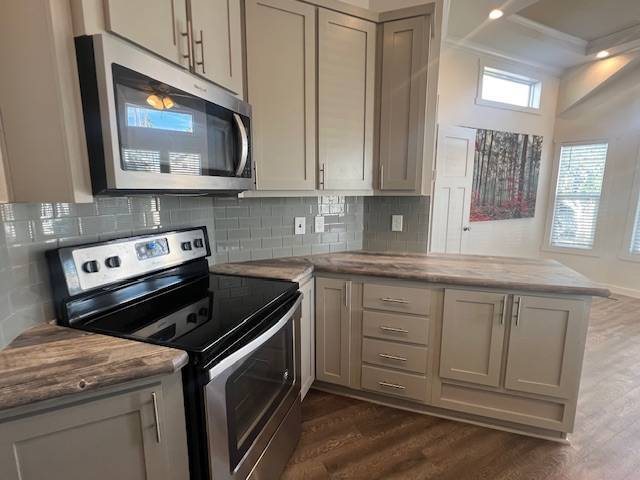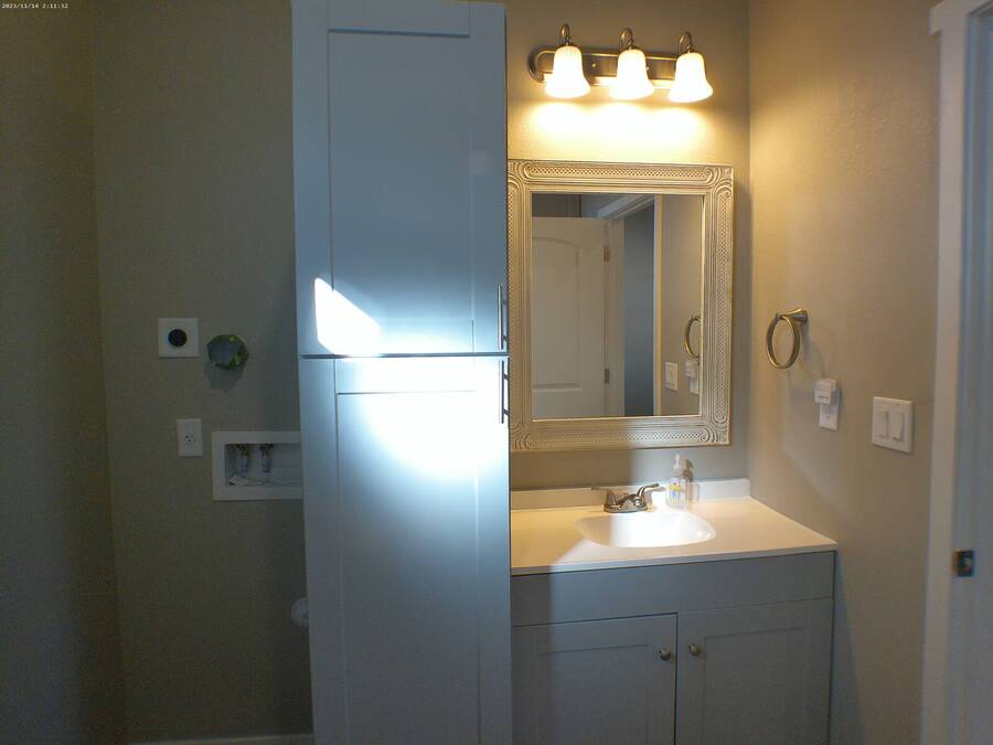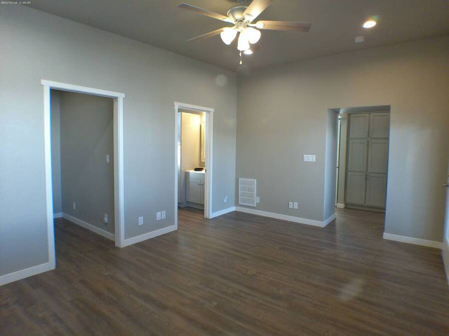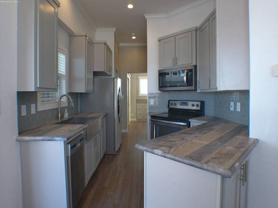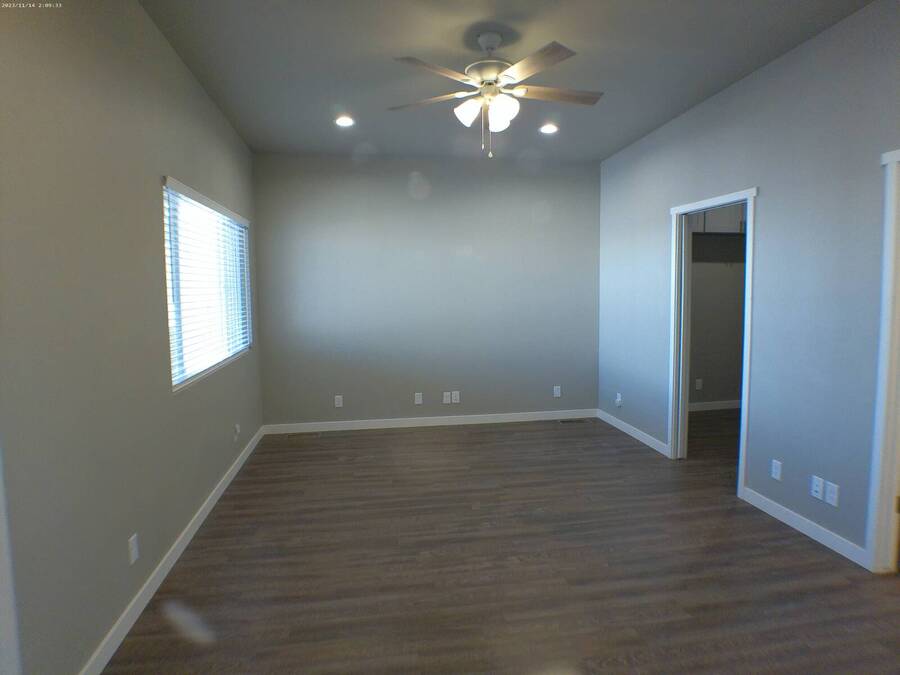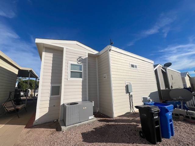 Located in a 55+ Community in Mesa, AZ. This home is like new and includes raised composite decking with metal railing, double-pane windows, wood-look laminate flooring, recessed lighting, and multiple ceiling fans. The kitchen features all stainless steel Whirlpool appliances, a flat-top stove, built-in microwave, glass tiled backsplash, laminate countertops, and a deep single sink with disposal. Additional features include a step-in tiled shower and built-in medicine cabinet. The bedroom offers a large closets and built-in bedroom counter. Bonus room with storage cabinets, hall storage, washer/dryer hookups. Central A/C & Heat, Lot Rent Paid Until January 2027! Lot Rent is Noted as an Monthly Estimated Cost that is Due Annually Each Year.