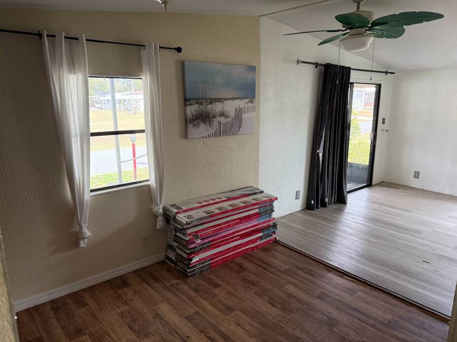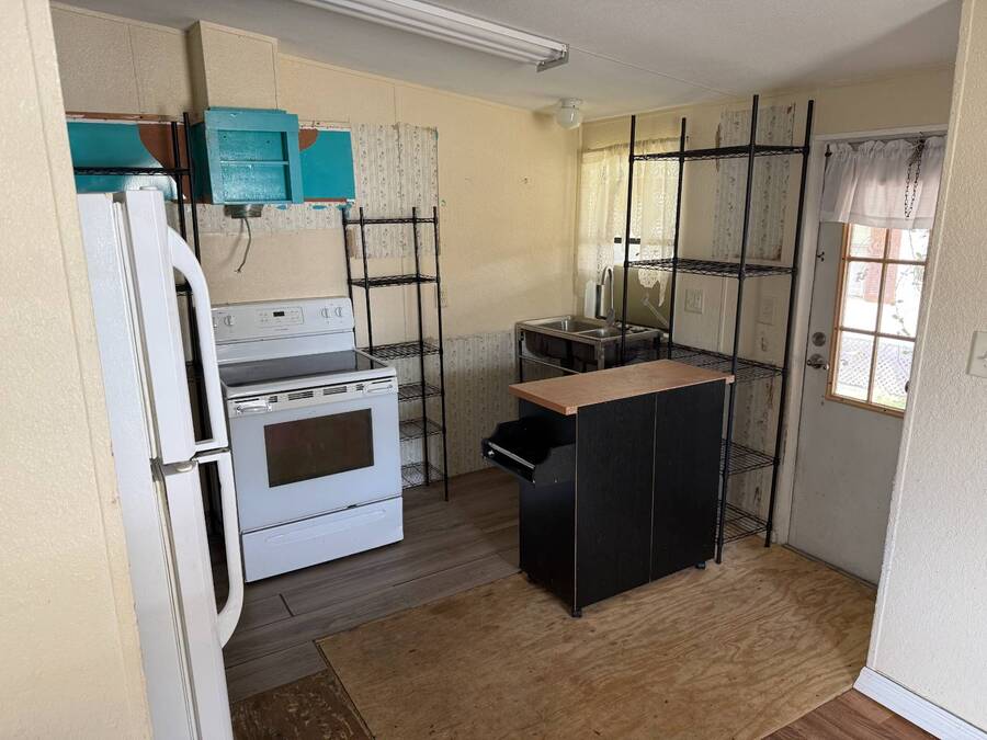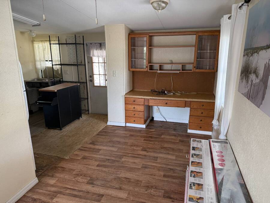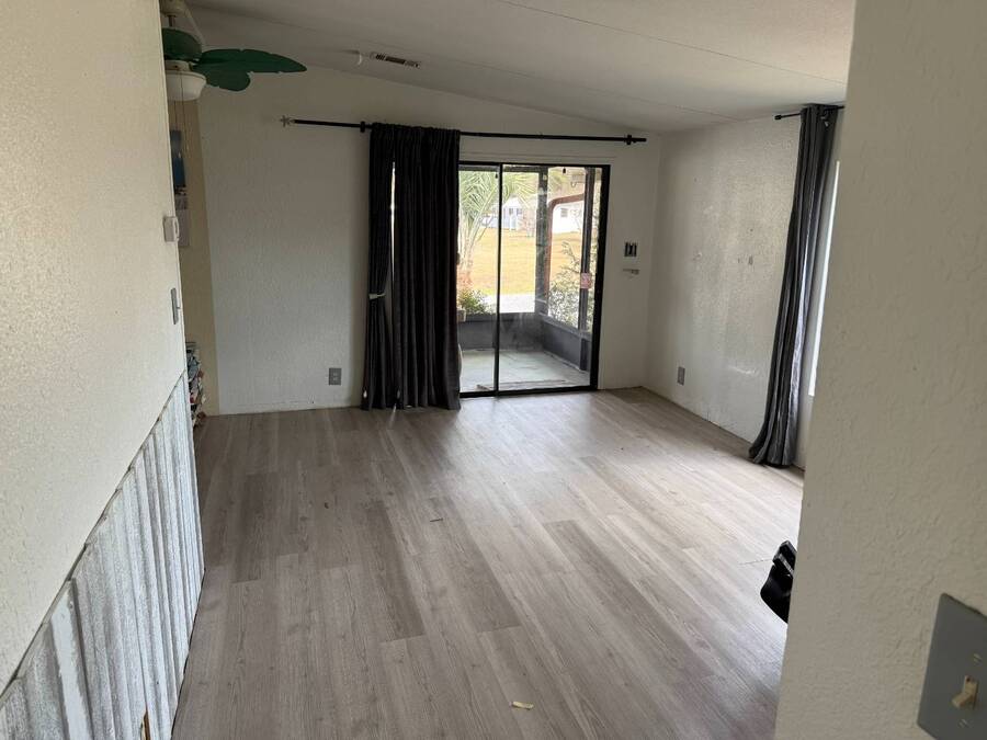 This home offers the perfect blend of comfort, convenience, and community. Whether you're looking to downsize, enjoy retirement, or simply embrace a low-maintenance lifestyle, this property is ready for you to move in and start living your best life. Floors have been updated throughout but need finished in kitchen/dining (materials sold with mobile home). Kitchen is currently unfinished, but shelving can be sold with as well.