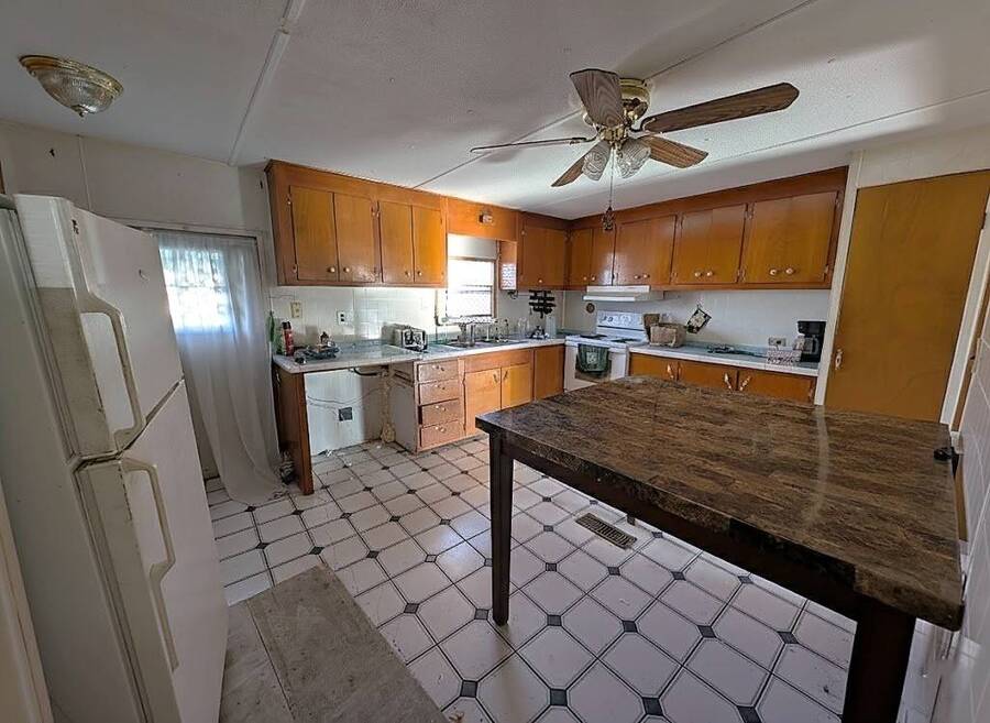 This is your opportunity: 4-bedroom, 2-bath home offers a great value with plenty of room to make it your own. It features a large kitchen, a generous living room, two full bathrooms, and washer/dryer hook-ups for added convenience. Featuring a convenient carport and two storage sheds, you'll have all the space you need for tools, hobbies, golf cart and extra belongings. The home does need some updating/TLC, giving you the perfect chance to customize it to your taste. Located in a desirable 55+ community, residents enjoy exceptional amenities including swimming pools, a gated security entrance, clubhouse, fitness center, and pet-friendly areas. You'll love being conveniently close to dining, shopping, parks, and major highways, making everyday errands and outings a breeze.