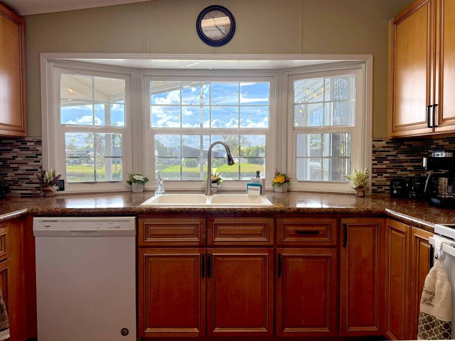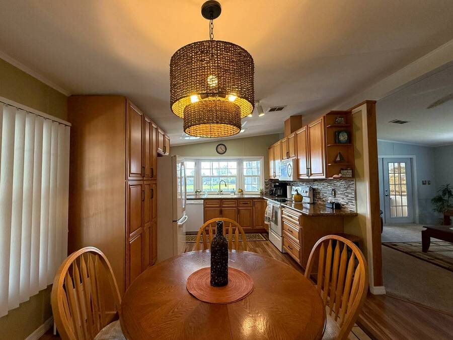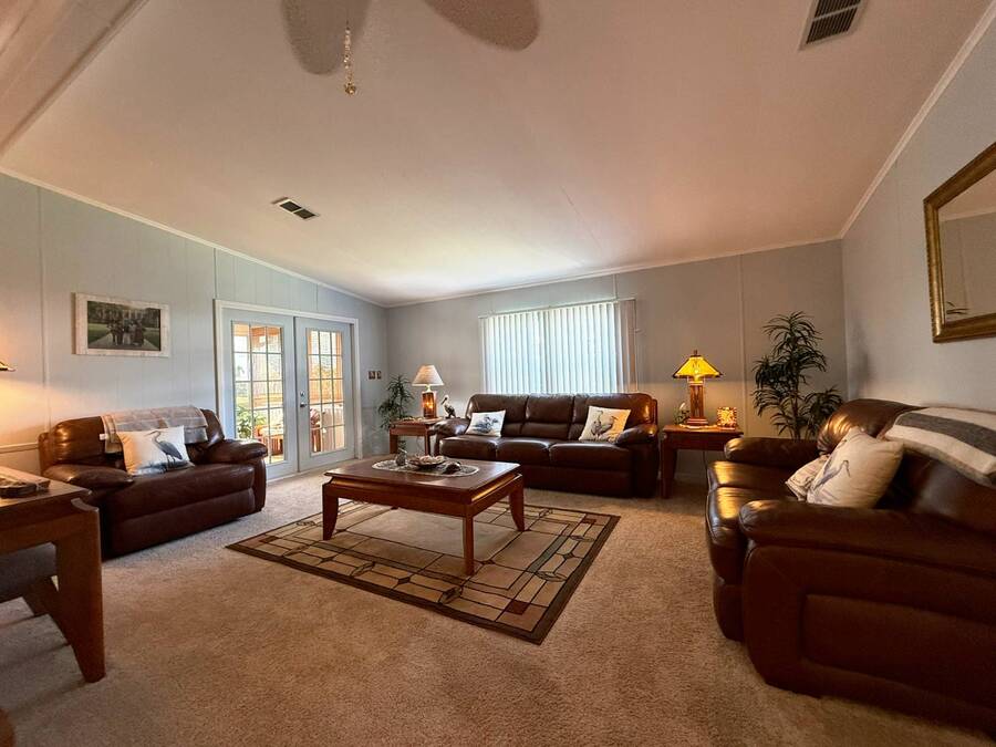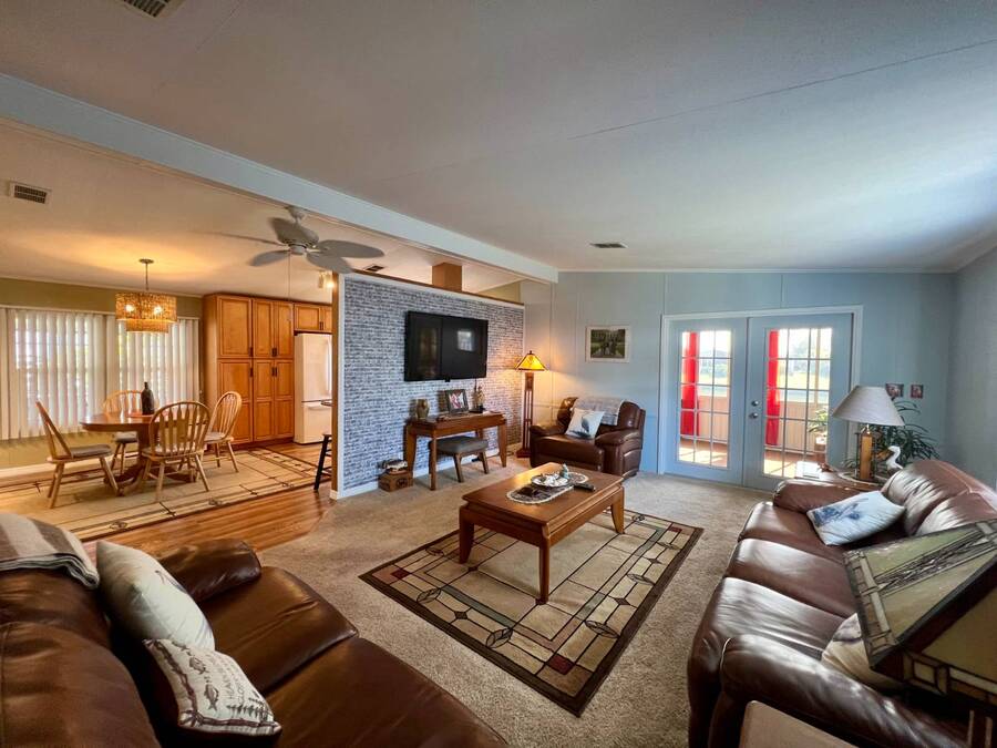 Experience True Florida Living in This Upgraded Waterfront Home with Two Lanais This charming 1986 two-bedroom, two-bath manufactured home offers 1,232 square feet of interior living space, plus an additional 160 square feet under air in the enclosed lanai. Altogether, you have nearly 1,400 square feet of comfortable space to enjoy. As you approach the back of the home, you'll notice it offers multiple outdoor living areas designed to take advantage of the beautiful lake setting. The enclosed air-conditioned lanai measures 10x16 feet and adds valuable living space with peaceful views of Long Lake. It's an ideal spot for reading, morning coffee, or simply enjoying the scenery in climate-controlled comfort. Just beyond that is the screened lanai, which is 10 feet by 23 feet. This large space includes a hot tub and captures natural breezes from the lake, making it a wonderful place to unwind at the end of the day. Outside the screened lanai, an additional concrete patio overlooks the water and is perfect for grilling, entertaining, or relaxing with friends. Inside, the home features an inviting living room with tall vaulted ceilings that make the entire space feel open and airy. Large windows bring in plenty of natural light and allow you to enjoy the lake view from inside. The living room flows into the dining area, which connects seamlessly to the updated kitchen. The kitchen has upgraded wooden cabinetry with soft-closing doors and drawers, slide-out shelving, deep drawers for pots and pans, a decorative glass tile backsplash, and attractive countertops. There is plenty of storage and workspace, making this a very functional and comfortable kitchen to spend time in. A new microwave was installed in January of 2024. Both bedrooms are well sized. The guest bedroom offers good closet space and works well for visitors or as a hobby or office room. The master suite is spacious and includes generous storage plus a private bathroom. In 2023, new vanity tops were installed in the bathrooms, giving them a clean and refreshed appearance. The home also has PVC plumbing, a vapor barrier, and thermal windows. It passed a four-point inspection in June 2023, offering solid peace of mind. In 2025, the thermostat and exterior wiring were replaced. The roof was spray-sealed and resurfaced in February 2024 and comes with a twenty-year warranty. New landscaping was added in 2024 to complete the exterior appeal. Living in Colony Cove means enjoying a true resort-style lifestyle. The community offers six heated pools, a fitness center, tennis and pickleball courts, shuffleboard, cornhole, multiple clubhouses, a picnic pavilion, a fishing pier, horseshoe pits, barbecue areas, and a pet-friendly environment. Whether you prefer relaxing by the water, joining community events, or staying active with outdoor recreation, there is always something to enjoy. With its spacious layout, upgraded features, additional air-conditioned living space, and peaceful waterfront setting, this home provides an excellent opportunity to enjoy the Florida lifestyle at its best. Lot rent in Colony Cove varies depending on the location of the home within the community. This monthly fee includes not only access to the extensive list of amenities but also covers many of your routine living expenses. Water, sewer, trash pickup, property taxes, and lawn care are all included, leaving you responsible primarily for electricity and internet, which helps simplify budgeting. While all listing details are provided to the best of our knowledge and believed to be reliable, we always recommend that buyers arrange for a professional home inspection by an experienced company familiar with manufactured homes. Please note that lot rents are set by the community office and are subject to change. Colony Cove offers an exceptional lifestyle with minimal hassle-perfect for those looking to enjoy their retirement in comfort, convenience, and community.