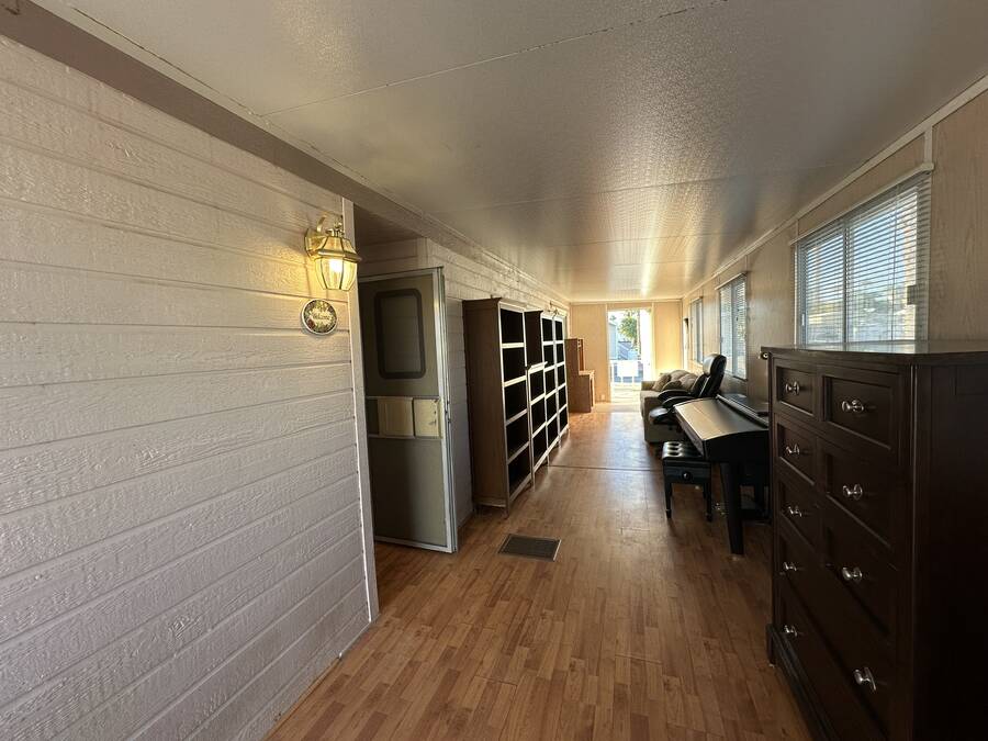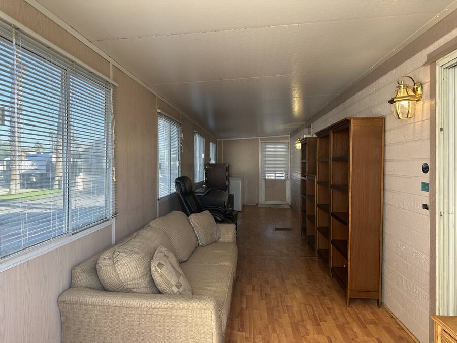 Reduced Price!! Ready for Full time RV living?? This park model is twice the size of most with a total of 655 Square Feet of Living Space. 379 sq ft park model with a Great Room addition!!! The addition adds 276 square feet of space. What will you use it for??? Playroom, office, den. So many possibilities. This one bedroom and one bath park model home is located in the back half of the property near one of our 3 pools. The air conditioner is huge and is fairly new. Included in the sale are some furnishings, washer and dryer, full size refrigerator, stove, microwave, BBQ and a shed. There is a covered porch at the rear of the property which means you can enjoy sitting outside without the afternoon sun. ALL reasonable offers will be considered. Cash preferred. Incentives available for cash buyers.
