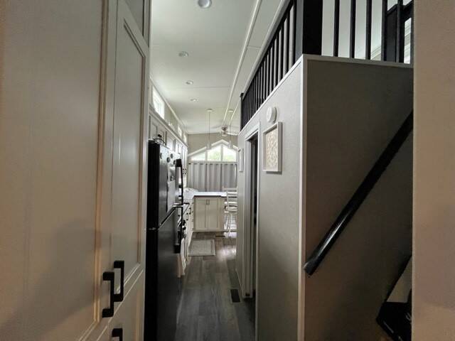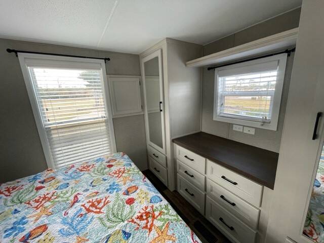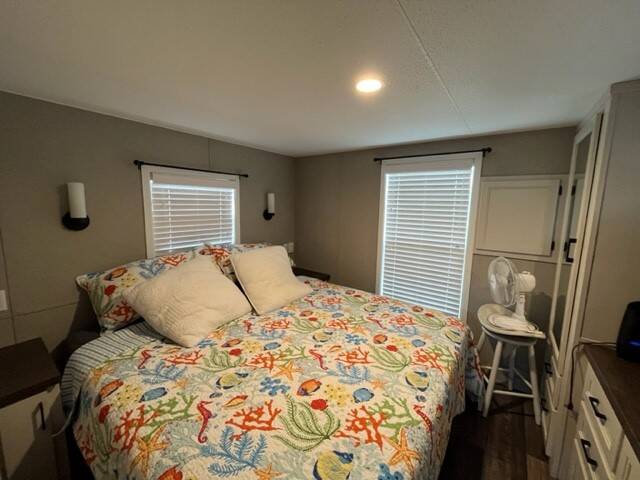 Charming Park Model home in Cedar Point, NC is a cozy retreat with 1 bedroom and 1 bathroom. Built in 2022 by Kropf, this home features a loft space perfect for additional sleeping quarters or storage, a spacious living room, a well-appointed master bedroom, and a fully equipped kitchen with stainless steel appliances. The exterior of the home boasts a deck for outdoor entertaining, trees on the property for added privacy, concrete driveway, vinyl siding for low maintenance, a shed for storage, and a screened porch to relax and enjoy the beautiful surroundings.