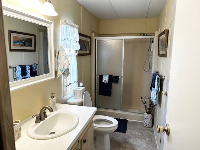 Relax in the living room and enjoy your wonderful pond view. 2017 new HVAC system installed with prepaid service plan through 2027 AND it transfers to new owners. Master bedroom has newer furniture and carpet has walk in shower and closet. Guest bedroom has newer furniture as well. Guest bathroom has reglazed shower/tub. Both bathrooms have new everything. Both bedrooms have large closets. Ceiling fans in living room and master bedroom. Screened lanai has pond view also. Side by side washer dryer in laundry room inside house. Roomy shed has built in shelves and is dry. Won't last long at this price.