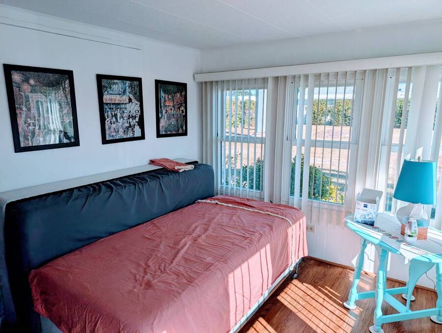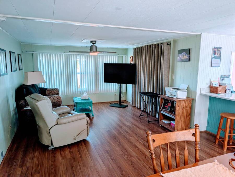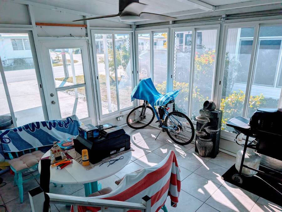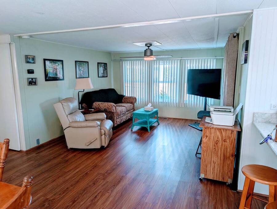 Fully furnished in excellent, excellent condition. Many improvements including Master bedroom shower, support beams in carport, New beam in lanai for ceiling fan. New ceiling fans. Stove, heat pump has 8 years remaining on warranty. Roof has a transfer option for 15 years remaining. Nice laminate flooring, newer windows. Bonus room has room for a spare bed for company and friends or could be an office. Kitchen appliances all in good condition, an island separating the kitchen from the formal dining room and living room. Formal dining room has 2 built in corner cabinets, vertical blinds, living room has vertical blinds, guest bathroom has tub and shower, linen closet. Master bedroom has large built in closet with drawers, a smaller closet, vertical blinds. Nice coat closet in the hall. Guest bedroom has built in closet with drawers, a built in desk, exit into lanai. Lanai in carport has tile floors, long windows with screens, screen door. Shed has washer and dryer, hot water tank, breaker box and storage. 6 ceiling fans to circulate air are remote controlled inside house and lanai. Serendipity is a well sought after community with 2 heated pools, 2 clubhouses, covered shuffleboard courts, bocce ball courts, physical fitness center. Beaches are minutes away, near airports, shopping, fine dining, Hurry won't last long at this price. Buyers are advised to check with management for rules and regulations and current lot rents. All information is from the seller but has not been verified.