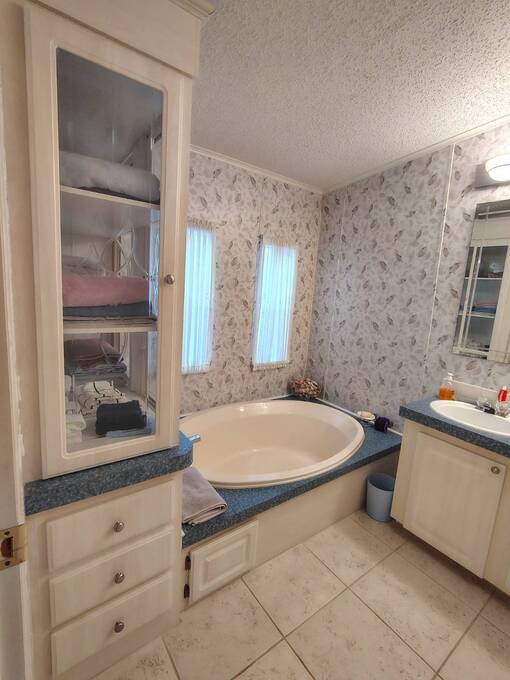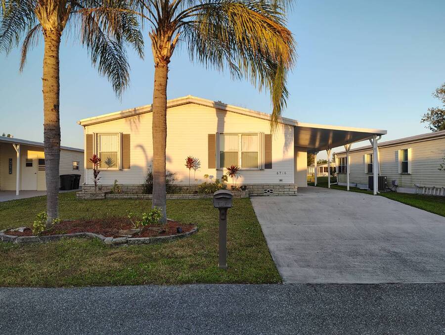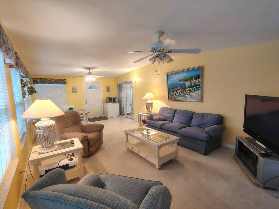 Welcome to this 3-bedroom 2-bath oasis!!! Lot Rent includes all amenities at $1,081.00 a month, cheaper than a 1-bedroom apartment or Airbnb. Light and bright remind you that you are in Sunny Florida. Enter the foyer, which leads into the lovely living room, dining room combo in the center of the home. The Large galley kitchen offers an eat-in breakfast area and plenty of cabinets and counter space, with Newer Vinyl Plank floors. Kitchen Sliders open to the enormous Great/Family room with a wall of windows for natural light, where you can spend most of your time relaxing and enjoying the views of the lake with fabulous sunsets and sunrises. The primary bedroom includes an en-suite with a large garden tub, double sinks, and a separate shower. The home offers a split bedroom floor plan with the second and third bedrooms for your guests located at the front of the house. Both are good size with ample closet space. A large patio off the great room is perfect for a cookout. The shed offers extra room for your tools. Whether you're a snowbird or a permanent resident, there is plenty to do in Spanish Lakes Fairways. The lot rent covers all the amenities, including lawn maintenance and trash. Enjoy the 18-hole Golf Course, or join many clubs and make new friends - start making new memories. Two billiard rooms, a fitness gym, 2 heated pools, one for Residents and one for guests, a Card Room, Workshop, Bocceball, Tennis, and Pickleball courts, shuffleboard, and so much more. Located just minutes from the local beaches, Downtown Fort Pierce, explore and enjoy a walk on the Jedi, taking in the Ocean views, and many Seaside Restaurants, Shops and Theatre. Approximately 15 minutes to Vero Beach, where you can enjoy more shopping, restaurants, and adventure. Call today to schedule a showing. All listing information is deemed reliable but not guaranteed and should be independently verified through personal inspection by appropriate professionals. Our company does not and cannot guarantee or warrant the accuracy of this information or the condition of this property. Measurements are approximate. The buyer assumes full responsibility for obtaining all current rates of lot rent, fees, and pass-on costs. Additionally, the buyer is responsible for obtaining all rules, regulations, pet policies, etc., associated with the community, park, or home from the community/park manager. Our company is not responsible for quoting said fees or policies. Financing is available through 3rd party lenders. The sales price does not include tax, dealer fees, or administrative fees. Please contact the sales agent for additional information.
