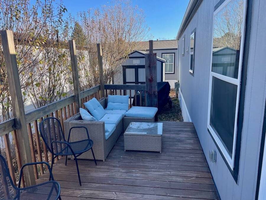 Welcome to this beautifully maintained 2021 Manufactured home located in the desirable Vista Village Mobile Home Park in Boulder, Colorado. This modern and spacious home features two primary bedrooms, each with its own full private bathroom, offering comfort and privacy for family members and guests. The Property features central air conditioning and elegant, fully tiled bathrooms with a soaker bathtub. The primary suite offers a private deck, perfect for relaxation or entertaining. Additional highlights include a newly installed 10x10 storage shed. The layout includes a unique and flexible design that can easily function as a 1-bedroom, 1-bath unit perfect for renting to a friend or family member. the convivence of single-level living with central heating and energy-efficient construction. The home sits on a well-kept lot within a peaceful, all-age community offering easy access to Boulder's shops, dining and parks and public transportation. The home combines modern design, functionality and unbeatable location, making it an excellent choice for those seeking affordable living in Boulder.