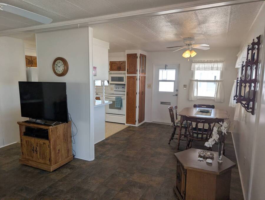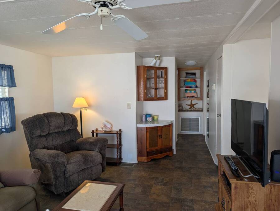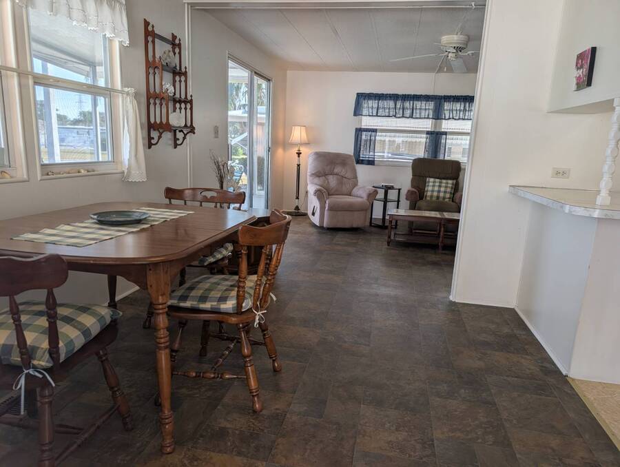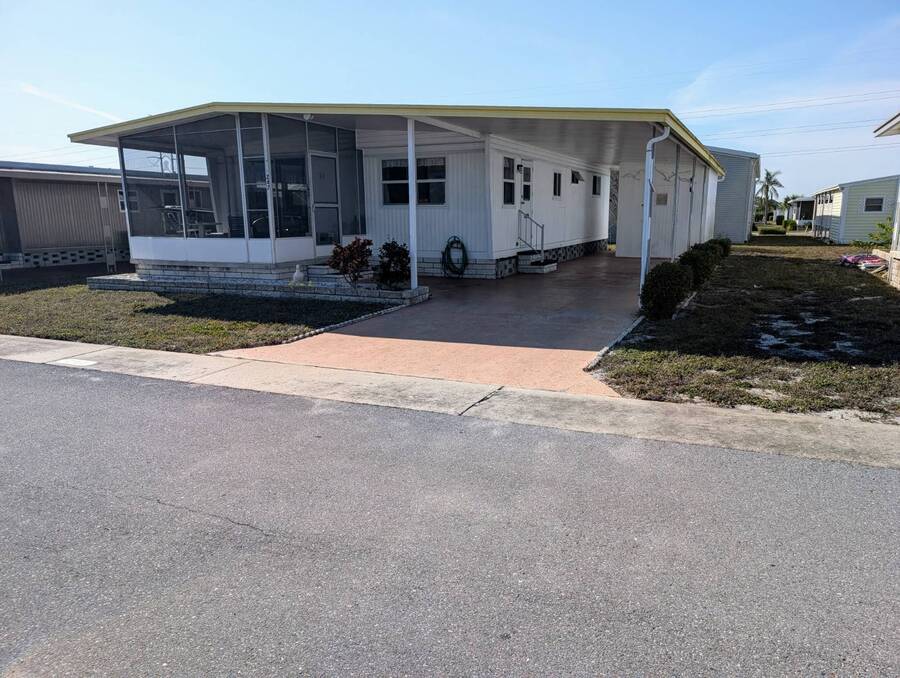 HOT LISTING, NOTHING TO DO BUT MOVE IN. WELL MAINTAINED 2 BEDROOM, 2 BATH HOME. ENTER THIS BEAUTY FROM THE CARPORT, DINING ROOM ON THE LEFT WITH LINOLEUM FLOORING, A CEILING FAN. KITCHEN ON THE RIGHT WITH VINYL FLOORING, REFRIGERATOR PURCHASED IN 2023, LIVING ROOM WITH A CEILING FAN BUILT IN CORNER CABINET, NICELY FINISHED DOORS.GUEST BATH WITH A LINEN CLOSET, A TUB AND SHOWER , TOILET ALL NEW IN 2019. MASTER BEDROOM NEWER LAMINATE FLOORING, NEW BED IN 2015. MASTER BATH LINOLEUM FLOORING, LINEN CLOSET. LARGE WALK IN CLOSET. GUEST BEDROOM HAS A DOUBLE CLOSET, CEILING FAN. FRONT PORCH HAD SCREENS REPLACED 2 YEARS AGO. WASHER AND DRYER IN OVERSIZED SHED. ROOF OVER 11 YEARS AGO. HOT WATER TANK 12 YEARS OLD. WASHER AND DRYER 16 YEARS OLD. ALL NEW WINDOWS. VAPOR BARRIER REPLACED IN 2015. WALK ACROSS THE STREET TO THE LARGE HEATED POOL AND CLUBHOUSE, EXCERCISE BUILDING, MAIL BOX CENTER. SERENDIPITY HAS 2 HEATED POOLS AND IS CLOSE TO THE AIRPORTS, FINE DINING, SHOPPING. BUYERS ARE RESPONSIBLE FOR CHECKING WITH THE SERENDIPITY OFFICE FOR PARK RULES AND REGULATIONS, CURRENT LOT RENTS. ALL INFORMATION IS FROM THE SELLER BUT NOT VERIFIED.