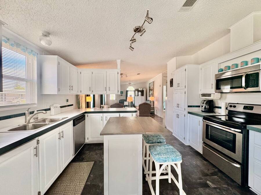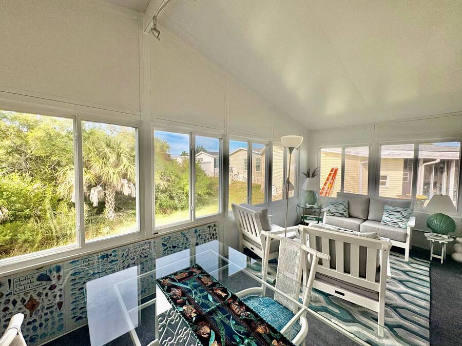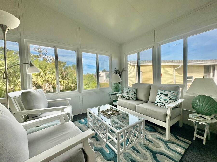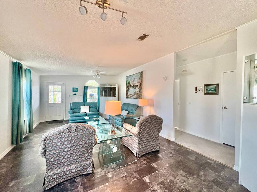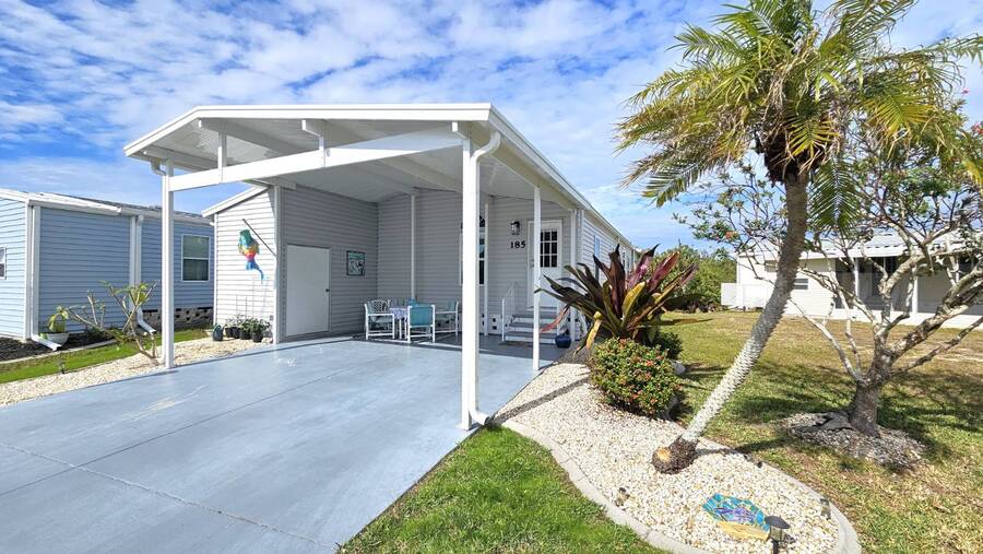 MOVE IN READY! MOTIVATED SELLER! Cable Installation included. 2B/2B + Bonus Room! Private Backyard! PET FRIENDLY! Welcome to this charming 2-bedroom, 2-bathroom home located in the desirable Punta Gorda, Florida. Situated in a 55+ community, this home offers an easygoing and peaceful setting for luxury living. As you step inside, you'll be greeted by 1276 sqft of beautifully updated living space. The home features a new enclosed Florida room with sliding windows, perfect for relaxing, entertaining guests or simply enjoying time with the grandkids. The private wooded back yard area provides a tranquil retreat where you can enjoy the beauty of nature. The home boasts a spacious master bedroom with a walk-in closet and an ensuite master bathroom featuring double sinks and a walk-in shower. The stainless-steel appliances in the kitchen, along with extra cabinetry space, make meal preparation a breeze. Residents of this community enjoy an array of amenities including a heated pool, shuffleboard, horseshoe pits, bocce ball, billiards, library, nature trails, and community activities. The stocked fishing lakes offer catch and release opportunities for fishing enthusiasts. With maintained lawn care and various outdoor recreation options, there's always something to do. Conveniently located just 5 minutes away from restaurants and shops at Fisherman's Village, this home offers both tranquility and accessibility. The property includes two parking spaces with a side-by-side driveway for added convenience. The lot lease for the home is $963 per month. Don't miss out on this fantastic opportunity to own a piece of paradise in Punta Gorda! Contact Lulu & David today to schedule a showing and make this wonderful home yours.