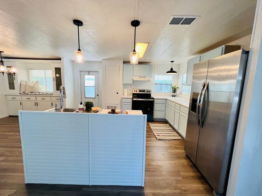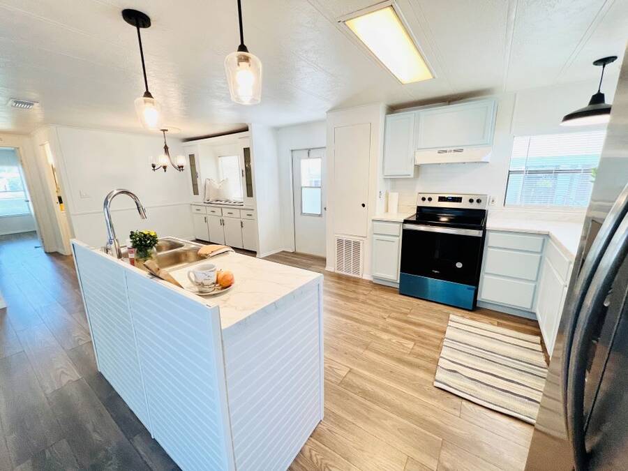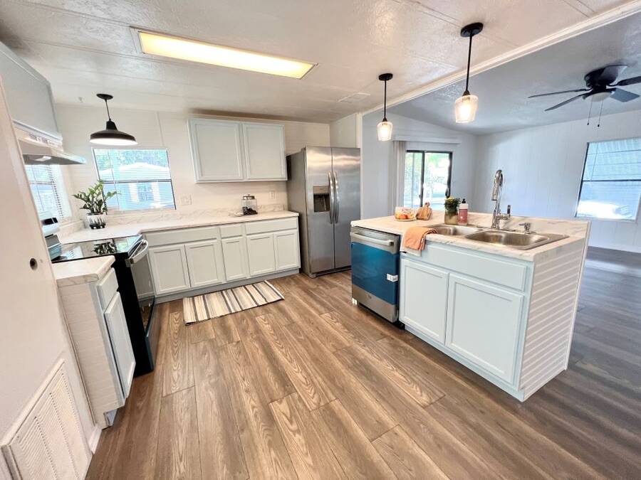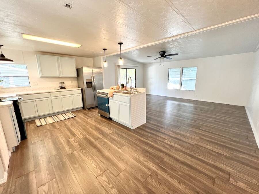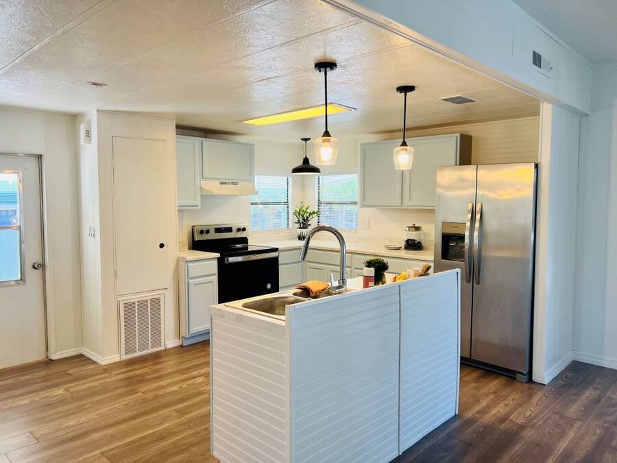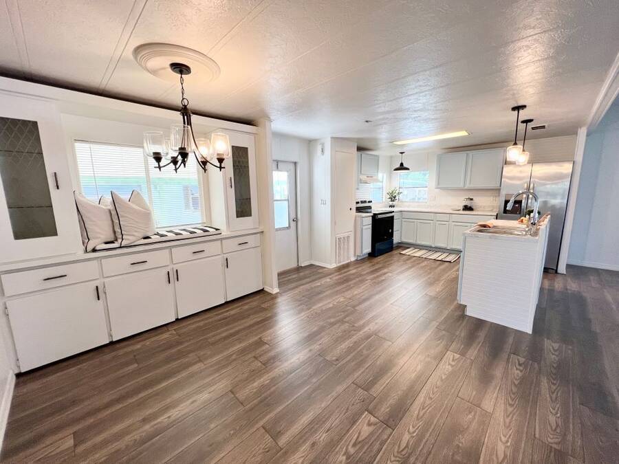 GORGEOUSLY REMODELED 2-BEDROOM, 2-BATHROOM HOME IN SOUTH LAKELAND!! The interior has undergone a complete transformation from top to bottom. Beginning with the stunning open kitchen featuring a center island, you'll find new cabinets, stainless-steel appliances, and a new sink. Throughout the house, new 3/4 inch subflooring has been laid, accompanied by waterproof vinyl plank flooring. Both the main and master bathrooms boast updates that include modern single sink vanities, updated toilets, and stylish bead boarding. Additionally, the interior has been freshly painted to enhance its appeal. On the exterior, improvements include a newer vapor barrier (2023), insulation (2023), tie downs, and a newer hot water heater out in the shed. This beautifully updated home presents countless possibilities and is waiting for you! Schedule your visit to see this gem before it is too late! **Home is sold unfurnished.** Active, 55+ community located in south Lakeland, FL, with numerous waterfront properties. Highland Village has so much to offer! Amenities include pool, fitness center, library, community room, horseshoes, shuffleboard courts, fishing dock and more. Laundry facilities also available. Smaller dogs (under 40lbs) with breed restrictions allowed. Within minutes of shopping, restaurants, and entertainment. 80/20 Rule. Rentals allowed. Motorcycles allowed. Lot Rent $1,045 includes water, sewer, trash, and tree care. KITCHEN: 12 x 12 • Vinyl Plank Flooring • Chandelier • Refrigerator - Frigidaire (with Ice Maker) (2023) • Stove - Whirlpool (with Vent Hood) (2023) • Dishwasher - Unknown (2023) • Center Island • Updated Backsplash • Pantry - 1 DINING ROOM: 12 x 12 • Vinyl Plank Flooring • Chandelier • Built-In Hutch LIVING ROOM: 14 x 19 • Vinyl Plank Flooring • Ceiling Fan with Light MAIN BATHROOM: 6 x 8 • Vinyl Plank Flooring • Single Sink • Tub/Shower Combo • Mirrored Medicine Cabinet • Updated Vanity • Updated Commode MASTER BEDROOM: 13 x 14 • Vinyl Plank Flooring • Ceiling Fan with Light • Walk-In Closet: 5 x 13 (Built-In) MASTER BATHROOM: 8 x 13 • Vinyl Plank Flooring • Single Sink • Walk-In Shower • Updated Vanity • Updated Commode GUEST BEDROOM: 11 x 14 • Vinyl Plank Flooring • Walk-In Closet: 3 x 5 (Built-In) SCREEN ROOM: 10 x 12 • Concrete Flooring • Located Off: Living Room SHED/LAUNDRY ROOM: • Concrete Flooring • Washer Hookup • Dryer Hookup EXTERIOR: • Aluminum • Single Pane Windows • Carport: Single • Roof Type: Shingle • A/C: Goodman • Air Vents Location: Ceiling COMMUNITY: • Gated Community • Clubhouse • Heated Pool • Hot Tub • Fitness Center • Billiards Room • Library • Shuffleboard Courts • Horseshoe Pits • Boat/RV Storage • Dog Park The above information is not guaranteed. It is the buyer's responsibility to confirm all measurements, fees, rules and regulations associated with this particular park. This mobile home is sold "As Is" as described in the description above. There are no warranties or guarantees on this mobile home.