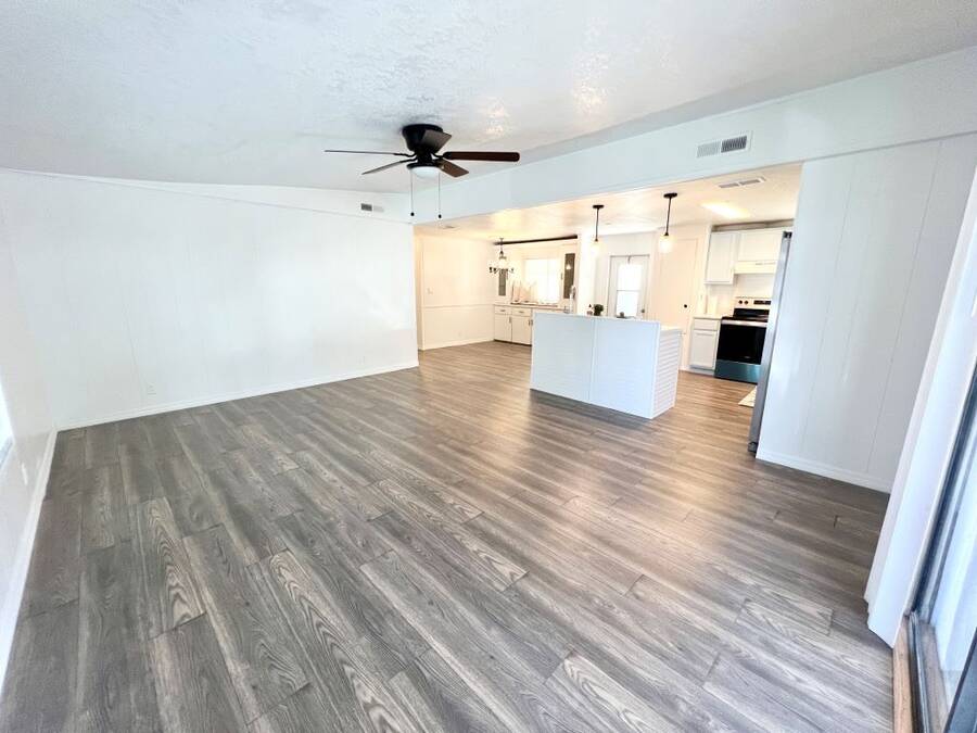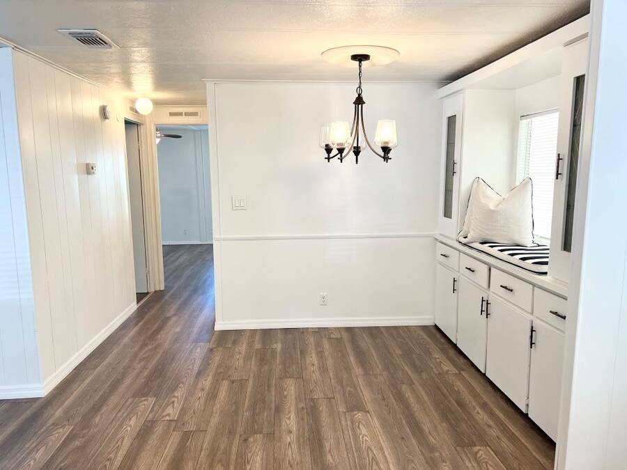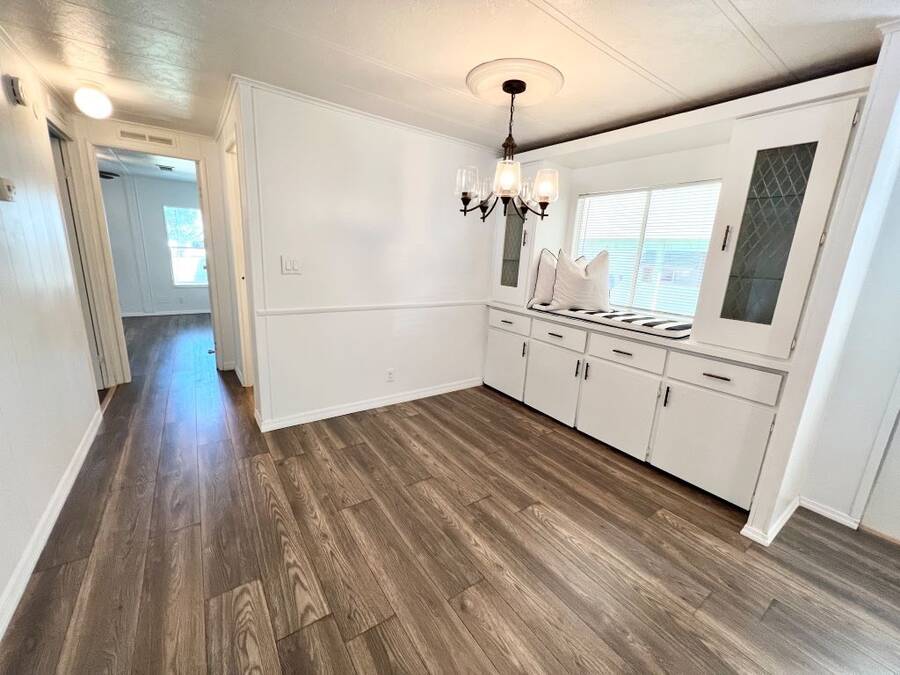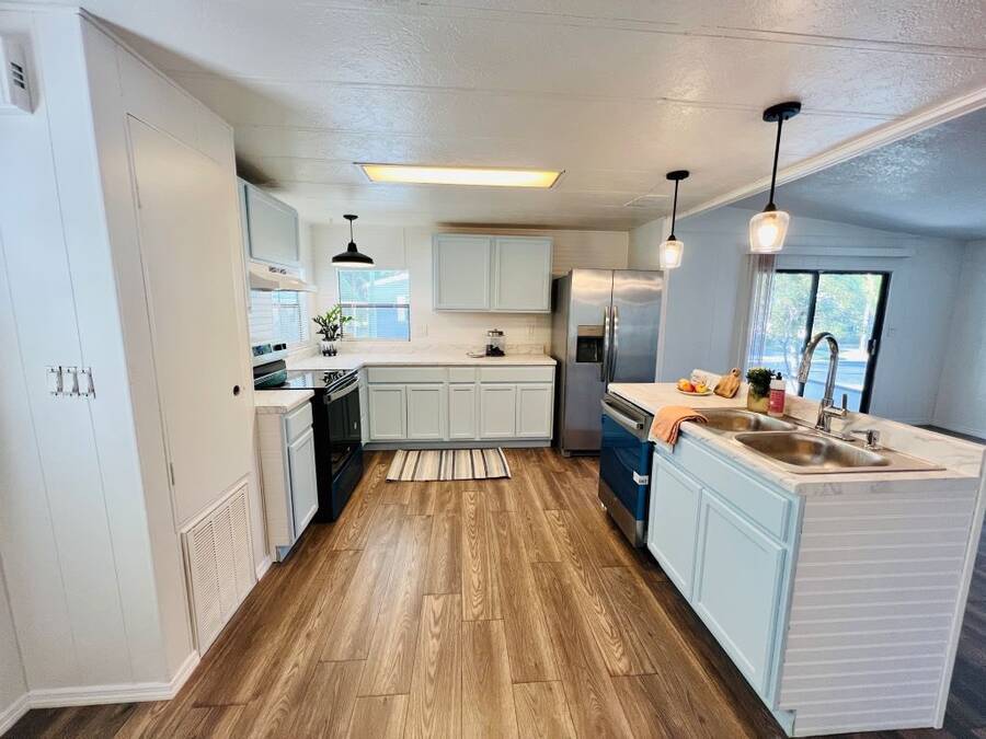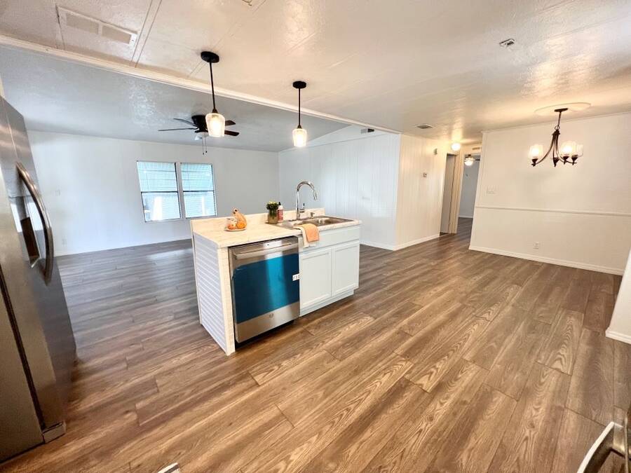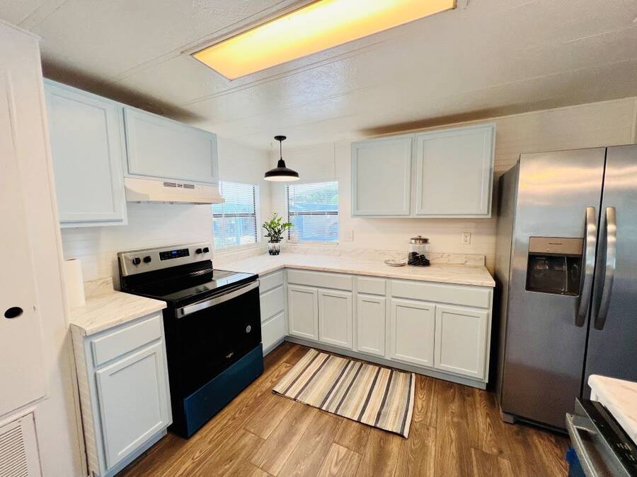 GORGEOUSLY REMODELED 2-BEDROOM, 2-BATHROOM HOME IN SOUTH LAKELAND!! The interior has undergone a complete transformation from top to bottom. Beginning with the stunning open kitchen featuring a center island, you'll find new cabinets, stainless-steel appliances, and a new sink. Throughout the house, new 3/4 inch subflooring has been laid, accompanied by waterproof vinyl plank flooring. Both the main and master bathrooms boast updates that include modern single sink vanities, updated toilets, and stylish bead boarding. Additionally, the interior has been freshly painted to enhance its appeal. On the exterior, improvements include a newer vapor barrier (2023), insulation (2023), tie downs, and a newer hot water heater out in the shed. This beautifully updated home presents countless possibilities and is waiting for you! Schedule your visit to see this gem before it is too late! **Home is sold unfurnished.** Active, 55+ community located in south Lakeland, FL, with numerous waterfront properties. Highland Village has so much to offer! Amenities include pool, fitness center, library, community room, horseshoes, shuffleboard courts, fishing dock and more. Laundry facilities also available. Smaller dogs (under 40lbs) with breed restrictions allowed. Within minutes of shopping, restaurants, and entertainment. 80/20 Rule. Rentals allowed. Motorcycles allowed. Lot Rent $1,045 includes water, sewer, trash, and tree care. KITCHEN: 12 x 12 • Vinyl Plank Flooring • Chandelier • Refrigerator - Frigidaire (with Ice Maker) (2023) • Stove - Whirlpool (with Vent Hood) (2023) • Dishwasher - Unknown (2023) • Center Island • Updated Backsplash • Pantry - 1 DINING ROOM: 12 x 12 • Vinyl Plank Flooring • Chandelier • Built-In Hutch LIVING ROOM: 14 x 19 • Vinyl Plank Flooring • Ceiling Fan with Light MAIN BATHROOM: 6 x 8 • Vinyl Plank Flooring • Single Sink • Tub/Shower Combo • Mirrored Medicine Cabinet • Updated Vanity • Updated Commode MASTER BEDROOM: 13 x 14 • Vinyl Plank Flooring • Ceiling Fan with Light • Walk-In Closet: 5 x 13 (Built-In) MASTER BATHROOM: 8 x 13 • Vinyl Plank Flooring • Single Sink • Walk-In Shower • Updated Vanity • Updated Commode GUEST BEDROOM: 11 x 14 • Vinyl Plank Flooring • Walk-In Closet: 3 x 5 (Built-In) SCREEN ROOM: 10 x 12 • Concrete Flooring • Located Off: Living Room SHED/LAUNDRY ROOM: • Concrete Flooring • Washer Hookup • Dryer Hookup EXTERIOR: • Aluminum • Single Pane Windows • Carport: Single • Roof Type: Shingle • A/C: Goodman • Air Vents Location: Ceiling COMMUNITY: • Gated Community • Clubhouse • Heated Pool • Hot Tub • Fitness Center • Billiards Room • Library • Shuffleboard Courts • Horseshoe Pits • Boat/RV Storage • Dog Park The above information is not guaranteed. It is the buyer's responsibility to confirm all measurements, fees, rules and regulations associated with this particular park. This mobile home is sold "As Is" as described in the description above. There are no warranties or guarantees on this mobile home.