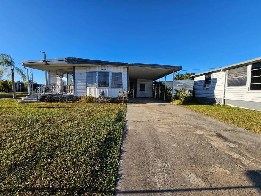 2 Year Transferable Insurance Policy (coverage up to 82,000)! REMODELED HOME WITH WATER ACCESS! Conveniently located on the Caloosahatchee River leading to the Gulf of Mexico. There are boat slips on a first come first serve basis or the option to rent your own slip for a small monthly fee, through the community. This home is a furnished 2 Bedroom 2 Bath which has been completely remodeled! There are many upgrades, such as new lighting package, open kitchen with island, quarts countertops, white cabinets /backsplash, all stainless steel appliances, dishwasher, wine fridge & bar, updated bathrooms/vanity, sink, toilets & showers, 3 newer AC splits, newer hot water heater, newer electric panel, metal roof was recently sealed! Large carport, a shed for additional storage! Large glass enclosed lanai with hurricane impact sliding door! Orange Harbor is an amazing gated community! A Resort Style 55 park including all the amenities you want a park to have! There is a Large Pool, a Clubhouse, Shuffle Board, Bocce ball, a Library, On-site Laundromat, multiple Boat Ramps, and more!! The landlease fee is only $980 per month! This lot rent fee includes your internet, lawn, trash, sewer, water and the amenities! Rentals are allowed! This community is near Shopping Malls, Restaurants, Golf, Hospitals, Bar and Grills, Beaches, and anything else you could ever need! Extremely short drive to US-41and or I-75 There are endless Boating and Fishing opportunities everywhere you turn!! **Call Richard for a Showing**