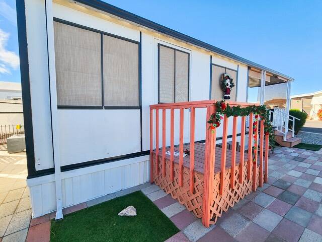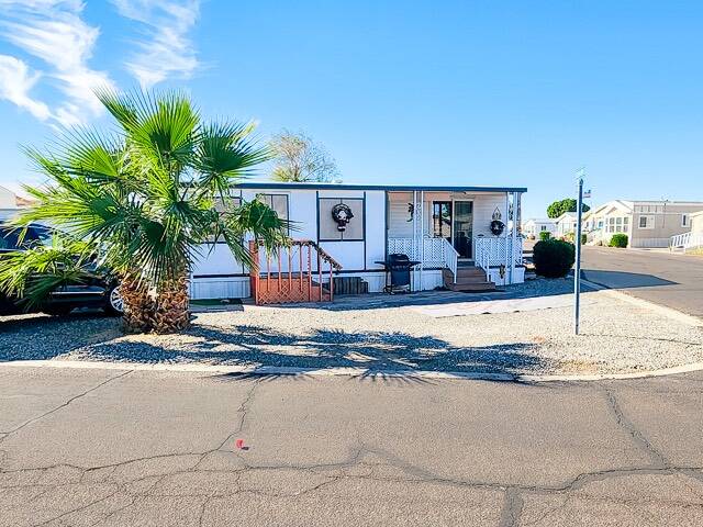 Welcome to your ideal retreat in Yuma, AZ - an updated 2-bedroom home on a spacious corner lot in the 55+ community of Encore Araby Acres. With plenty of parking, a generous outdoor footprint, and a thoughtfully maintained interior, this property is perfect whether you're seeking a winter getaway, a full-time residence, or a low-maintenance lock-and-leave home. Inside, you'll find updated flooring, an upgraded bathroom, and several modern improvements that make this home move-in ready. The layout offers comfortable living spaces, natural light, and room to relax or entertain.Step outside to enjoy Yuma's famous sunshine on the spacious front deck-a perfect spot for morning coffee, evening conversations, or simply soaking in the peaceful surroundings. Sitting on a corner lot means extra elbow room, enhanced privacy, and more space for guests or additional parking needs. Encore Araby Acres is a well-loved 55-plus active adult community, offering resort-style amenities, social activities, and a friendly neighborhood atmosphere just minutes from shopping, dining, golf, and medical services. With its combination of updates, location, and community features, this home offers exceptional value for both seasonal visitors and year-round residents.
