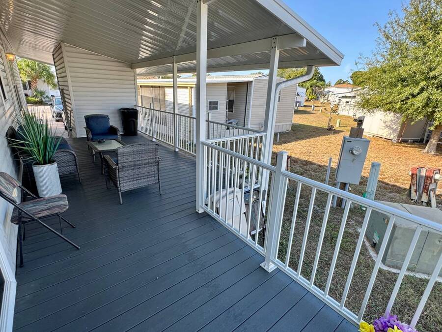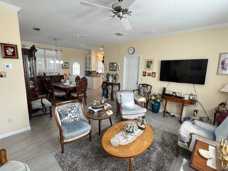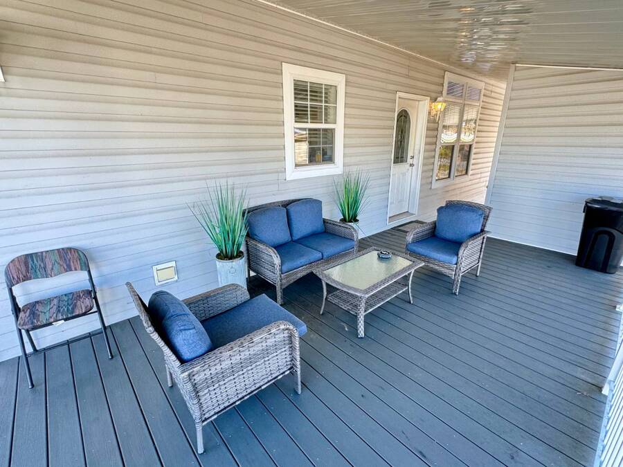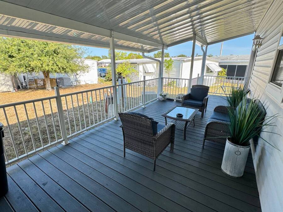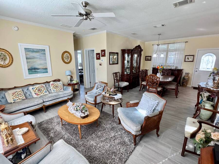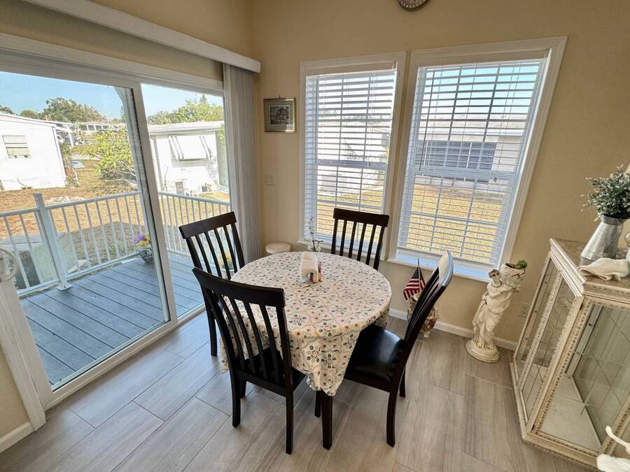 Spacious and beautifully maintained, this 2019 luxury-style Jacobsen home welcomes you with high ceilings and an open, airy feel from the moment you step inside. Gently lived in by a single owner, it offers three generous bedrooms and two bathrooms, all designed with an open-concept layout that fills the home with natural light. A large side deck provides the perfect place to relax and enjoy the Florida weather. The expansive kitchen and dining area are ideal for entertaining, featuring a matching GE appliance package that complements the home's modern aesthetic. Additional upgrades include tile flooring throughout and carpet in the bedrooms, a 2023 HVAC system, and a paver driveway that enhances the home's curb appeal. The main bedroom is spacious enough to comfortably accommodate a king-size set and includes a large closet and private en-suite bathroom for added convenience. This home sits on a premium lot with additional room in the back should you wish to add a patio. Located in Winward Lakes-an exclusive, gated, pet-friendly 55+ community in South Tampa, rated by Forbes as Florida's number one place to live-residents enjoy amenities such as a heated pool and a well-equipped fitness center. The community is close to shops, restaurants, medical services, and the Crosstown Expressway for easy travel. This home is on leased land with a monthly lot rent of $839. Winward Lakes is a beautiful, affordable, and highly desirable South Tampa community-come see for yourself everything it has to offer! While all information is considered reliable, we encourage prospective buyers to conduct their own personal inspections for a comprehensive understanding of the property's condition and measurements. Please note that American Mobile Home Sales of Tampa Bay Inc. cannot guarantee the accuracy of this information. As a buyer, you will be responsible for all closing costs, sales tax, and title transfer fees associated with the purchase. The buyer assumes full responsibility for obtaining all current rates for lot rent, fees, and any pass-on costs, as well as to familiarize yourself with the lease agreement and community regulations. For these details, please reach out to the community or park manager directly. American Mobile Home Sales of Tampa Bay Inc. is not responsible for quoting said fees or policies.