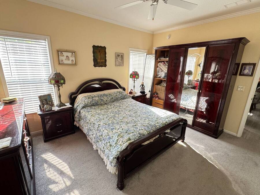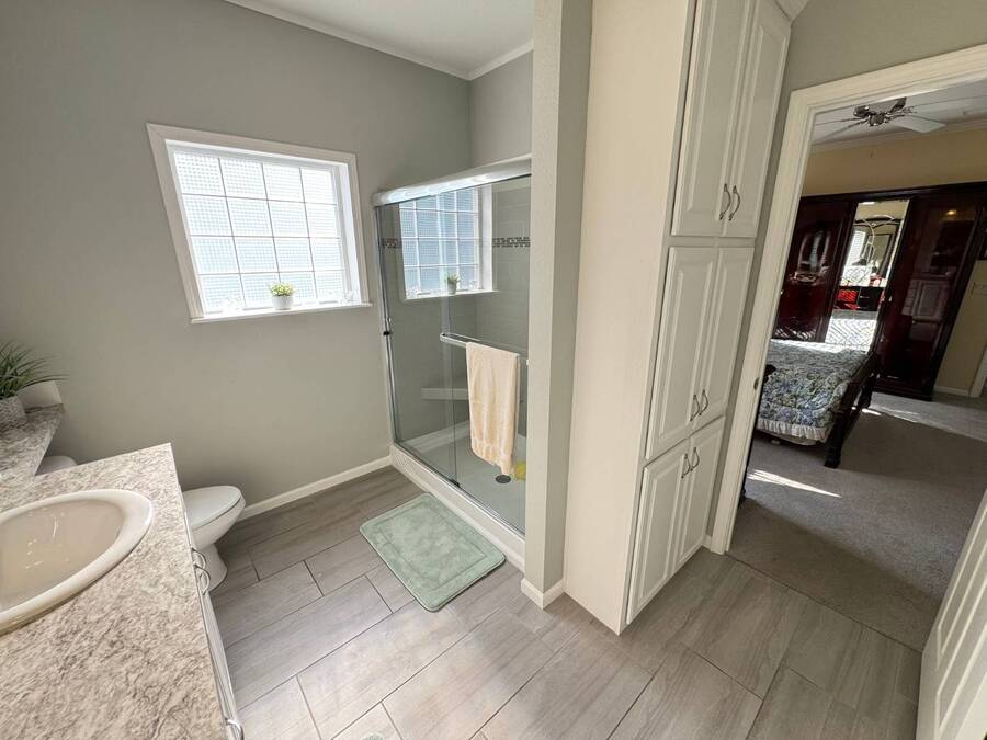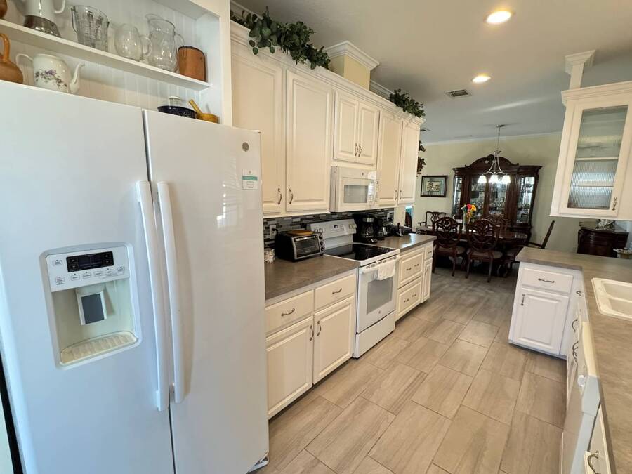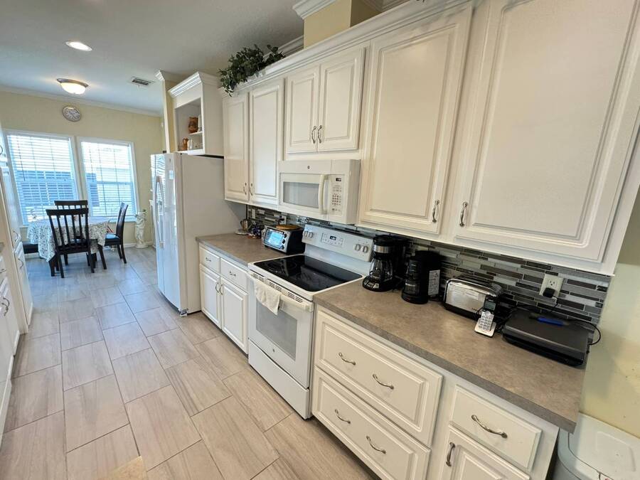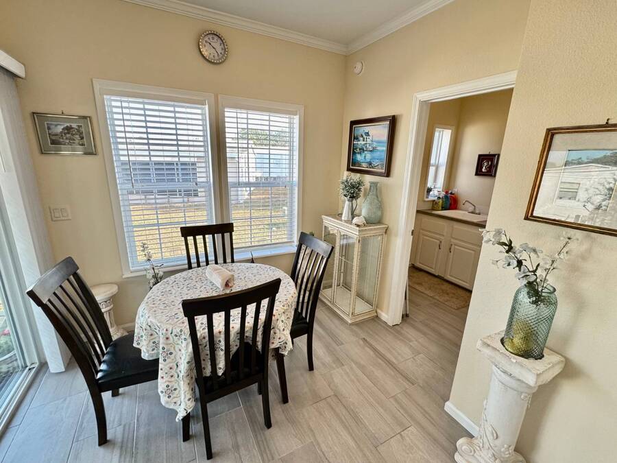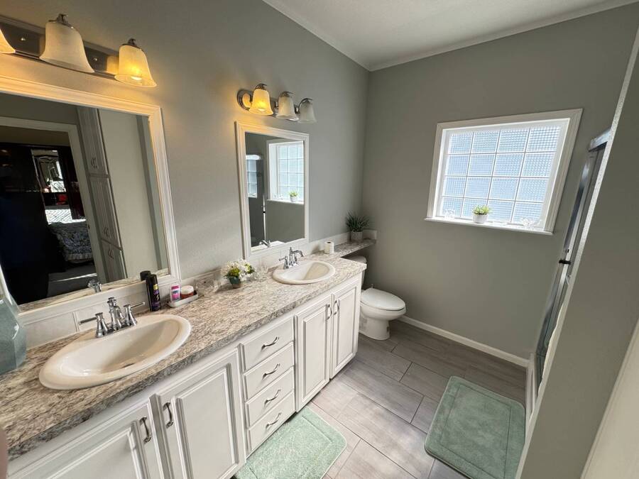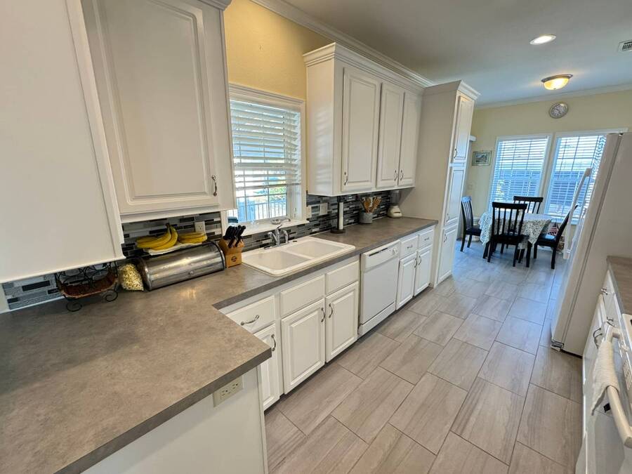 Spacious and beautifully maintained, this 2019 luxury-style Jacobsen home welcomes you with high ceilings and an open, airy feel from the moment you step inside. Gently lived in by a single owner, it offers three generous bedrooms and two bathrooms, all designed with an open-concept layout that fills the home with natural light. A large side deck provides the perfect place to relax and enjoy the Florida weather. The expansive kitchen and dining area are ideal for entertaining, featuring a matching GE appliance package that complements the home's modern aesthetic. Additional upgrades include tile flooring throughout and carpet in the bedrooms, a 2023 HVAC system, and a paver driveway that enhances the home's curb appeal. The main bedroom is spacious enough to comfortably accommodate a king-size set and includes a large closet and private en-suite bathroom for added convenience. This home sits on a premium lot with additional room in the back should you wish to add a patio. Located in Winward Lakes-an exclusive, gated, pet-friendly 55+ community in South Tampa, rated by Forbes as Florida's number one place to live-residents enjoy amenities such as a heated pool and a well-equipped fitness center. The community is close to shops, restaurants, medical services, and the Crosstown Expressway for easy travel. This home is on leased land with a monthly lot rent of $839. Winward Lakes is a beautiful, affordable, and highly desirable South Tampa community-come see for yourself everything it has to offer! While all information is considered reliable, we encourage prospective buyers to conduct their own personal inspections for a comprehensive understanding of the property's condition and measurements. Please note that American Mobile Home Sales of Tampa Bay Inc. cannot guarantee the accuracy of this information. As a buyer, you will be responsible for all closing costs, sales tax, and title transfer fees associated with the purchase. The buyer assumes full responsibility for obtaining all current rates for lot rent, fees, and any pass-on costs, as well as to familiarize yourself with the lease agreement and community regulations. For these details, please reach out to the community or park manager directly. American Mobile Home Sales of Tampa Bay Inc. is not responsible for quoting said fees or policies.