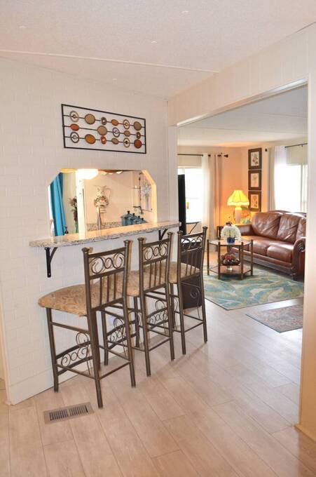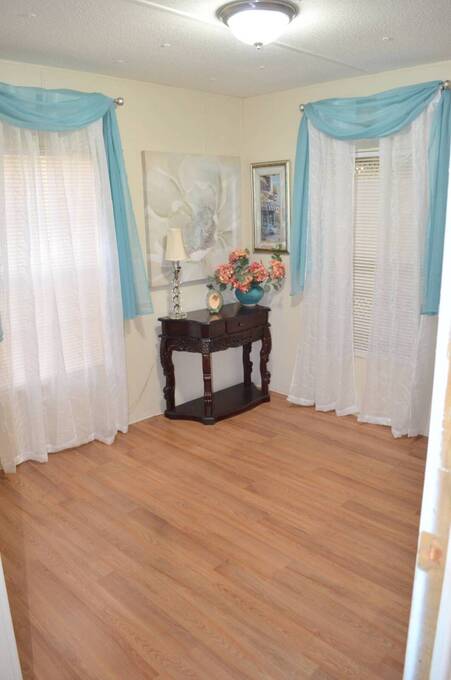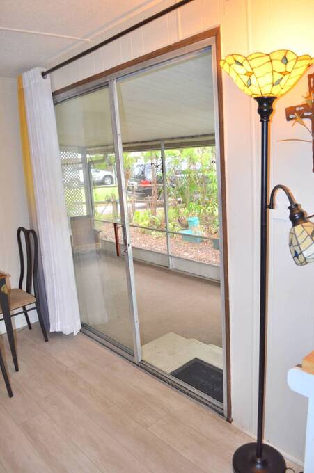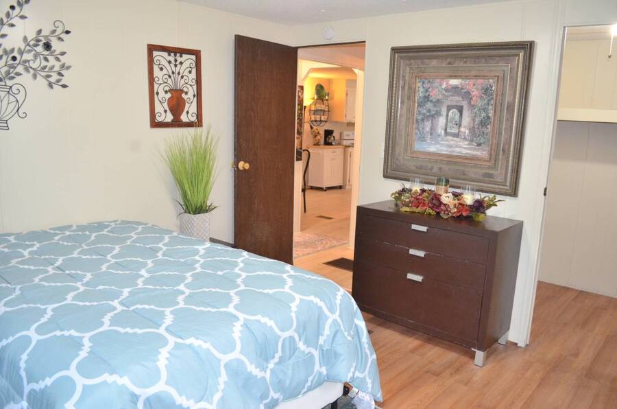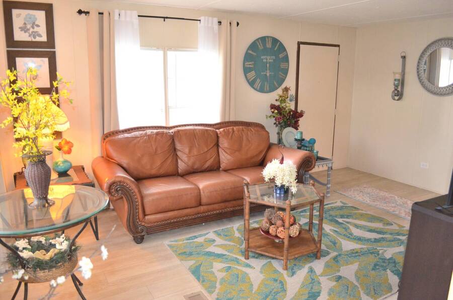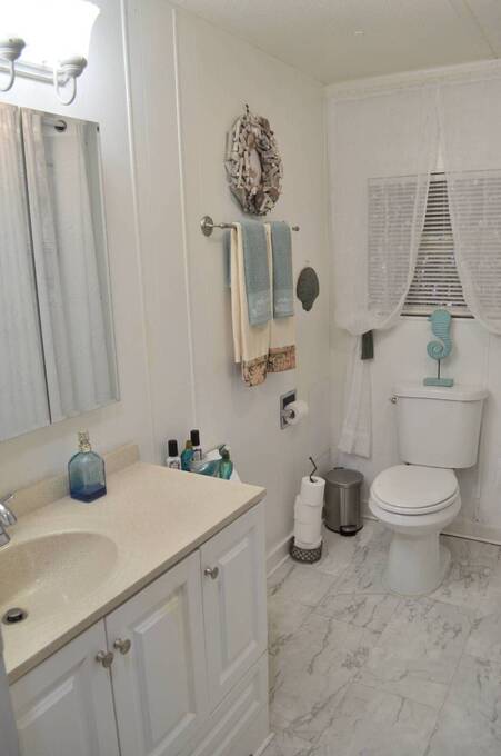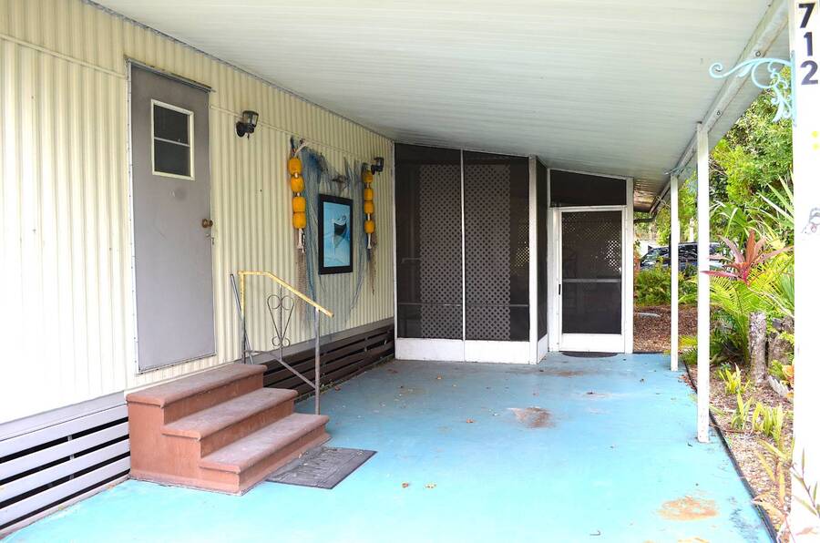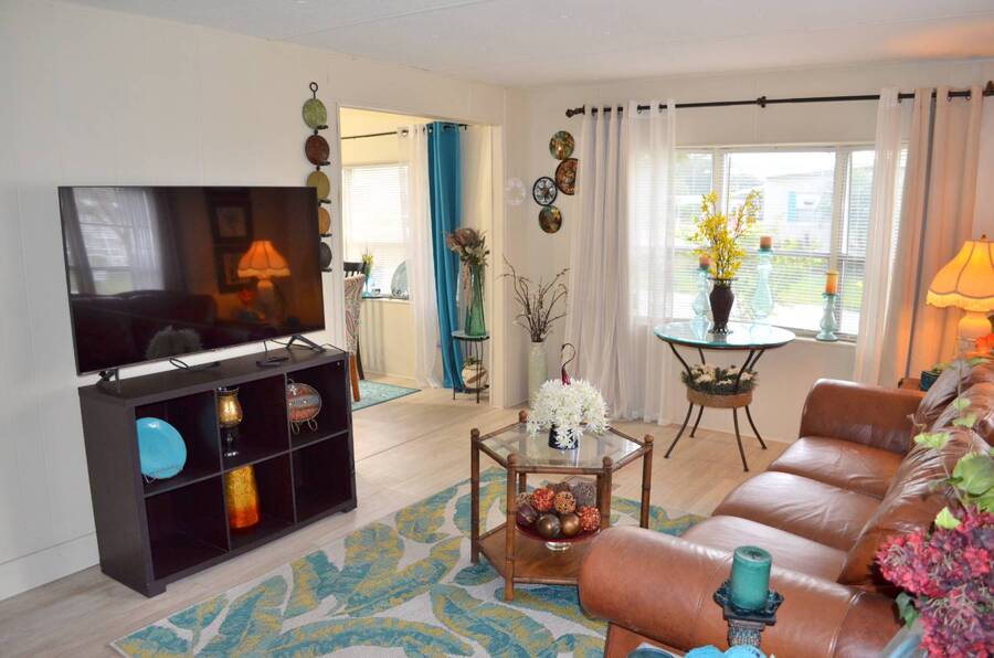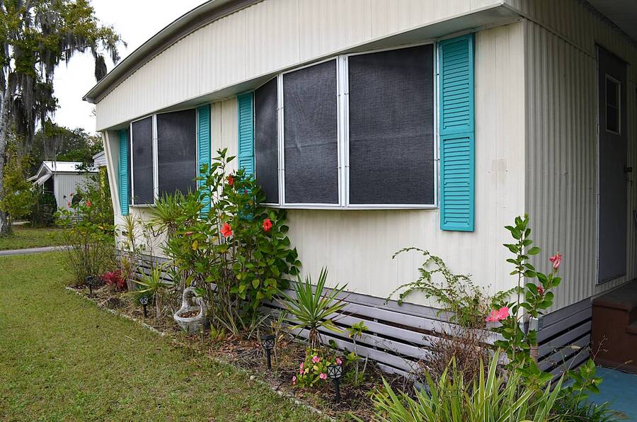 Light, bright, and full of coastal charm! This 3-bedroom, 1-bath double-wide offers an open living area, breakfast bar, updated flooring, and a cozy kitchen with a stainless-steel fridge. Enjoy a spacious screened patio, covered carport, storage shed, and a peaceful yard with mature trees. Located in Juniper Sands, a quiet 55+ land-lease community where the lot rent includes water, sewer, and trash collection. Minutes to shopping and historic St. Augustine.