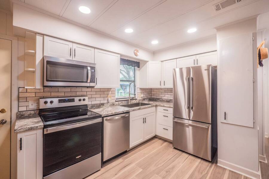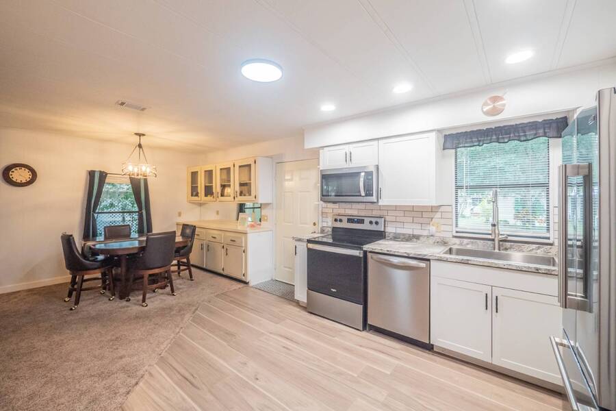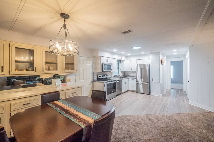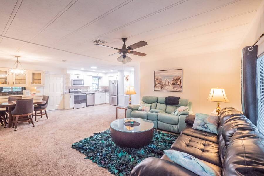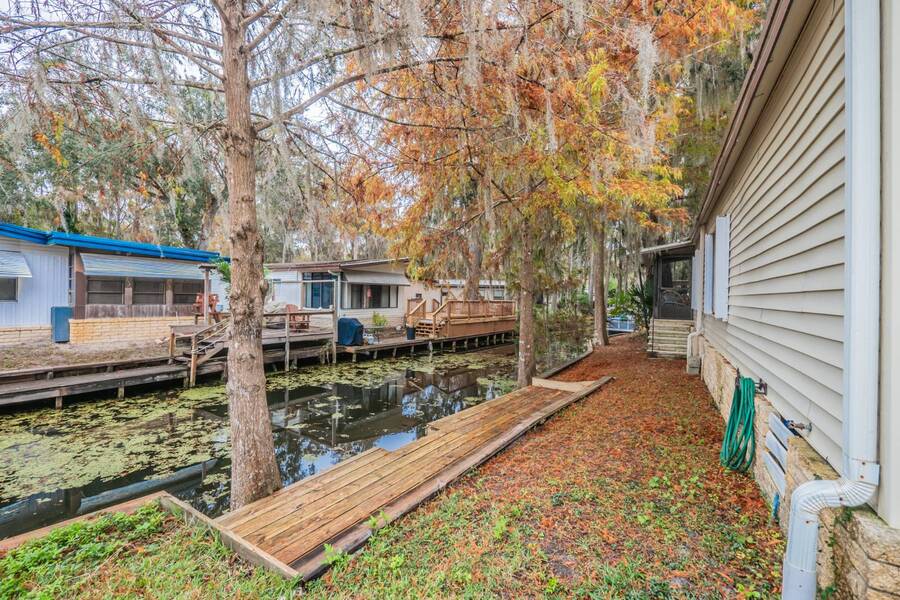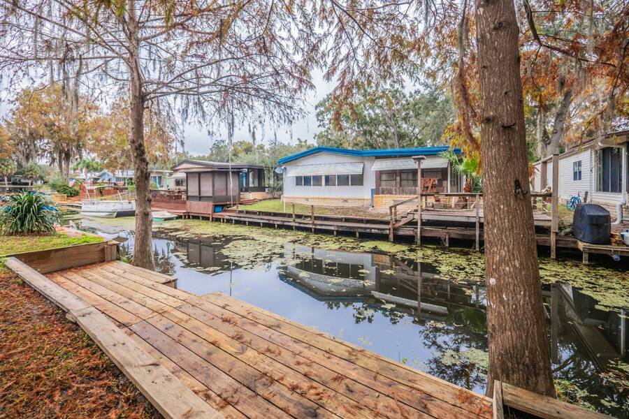 Welcome to this completely renovated 2 bedroom, 2 bathroom canal-front home located in the peaceful 55+ community of Cypress Creek, perfectly situated between Lake Denham and Lake Harris on the Harris Chain of Lakes. This beautifully updated home offers modern finishes throughout and comes partially furnished, making it ideal for both seasonal escapes and comfortable year-round living. Step inside to find a bright, open layout with tasteful upgrades, including a sleek renovated kitchen, updated bathrooms, new flooring, and fresh neutral décor. The spacious bedrooms and well-designed floor plan provide convenience and comfort, while the large windows bring in natural light and tranquil views of the surrounding nature. Enjoy direct canal frontage just steps from your door-perfect for kayaking, fishing, or simply enjoying the peaceful water setting. This small, well-kept park is known for its quiet, friendly atmosphere and is surrounded by beautiful cypress trees and Florida wildlife, offering a truly serene environment. If you're looking for a turnkey waterfront home with modern style in a charming, nature-filled 55+ community, this property is a must-see. Experience the Florida lifestyle on the Harris Chain of Lakes-schedule your private showing today!