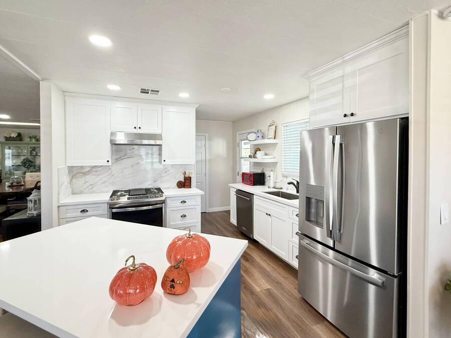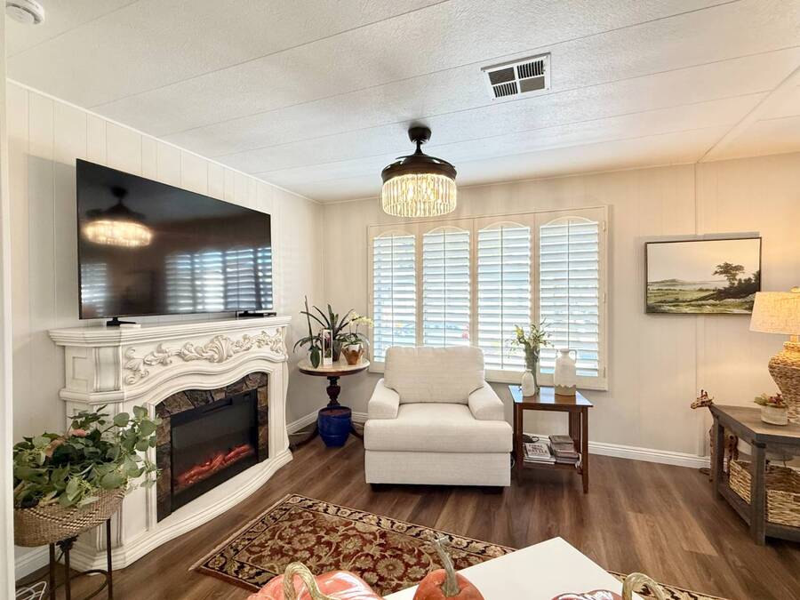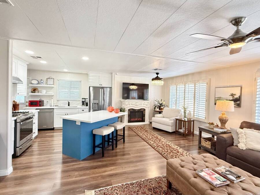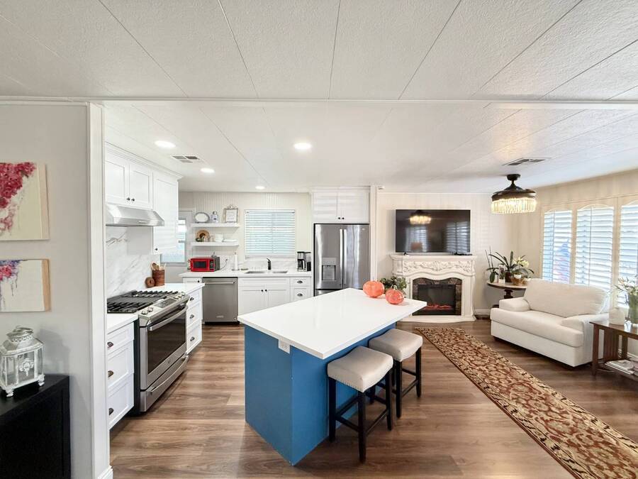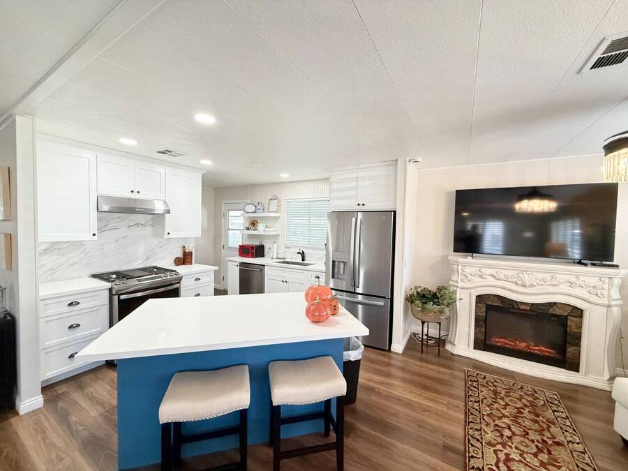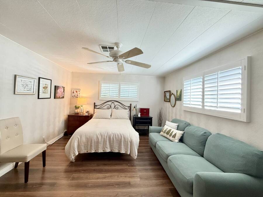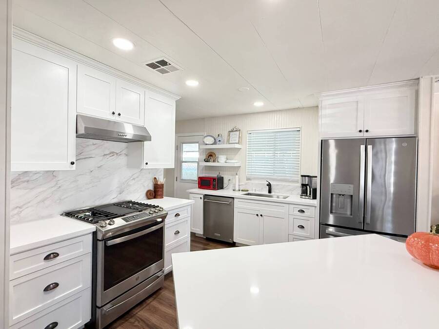 Discover your ideal retirement haven in this beautifully remodeled 1972 manufactured home offering over 1,500 square feet of bright, modern living space, including a finished California room that adds more than 100 square feet of flexible space-perfect for a den, hobby room, or guest area. This spacious 2-bedroom, 2-bathroom home features a stunning remodeled kitchen with white shaker cabinets, quartz countertops and backsplash, a large center island with bar seating, and state-of-the-art stainless steel appliances, including a 5-burner stove and counter-depth French door refrigerator. Luxury vinyl plank flooring flows throughout, and both bathrooms have been tastefully updated with custom cabinets, raised sinks, and elegant fixtures. The primary suite is a true retreat, with a large bedroom, double-sink vanity, step-in shower, and a walk-in closet, while the second bedroom also includes a walk-in closet and easy access to the second full bath. Outside, enjoy low-maintenance living with a private carport, large shed, and covered front and back porches-ideal for morning coffee or evening relaxation. Plantation shutters, central heat and air, and abundant storage add comfort and convenience. Located in a desirable park setting, this home offers a peaceful, resort-style lifestyle perfect for retirees who value community, affordability, and ease. With its elegant curb appeal, functional layout, and thoughtful upgrades, this move-in-ready manufactured home is more than a house-it's the perfect foundation for your next chapter of relaxed, carefree living. Forest Gardens is a highly sought-after Premium Mobile Home Community with all the Amenities you could hope for. Residents here are close to various shopping, restaurants, and activities. You'll also want to take advantage of the Sparkling Community Pool, Remodeled Community Center, well-equipped Fitness Center, and many Planned Activities and Functions. Call Today to see this wonderful home.