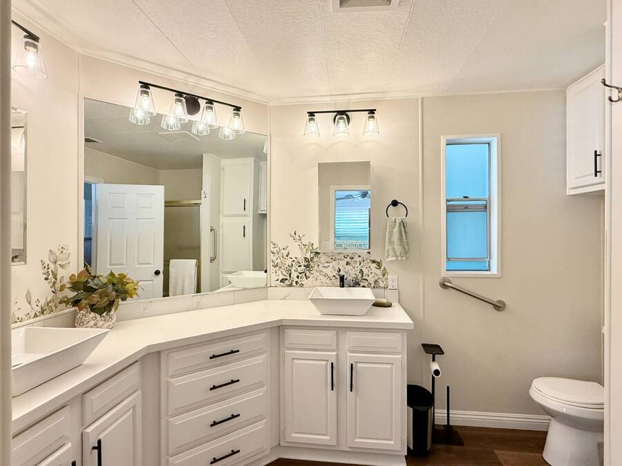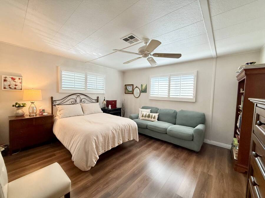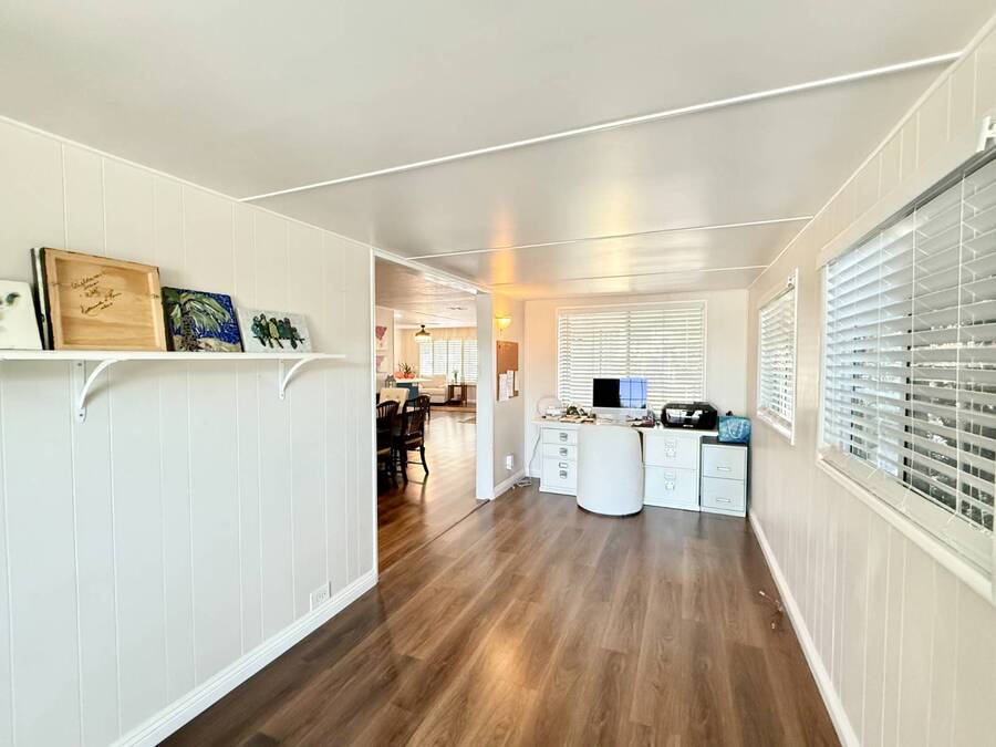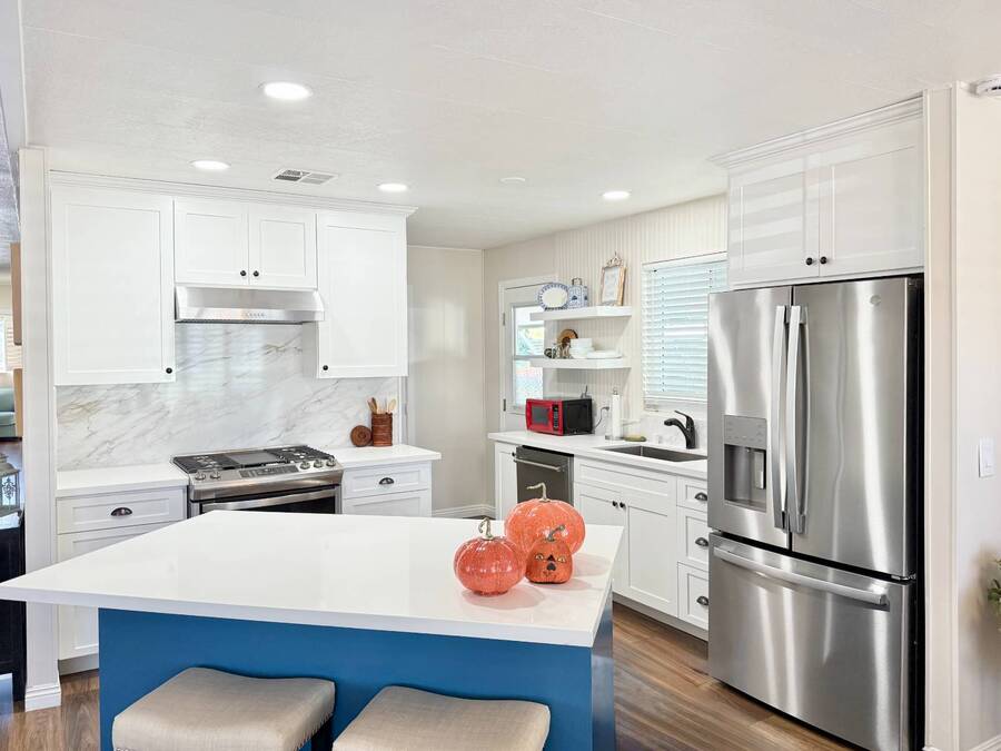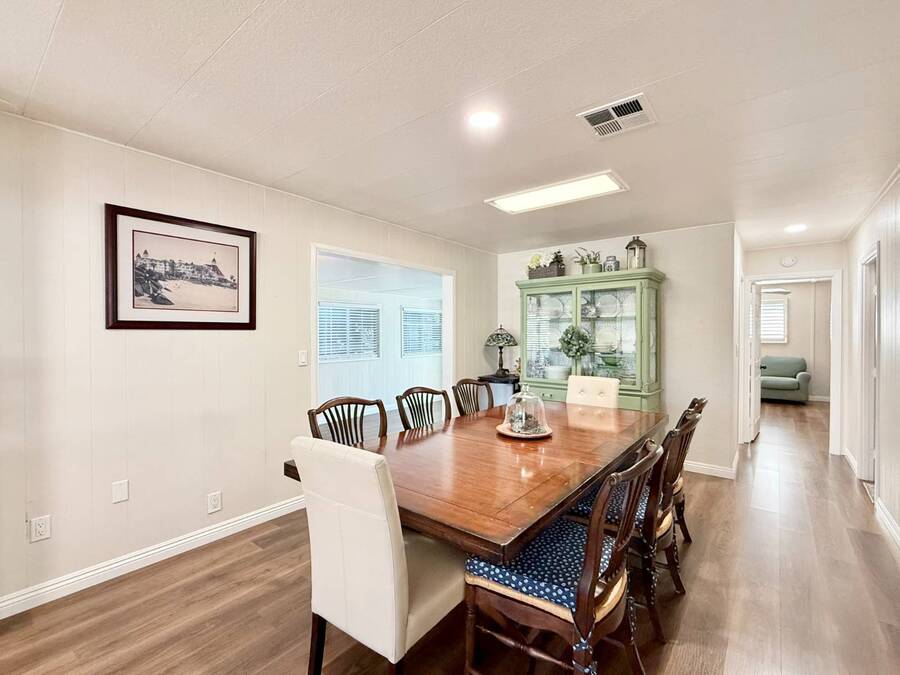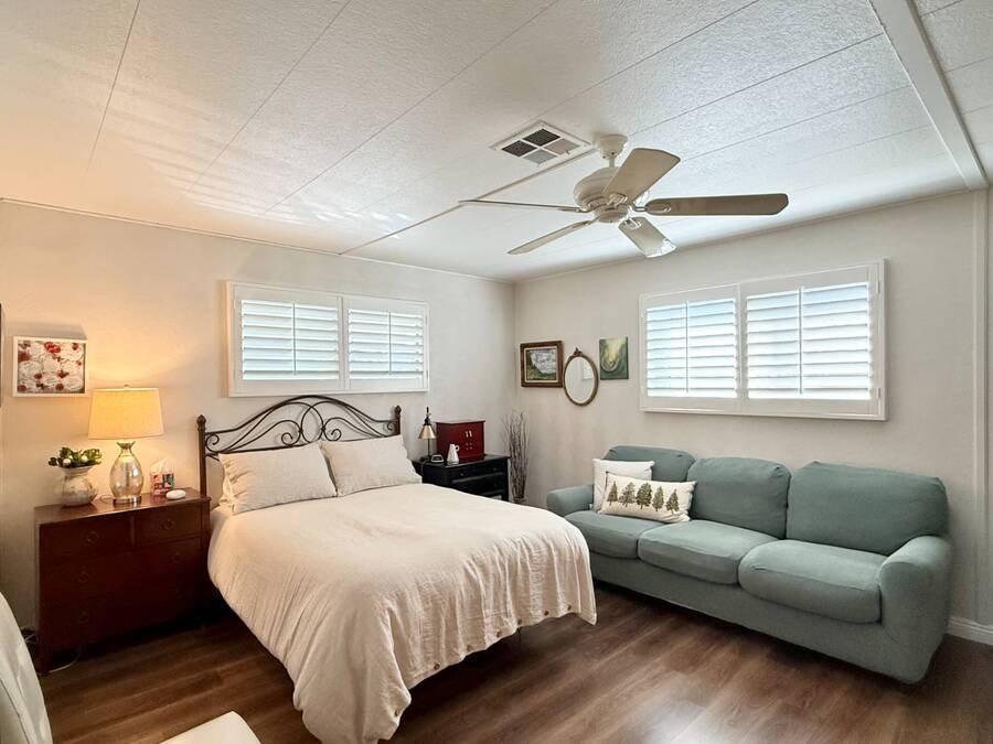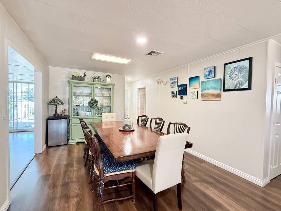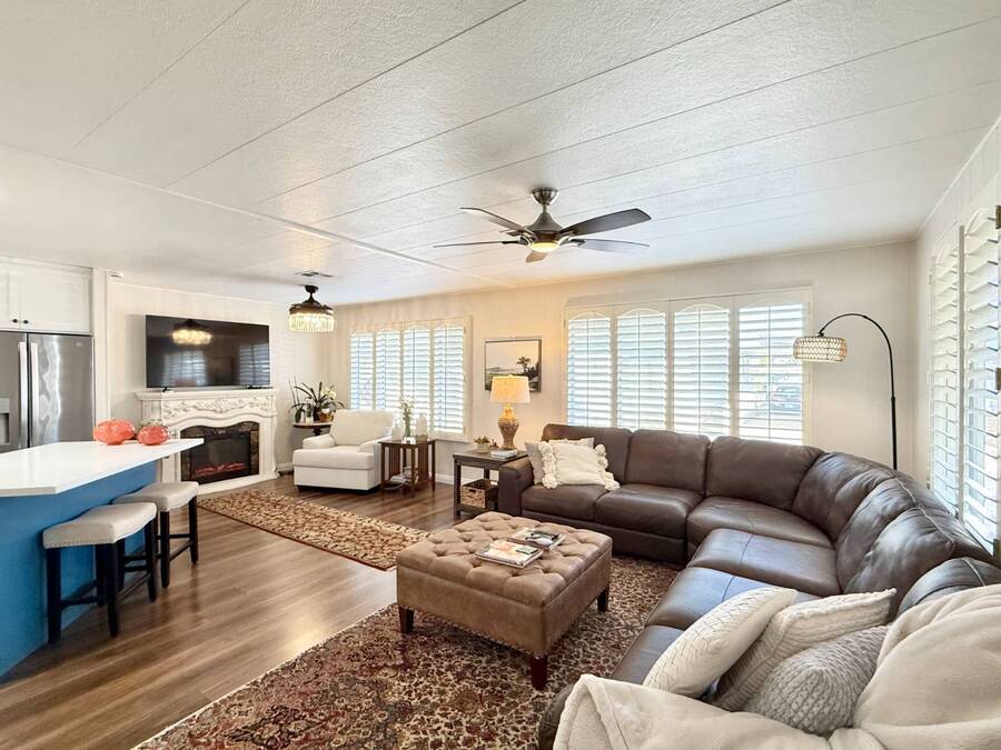 Discover your ideal retirement haven in this beautifully remodeled 1972 manufactured home offering over 1,500 square feet of bright, modern living space, including a finished California room that adds more than 100 square feet of flexible space-perfect for a den, hobby room, or guest area. This spacious 2-bedroom, 2-bathroom home features a stunning remodeled kitchen with white shaker cabinets, quartz countertops and backsplash, a large center island with bar seating, and state-of-the-art stainless steel appliances, including a 5-burner stove and counter-depth French door refrigerator. Luxury vinyl plank flooring flows throughout, and both bathrooms have been tastefully updated with custom cabinets, raised sinks, and elegant fixtures. The primary suite is a true retreat, with a large bedroom, double-sink vanity, step-in shower, and a walk-in closet, while the second bedroom also includes a walk-in closet and easy access to the second full bath. Outside, enjoy low-maintenance living with a private carport, large shed, and covered front and back porches-ideal for morning coffee or evening relaxation. Plantation shutters, central heat and air, and abundant storage add comfort and convenience. Located in a desirable park setting, this home offers a peaceful, resort-style lifestyle perfect for retirees who value community, affordability, and ease. With its elegant curb appeal, functional layout, and thoughtful upgrades, this move-in-ready manufactured home is more than a house-it's the perfect foundation for your next chapter of relaxed, carefree living. Forest Gardens is a highly sought-after Premium Mobile Home Community with all the Amenities you could hope for. Residents here are close to various shopping, restaurants, and activities. You'll also want to take advantage of the Sparkling Community Pool, Remodeled Community Center, well-equipped Fitness Center, and many Planned Activities and Functions. Call Today to see this wonderful home.