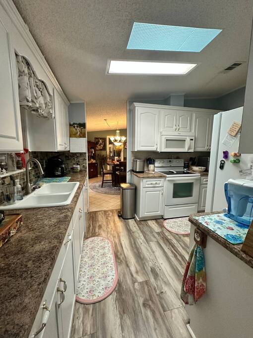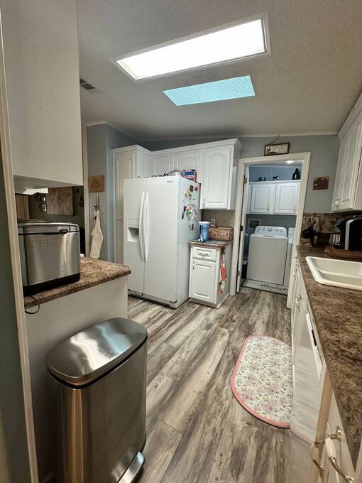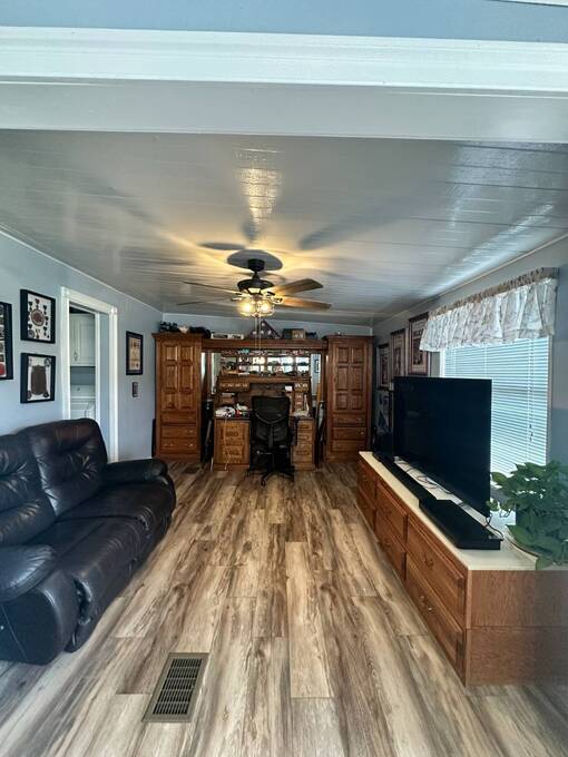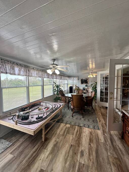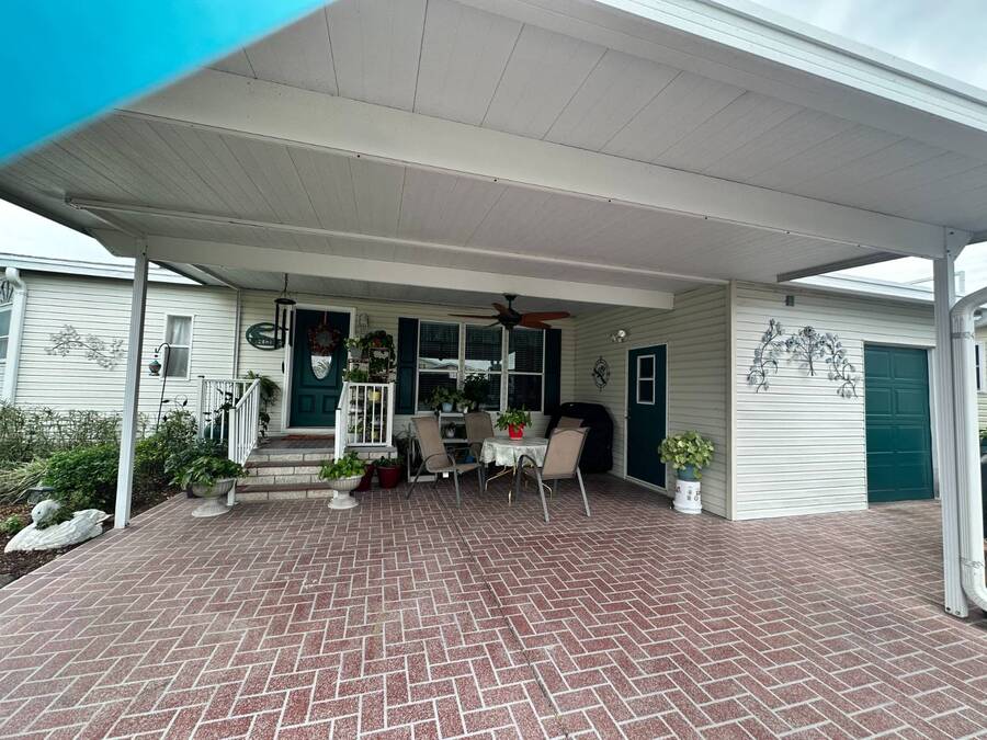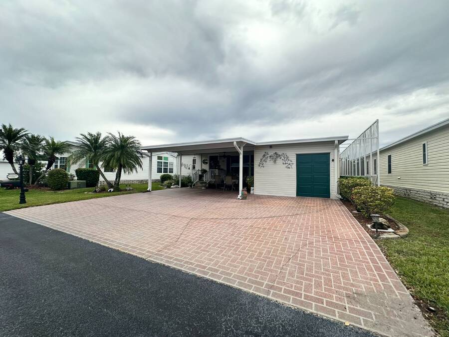 2 Beds + Den | 2 Baths | 1,232 Sq. Ft. | $139,900 Four Lakes Golf Club Lot #349 Beautifully Updated Home on Golf Course with Water & Fountain Views! Welcome to this beautifully updated double-wide home, perfectly positioned on the golf course with serene views of the water and fountain. Thoughtfully renovated and maintained, this move-in-ready home offers modern style, effortless comfort and inviting spaces both inside and out. From the moment you arrive, you'll love the charming front patio area, ideal for greeting neighbors or enjoying the Florida breeze. Step inside to an open, sun-filled layout featuring laminate and ceramic tile flooring throughout, blending easy maintenance and stylish design. The recently renovated kitchen showcases beautiful countertops and a tile backsplash, creating a bright and functional space that's perfect for everyday living. A highlight of the home is the large, window-lined lanai overlooking the golf course and fountain-a peaceful spot to enjoy your morning coffee or unwind at sunset while soaking in the view. The lanai continues into the den which adds versatility-use it as a guest room, office or creative retreat. The spacious primary suite with private ensuite bathroom includes a large walk-in closet with an additional storage space offering both comfort and convenience. Additional upgrades include a new roof (2024), new plumbing (2022) and a new air conditioner (2022), providing confidence and peace of mind for years to come. This home also features a golf cart garage and golf cart, perfect for zipping around your new community. Speaking of golf, you'll enjoy one year of free golf when you make this your new home! Offered at $139,900, this beautifully updated home is ready for you to move in and start living your Florida dream.