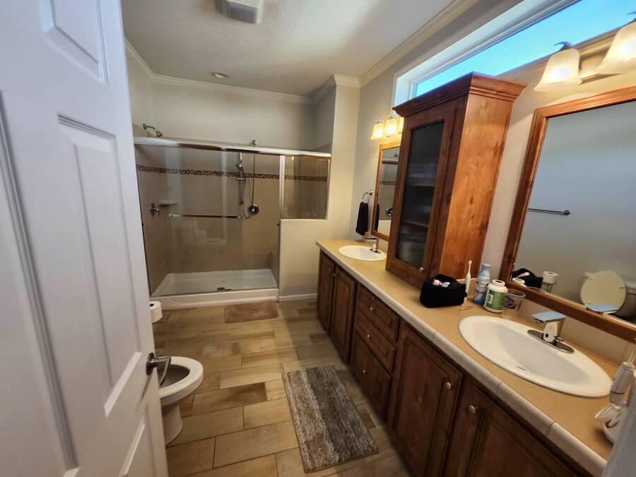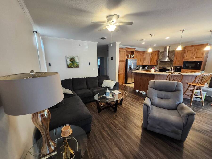 PRICE REDUCED! LIKE NEW/55+/2020/3BD2BA/1624SQ/SNOBIRD USED/FURNISHED/TURN KEY! Located in this 55+ resort style community offering tons of senior activities, with a full clubhouse, large year round heated lap swimming pool, Hot Tub, Shuffleboard, Horseshoes all for the extremely reasonable monthly park fee of $655.00 beginning January 1, 2026. You just have to look at this one it truly is like buying new except your paying $30,000.00 to $40,000.00 less with the same qualities. You will want to hurry on this one it wont last long with its stainless steel kitchen, and a large center island separating from the living room and dining area. The kitchen complete with luxury dark wood cabinets and drawers, and a stainless steel farm style sink. The living room very large open to the dining, has a front door entrance to the all screened front lanai complete with ceiling fan. Off the living room to the front is one of the three oversized bedrooms offering a standard wall closet this room would be perfect for an office utilizing the closet for storage. Directly off the living room to the rear is a second bedroom with a standard closet The master is across the back and offers a walk-in closet and a full en-suite with double sink vanity all with matching luxury dark wood cabinets, and a full size walk-in custom ceramic tiled shower complete with a large seating area and an all glass front with top rail riding doors. This one is a top of the line model direct from the factory floor, enjoy the high quality a premium Jacobsen home offers, practically new at less cost! This home is handicap accessible as all the doors are a wide 36". The drive is extra long and offers a large storage shed complete with the electric installed. You simply can't go wrong with the value this one offers and completely furnished! Make your appointment to view today! Don't buy new before seeing this one!