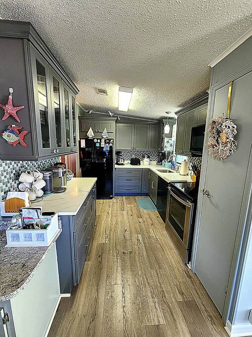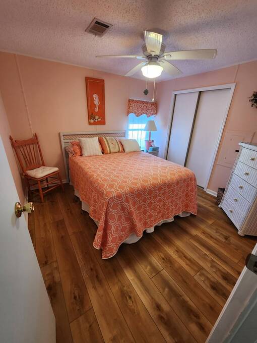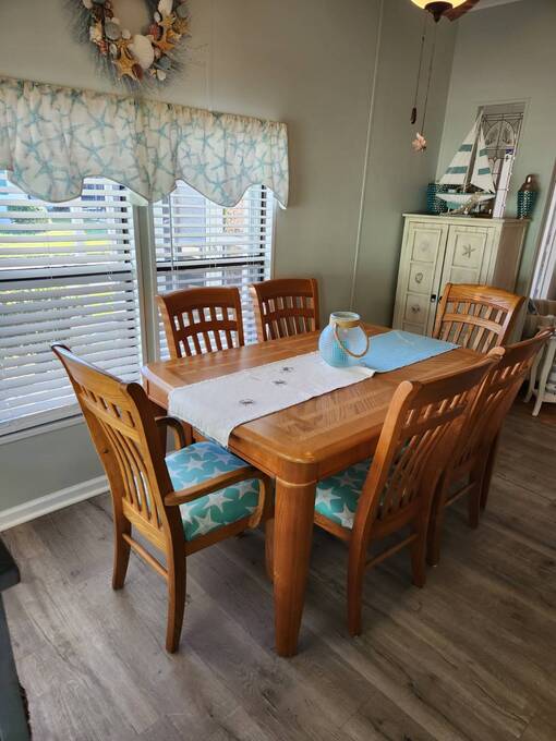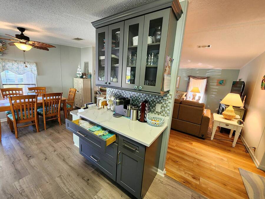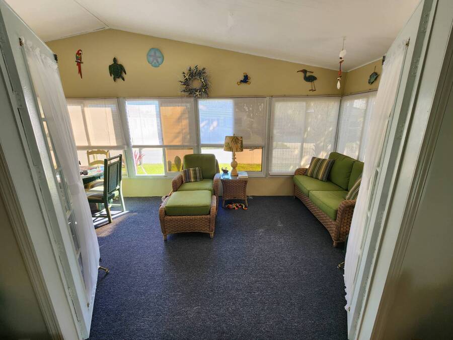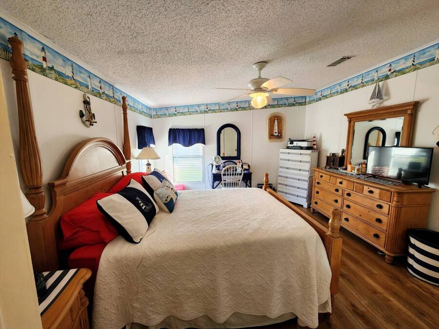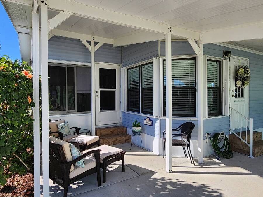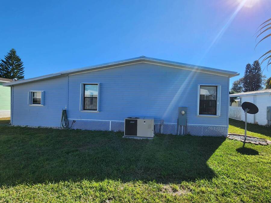 55+ Plus Community in sought-after Spanish Lakes Fairways has this absolutely gorgeous 2-bedroom/2-bathroom home waiting for a new owner. Tastefully decorated with a beach theme, this one comes fully furnished and is ready for you to step in and start living a Coastal lifestyle. The kitchen was remodeled in 2022, offering ample counter space, new cabinets, quartz countertops, a deep under-mount sink, and a beautiful backsplash, along with newer vinyl plank flooring. The kitchen also has a separate pantry for even more storage. All kitchen appliances stay. The dining area is adjacent to the kitchen and has more cabinetry for storage. All the floors have been replaced with Vinyl Plank flooring. The living space is large and features French Doors that lead out to the Florida Room, where you can sit, relax, and enjoy the breeze on cooler days. The Florida room sliding windows were replaced in 2017. Both Bathrooms have updated toilets and newer vanities. The Primary Bedroom is spacious in size with a large walk-in closet. The Guest Bedroom is also a good size, adjacent to the Guest Bathroom. A Large Storage Shed can fit your golf cart and still have plenty of space to keep your tools and those miscellaneous items. The Metal Roof was done in 2022, the Hot water Heater was done in 2019, The Air Conditioner was replaced in 2020. This house has accordion storm shutters, a huge plus, and easy access to close. The interior lot rent for the new owner will be $865 per month, which is actually one of the lower rents the new owner will pay. With that, you get full use of all the park amenities, which include FREE GOLF on the 18-hole golf course, use of the 2 Pools, the Billiard Room, Gym, Tennis, Bocce, Shuffle Board, Wood Shop, and so many Fun Clubs to join. You can try your luck on Thursdays playing Bingo. Rent also includes Trash and Lawn Care. It's time to come meet new people and engage in a fun and active lifestyle with your new friends. The Park also offers a van service to take you shopping and so many more amenities. Travel 20-25 minutes to Downtown Fort Pierce, where you can enjoy the beaches, shops, and restaurants. The Saturday Farmers Market is one of the best on the Treasure Coast. Travel 15 minutes North to Vero Beach, where you have many more restaurants, more shopping, and more Beaches. There's just too much to list. If you're looking for nothing to do but bring your clothes and toothbrush, this is the one for you. Call today for your showing. This one won't last long! Start living the relaxed lifestyle that you deserve. Located just off of I-95 exit 138, Indrio Road. All residents must go through the Spanish Lakes approval process. Contact me today for more information. All listing information is deemed reliable but not guaranteed and should be independently verified through personal inspection by appropriate professionals. Our company does not and cannot guarantee or warrant the accuracy of this information or the condition of this property. Measurements are approximate. The buyer assumes full responsibility for obtaining all current rates of lot rent, fees, and pass-on costs. Additionally, the buyer is responsible for obtaining all rules, regulations, pet policies, etc., associated with the community, park, or home from the community/park manager. Our company is not responsible for quoting said fees or policies. Financing is available through 3rd party lenders. The sales price does not include tax, dealer fees, or administrative fees. Please contact the sales agent for additional information.