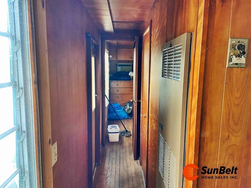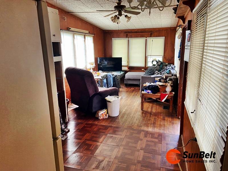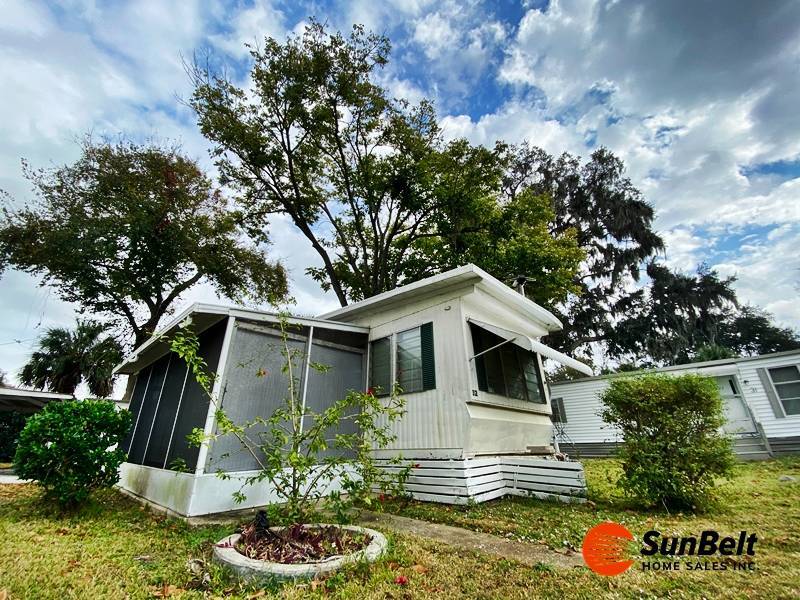 Affordable coastal living starts here! This 2-bed, 1-bath home sits in the 55+ Shady Village community, just minutes from the beach and with an unbeatable $565/mo lot rent. The home offers a simple, efficient layout with wood flooring, two window A/C units, a walkthrough bathroom, and a compact second bedroom ideal for light use or extra storage. Outside, you'll find a screened-in porch, an 8x8 shed, and a carport that's perfect for motorcycle owners. The location and low lot rent make this a standout value in Port Orange.