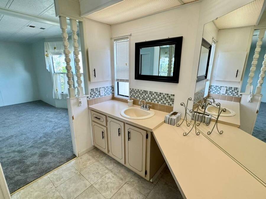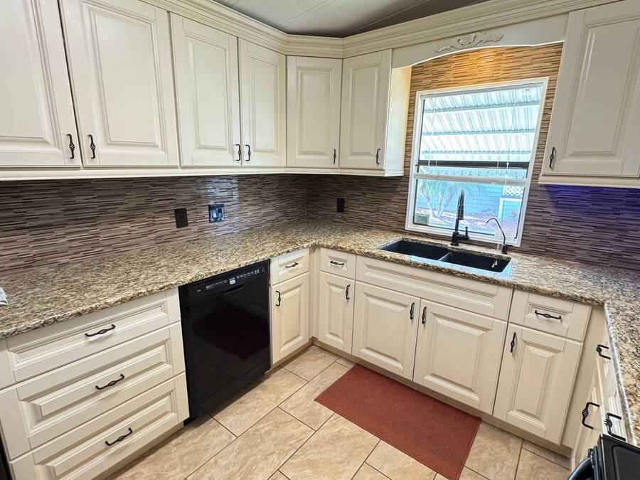 This home is located on leased land with a monthly lot rent of $1,201 in a pet-friendly, 55+ community in Clearwater. Offering 2 bedrooms, 2 bathrooms, and a sunny Florida room, this property delivers both comfort and versatility. The cathedral ceilings create a bright, uplifting atmosphere, while the spacious open floor plan is ideal for entertaining. The kitchen has been tastefully updated with granite countertops, newer cabinets, a tiled backsplash, and a water softener with an under-sink water filter. Island in the Sun is a premier, resort-style 55-plus community featuring a heated saltwater pool, spa, shuffleboard, horseshoes, bocce ball, pickleball, billiards, a clubhouse, fitness center, and a nature area. The monthly lot rent includes full access to all amenities plus lawn maintenance. Located in a highly desirable area surrounded by tropical nature, this community is close to beautiful beaches, parks, trails, and golf courses. Popular destinations such as Clearwater Beach and Honeymoon Island State Park are just minutes away. You'll also enjoy easy access to shopping centers, restaurants, healthcare facilities, and public transportation, with a bus stop conveniently located right in front of the park. While all information is considered reliable, we encourage prospective buyers to conduct their own personal inspections for a comprehensive understanding of the property's condition and measurements. Please note that American Mobile Home Sales of Tampa Bay Inc. cannot guarantee the accuracy of this information. As a buyer, you will be responsible for all closing costs, sales tax, and title transfer fees associated with the purchase. The buyer assumes full responsibility for obtaining all current rates for lot rent, fees, and any pass-on costs, as well as to familiarize yourself with the lease agreement and community regulations. For these details, please reach out to the community or park manager directly. American Mobile Home Sales of Tampa Bay Inc. is not responsible for quoting said fees or policies.