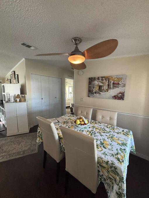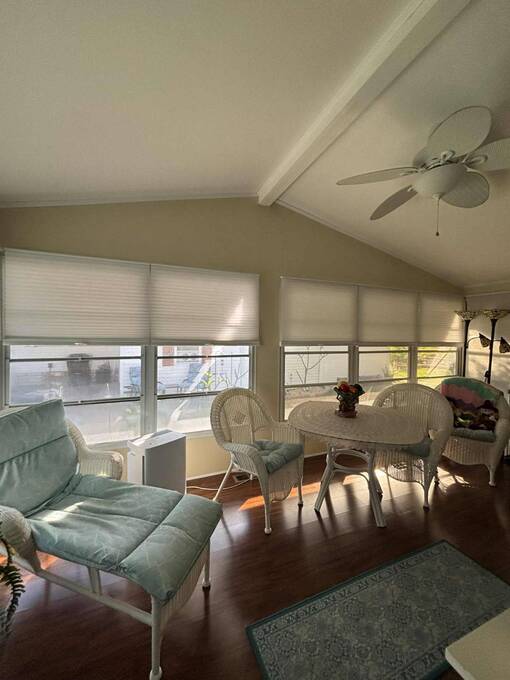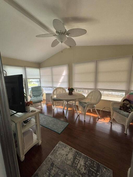 2 Bedroom | 2 Bath | 864 Sq Ft | $68,500 1400 Four Lakes Golf Club Lot 48 Price reduced $11K! Now $68,500 (was $79,900)! Discover lots of home in a compact, efficient floor plan with this beautifully maintained 2-bedroom, 2-bath retreat on a desirable corner lot in the Four Lakes Golf Club community. Thoughtfully designed and furnished, this home offers comfort, convenience and undeniable charm. The corner lot setting offers multiple inviting seating areas-enjoy the bright, charming windowed lanai, relax on the side patio perfect for grilling & entertaining or unwind in the quaint front seating area where you can watch neighbors pass by and soak in the friendly, welcoming atmosphere of this delightful home. Step into the inviting windowed lanai, filled with natural light, or enjoy outdoor living on the side patio, perfect for grilling and gatherings. Inside, laminate flooring enhances the main living areas, while the new 2024 air conditioner keeps things cool year-round. A standout feature is the golf cart garage-ideal for storage, projects, and tinkering. Even better, the golf cart is included, plus you'll enjoy one free year of golf! The cozy master bedroom includes a private bathroom, creating a comfortable retreat at day's end. Truly a charming home and a great value-whether you're seasonal or full-time, this one checks all the boxes. HOME FEATURES & HIGHLIGHTS Desirable corner lot Charming windowed lanai Side patio perfect for grilling Quaint front seating area to enjoy neighbors passing by New Air Conditioner (2024) Laminate flooring in main living areas Furnished - move-in ready Golf cart garage for storage Golf cart included One free year of golf included Decorated driveway Washer & dryer included Master suite with private bathroom Come experience the charm for yourself! Message or call to book a showing or learn more about this great-value home.