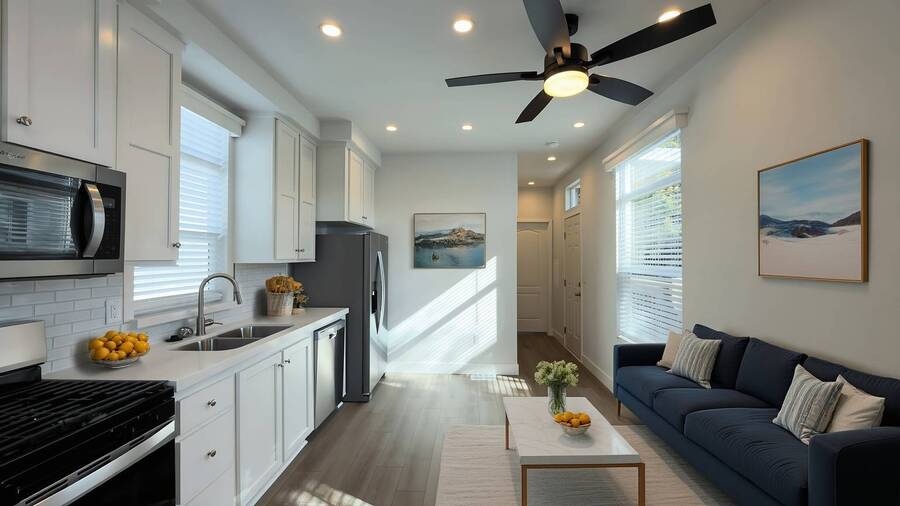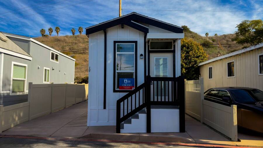 Discover this brand-new 2026 single-section home located in Beachwood Park in Dana Point. This 1-bed, 1-bath layout offers an efficient floor plan with modern finishes throughout. The kitchen features stainless steel appliances, quartz countertops, a brushed-nickel gooseneck faucet, a full backsplash, hardwood-upgrade cabinetry, and an undermount stainless steel sink. The home includes vinyl flooring throughout, LED recessed lighting, faux wood blinds, soft-close cabinet hinges, and a programmable thermostat. The home comes AC-ready with electrical wiring in place for a future condenser. Additional features include LP Smart Panel board-and-batten siding, architectural shingles, upgraded exterior trim, transom windows, and a French door with built-in blinds. This home is constructed with 9' flat ceilings, a 29-gallon gas water heater, a gas furnace, and energy-efficient insulation. Located in a community close to beaches, dining, and local conveniences, this home offers a modern living space in a desirable coastal area.