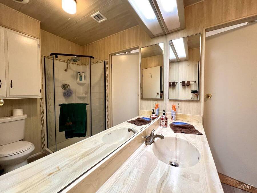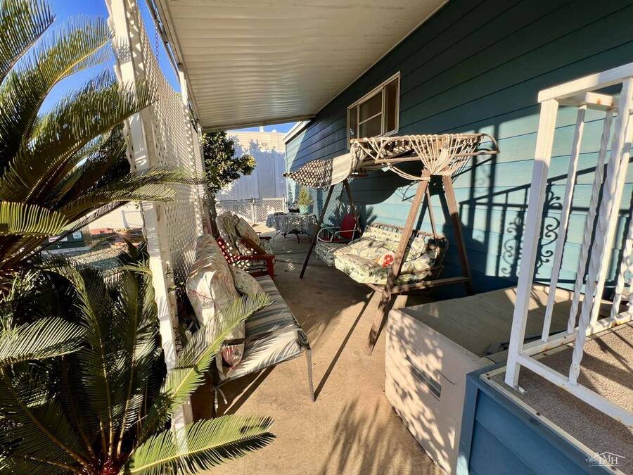 OPEN HOUSE - CASA ABIERTA. Sunday March 8, 10:00am to 12:00pm. Beautifully maintained 2 bedroom, 2 bath home situated on a spacious corner lot at the entrance to Lynwood South Mobile Estates. This well-cared-for home is exceptionally clean and shows true pride of ownership throughout. Mature trees provide natural shade and a peaceful setting, complemented by an inviting, gated outdoor porch perfect for relaxing or entertaining. Inside, you'll find a comfortable layout with generous room sizes and plenty of natural light. The large main bathroom offers excellent convenience with two vanities and a brand-new walk-in shower, creating a spa-like feel. Both bedrooms are well-sized, and the home offers great flow for everyday living. Located just steps away from the community clubhouse, pool, and jacuzzi, you'll enjoy easy access to all the amenities Lynwood South Mobile Estates has to offer. A wonderful opportunity to own a move-in-ready home on one of the best lots in the community! ABE4667.
