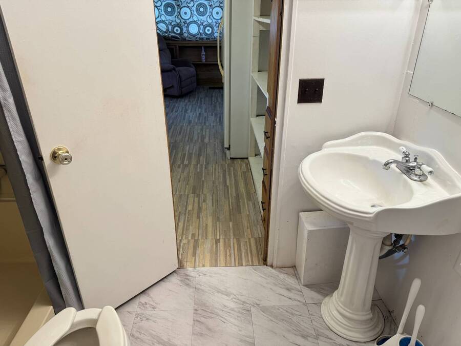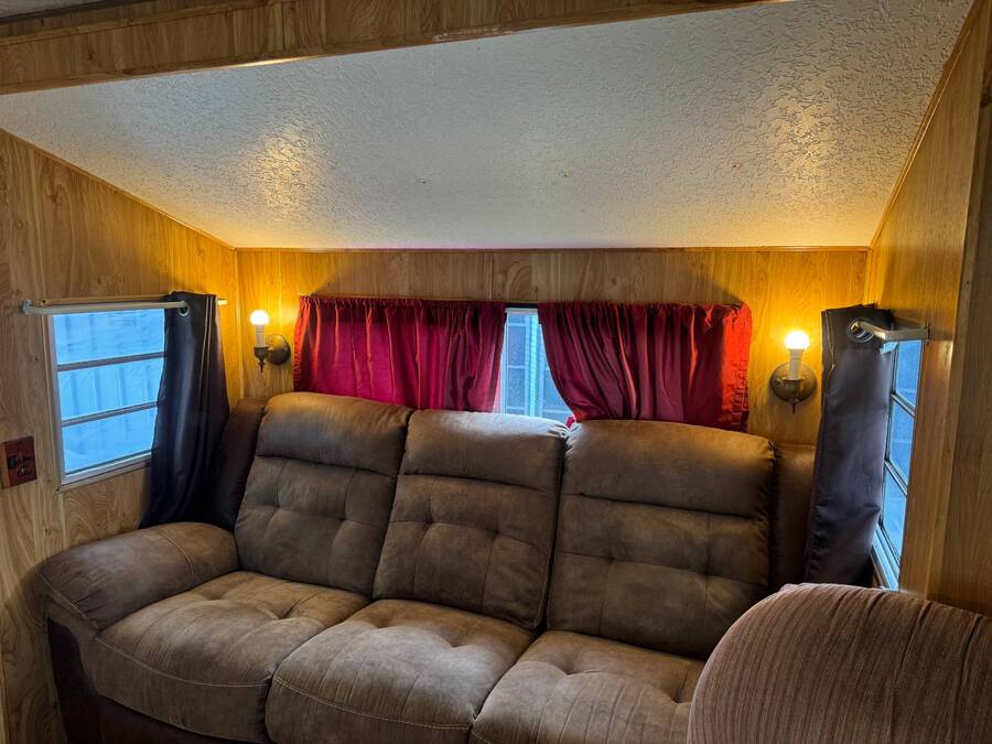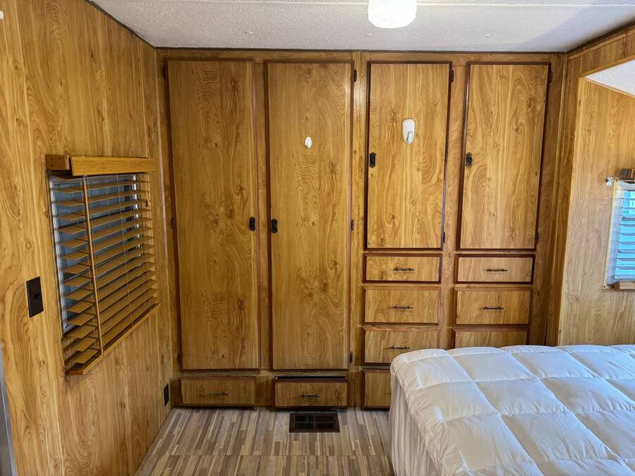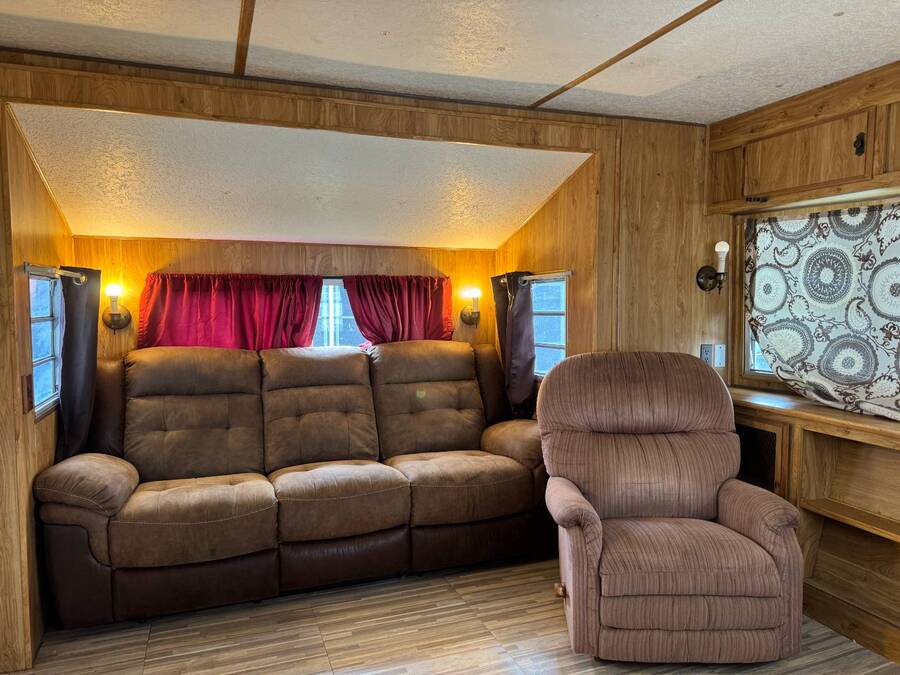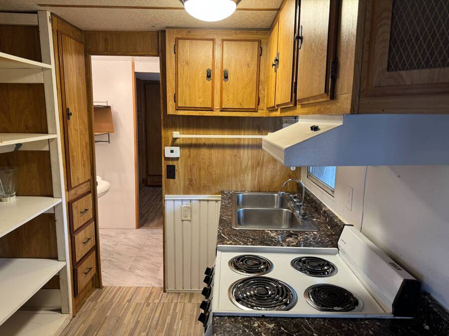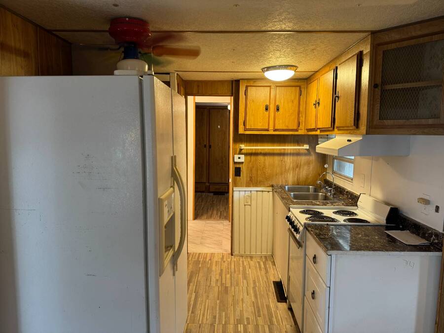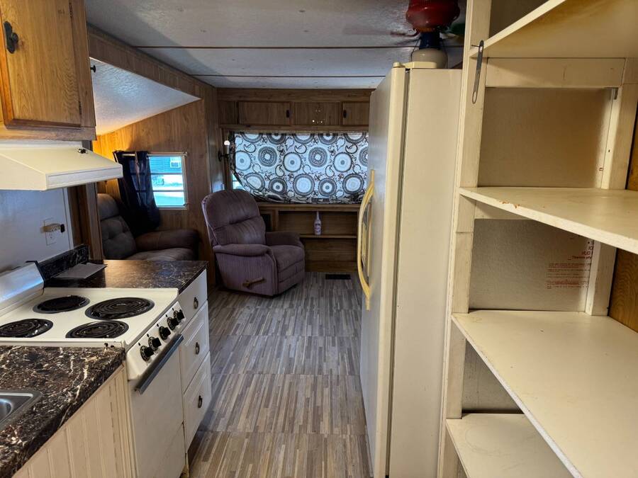 This 2 Bedroom, 1 Bath PARTIALLY FURNISHED Turn-key Home is in Holiday Travel Park, an All-Ages Community with LOW $693 Lot Rent. The Home has 700 Sq Ft with a Double Carport, plus a Separate Spot for a Third Car, a Metal Roof-over, a Patio under the Carport and a Spacious Add-on. The Add-on is 10'x28' with Cement Floors, an Electric Fireplace, Newer blinds and a Window Ac Unit. The Space could be used as a Guest Bedroom or Family Room. To the back is an Attached Storage Shed with Plenty of Storage Space with a Newer Washer and Dryer, New in 2022. The Main Section of the Home has Updated Vinyl Wood-look Floors and Lots of Windows. The Living Area Opens up Nicely to the Kitchen. The Kitchen has an Electric Stove, a Side-by-Side Refrigerator and Plenty of Pantry and Storage Space. The Pass-thru Bathroom leads to the Primary Bedroom. The Bathroom has a Low Style Bathtub and Vinyl Tile Look Floors. The Guest Bedroom has Plenty of Closet Space and is ideal for Visiting Family and Friends. Located to the side of the Home is a Second Attached Storage Shed. The Home is only a Short Walk to the Heated Pool and Social Clubhouse. Start Living the Florida Lifestyle and enjoying the Gulf Breeze in this Lakeview Turnkey Home in Holiday Florida. Travel Park is a Family/All Ages Park in Holiday, FL. Park Amenities include Heated Pool, Gym, Shuffleboard, Fishing Pond and Clubhouse. LOW LOT RENT of $693 includes water, sewer, lawn and Park Amenities. A Charge of $6.66 will Cover the Garbage. Pet Friendly - 2 Pets Any Size- Breed Restrictions Apply.