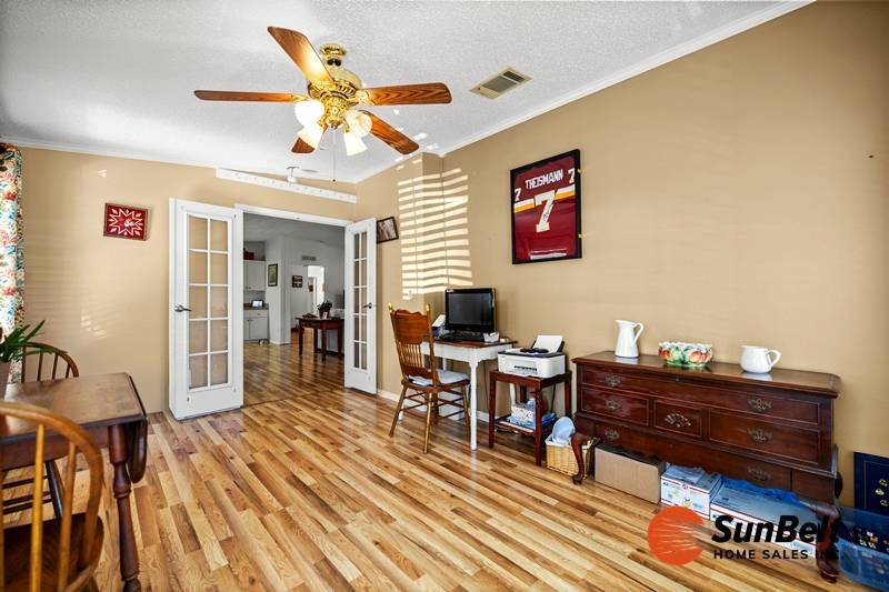 Welcome to your delightful new retreat in the serene 55+ community of Foxwood Farms, a true gem nestled in the heart of Ocala, Florida. This charming 2-bedroom, 2-bathroom + bonus Sitting Room, home is designed to envelop you in comfort and modern convenience, inviting you to experience the joys of everyday living. With a generous 1,568 square feet, every corner of this residence has been thoughtfully curated to enhance your lifestyle. Handicap and wheelchair accessible. Picture yourself spending leisurely afternoons in your lovely Florida room, with mini split heat and air. where tinted glass sliding windows allow natural light to pour in, creating a warm and inviting atmosphere. The well-appointed kitchen with a new dishwasher with its ample storage, counter tops, large pantry and breakfast area and contemporary features, beckons you to unleash your culinary creativity, making every meal a delightful experience. The master suite is a sanctuary of luxury, boasting double sinks and updated finishes that elevate your daily routine. walk in a tile shower that will accommodate a wheelchair. Meanwhile, the open concept living area, adorned with new vinyl flooring, effortlessly flows into a cozy sitting room, providing the perfect spot to unwind with a good book or catch up with friends. 2024 New Central Heat & Air, New Hotwater Heater, Air vents in the ceiling, New kitchen Sink & Faucet, Granite countertops in Bathroom, New flooring in the Florida Room, No rear neighbors, Recently releveled and Vapor Barrel is great condition. Step outside to discover the peaceful cul-de-sac setting that offers a tranquil escape from the hustle and bustle of everyday life. Your new community is rich with amenities, including a welcoming clubhouse, a fully-equipped fitness center, and refreshing swimming pools that invite you to take a dip on sunny days. With local shopping just a stone's throw away and a variety of cultural experiences nearby, this home is more than just a place to live; it's a vibrant lifestyle ready for you to embrace. Foxwood Farms offers - heated swimming pools, clubhouses, gym, indoor & outdoor activities, library, billiards etc... The lot lease is $920 month which includes all the above and Lawn Maintenance, Trash Service, Water & Sewer. Just outside the entrance is restaurants, a medical facility, grocery store and convenient to I75 and main strip in SW Ocala Florida. Don't miss out on this charming opportunity to make Foxwood Farms your new home!