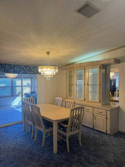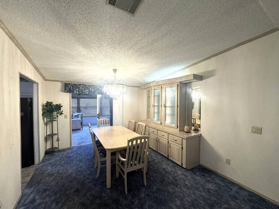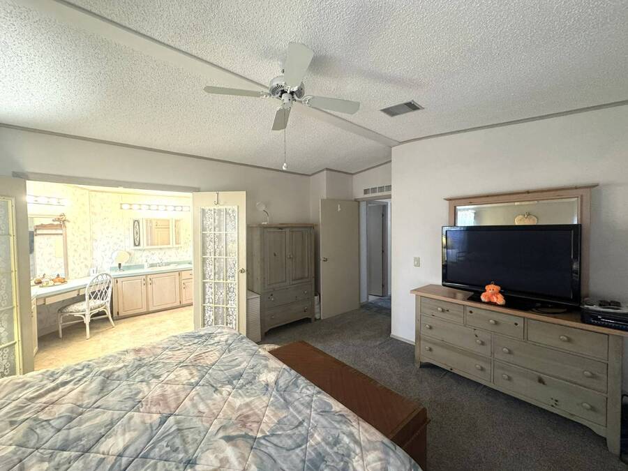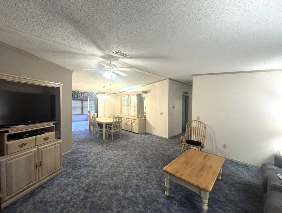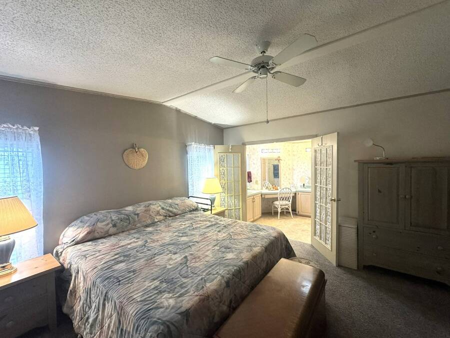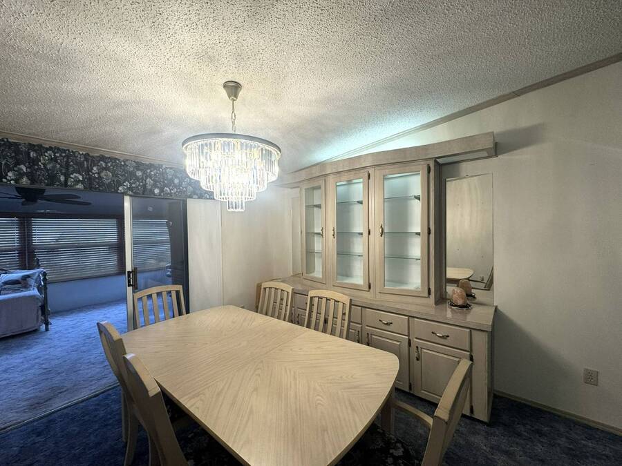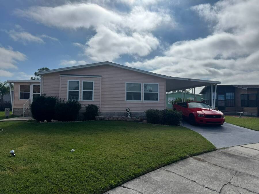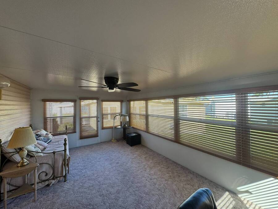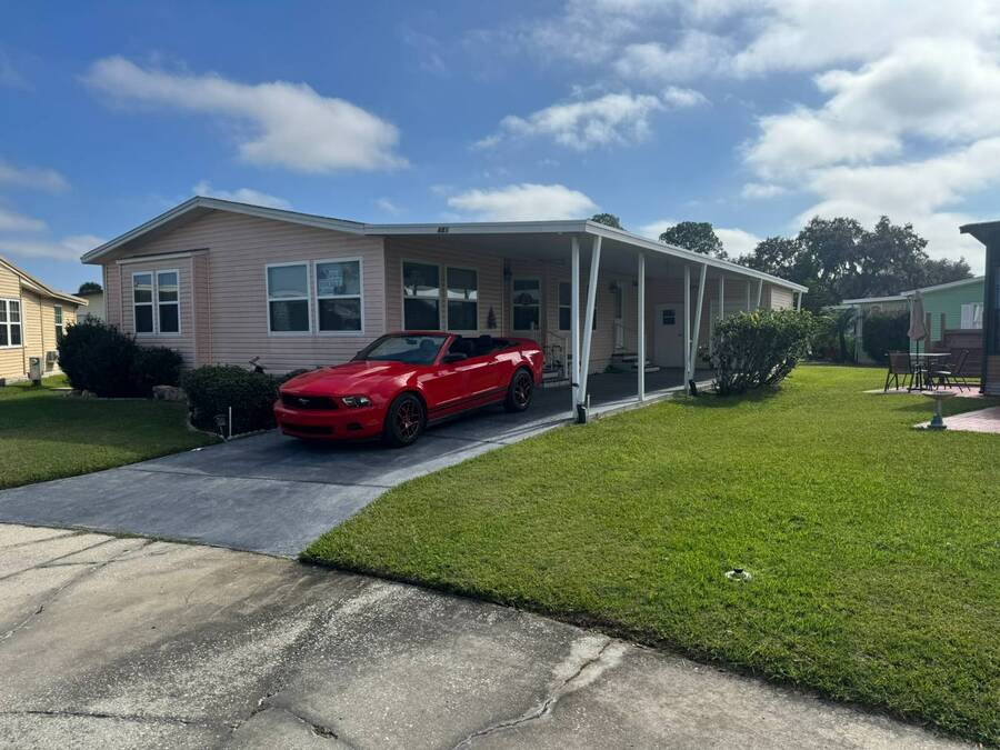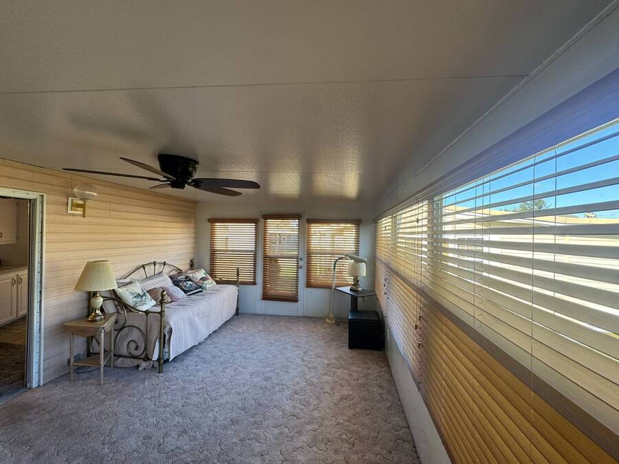 PRICE REDUCED! Motivated Seller. This well maintained, large furnished home is ready for you to move in and entertain. Look at that kitchen with tons of cabinet and counter space, large center island with cooktop, eat in bar area and eat in nook area with counter desk area. The living room is spacious and has room for sofas, easy chairs and a big screen TV. Plus, this living area opens up into a side den that could be a home office or game room. The dining room accommodates a large table for entertaining and has a gorgeous built in hutch with glass doors. These areas flow into the climate-controlled lanai with walls of windows making it bright and airy. This home has two bedrooms with the owner suite being large and capable of accommodating a king size bed and multiple dressers.This owner's suite has a walk-in in closet and en-suite bath with double bowl sinks, French door access and separate shower/toilet area. The guest bath is also nicely appointed and has plenty of storage. There is also a separate laundry area in the home with overhead storage cabinets. On the outside you have a large carport capable of parking 3 cars and a golf cart. There is also an attached large shed with overhead golf cart door that provides additional storage space for decorations of gardening equipment. This home received a new roof and AC in 2021, so that is two less less concerns for the next owner. This home is aggressively priced to sell at $59,999 with a monthly lot lease of a $882 which covers your water, trash, sewer charges, property tax pass through plus all of the amenities at your access except for golfing privileges that can be purchased for a surprisingly low annual fee or low daily rate. This home is located in The Meadows @ CountryWood, a 55+ and PET FRIENDLY community. It offers an 18/27 hole golf course with many leagues and a friendly Pro Shop, 2 Tennis Courts and Tennis League, Shuffleboard Courts, 2 Clubhouses, 2 Swimming Pools, Saunas, Workout Gym and 2 Hot Tub Spas. The Meadows also offers numerous social activities including events such as dances, movie nights, bingo, breakfasts, dinners, etc. In addition, our new state of the art Baycare South Florida Hospital opened up in September just half mile down the street.