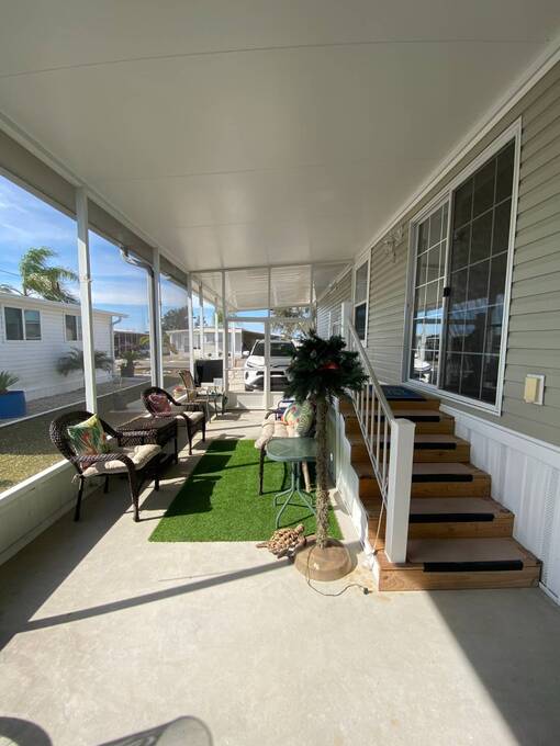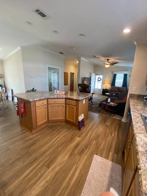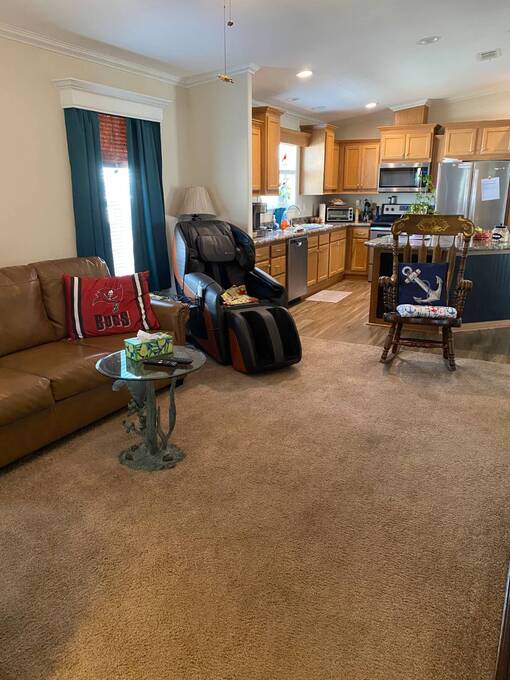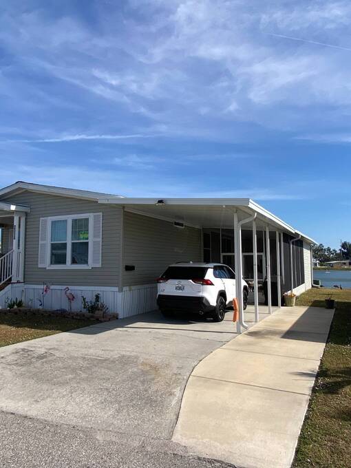 Bring your family & friends to this open concept living/dining/kitchen and outdoor space. This 3 bedroom, 2 bathrooms, has a split bedroom floor plan. Offers ample kitchen cabinet storage & pantry, SS appliances and oversized kitchen island. Vaulted ceilings & crown molding in every room, sliding door from dining room to 14x25 lanai w/ double doors for golf cart storage, primary bedroom with walk-in closet & views of the pond, primary bathroom has double sinks & walk-in shower, and an inside laundry room. Front covered composite 8x13 deck, 13x12 storage room with electric and a 14x25 carport with extra parking for a car or golf cart. $716 per Month Lot Rent Includes: Spectrum Select TV Package with 2 Set Top Boxes, Internet at 400 mbps, Water/Sewer, and Garbage pickup twice weekly. A Land Lease Manufactured Home 55+ Community (239 Homes) Located On The Scenic Little Manatee River with Entrance to Tampa Bay and the Gulf of Mexico. 30 Minutes South of Tampa off US 41. It is rural but it is minutes from shopping, beaches, and medical facilities. Come enjoy our quiet, active, and owner-occupied community (renting homes is not allowed). Our community has many amenities, including, but not limited to our beautiful Heated Pool, Shuffleboard Courts, Horseshoe Pits, Fire Ring, Bocce Ball, Pickle Ball, Tiki Hut, Clubhouse with Screen Room, Commercial Kitchen, Stage, Recreation Hall, Laundry, Memorial Bridge, 3 Ponds, Private Fishing Pier, Boat Ramp, Fish Cleaning Station, and 30 Boat Slips. Pet Friendly with Off-Leash Dog Park. Small Dogs and/or Cats Maximum 25 Pounds and 16" at Shoulder at adulthood-Limit of 2 Pets. Secured Storage, Unsecured Storage & Boat Slips are Available for Residents to Rent. All prospective buyers must come to the office prior to purchasing a home for a background and credit check. Contact Chulavista Landings Office for more information.
