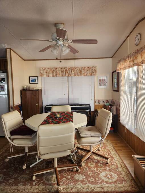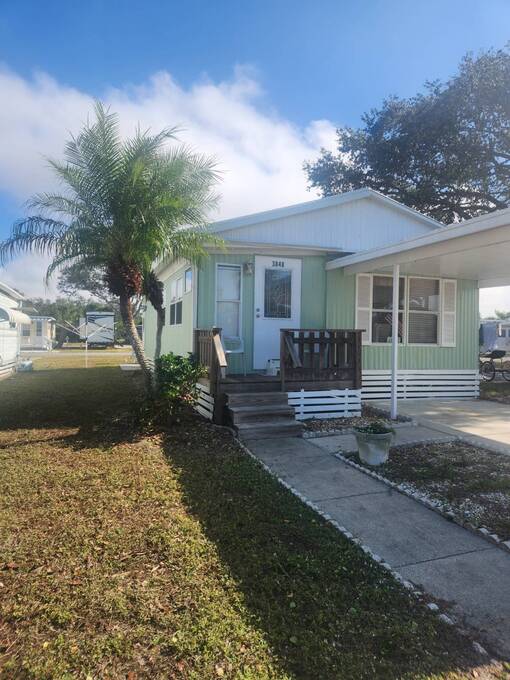 This well maintained 1 bedroom one and a half bath home has been meticulously maintained throughout. This home comes fully furnished. New AC unit was installed in 2022. Both toilets were replaced in 2024. New washer was installed in 2025. The hot water heater was replaced in 2025. This home has a metal roof. This home has a carport. The park amenities include a pool, jacuzzi, rec room, library, fitness center, shuffleboard, pickleball, kayaking, dog park, fishing pier and a nature park. The park offers boat and RV storage for a monthly fee. This community is a short drive to the Tampa International Airport, St. Pete/Clearwater International Airport and Sarasota International Airport. This community is a short drive to all the Disney attractions. Shopping and dining options are close by.