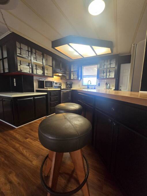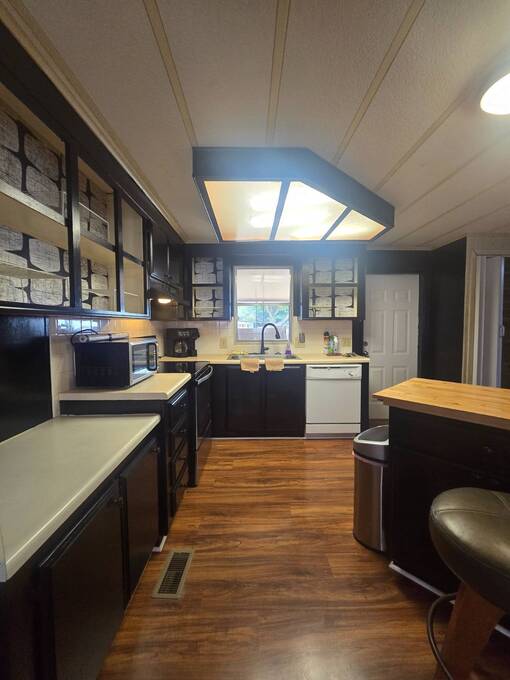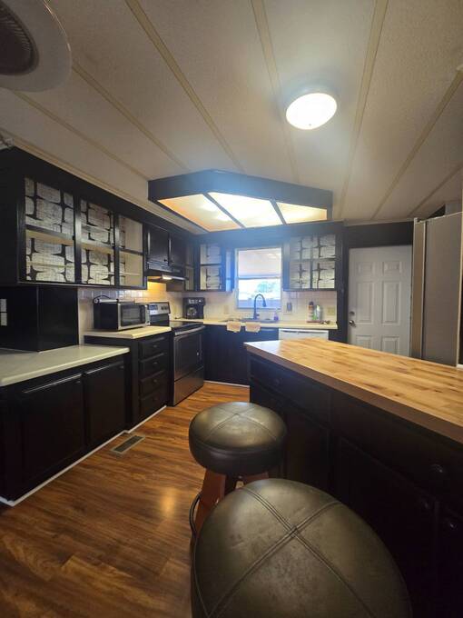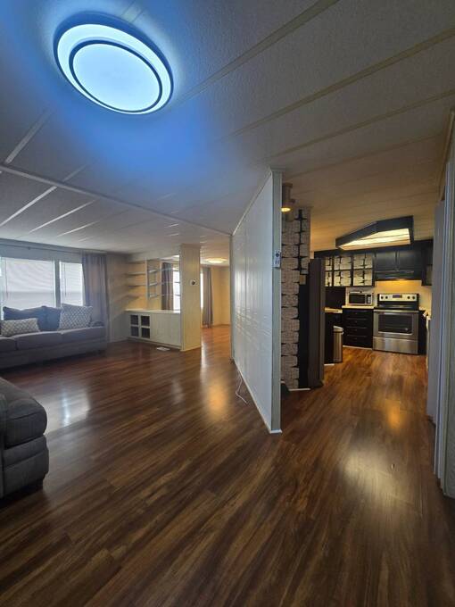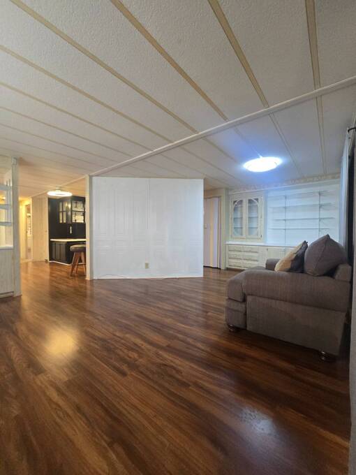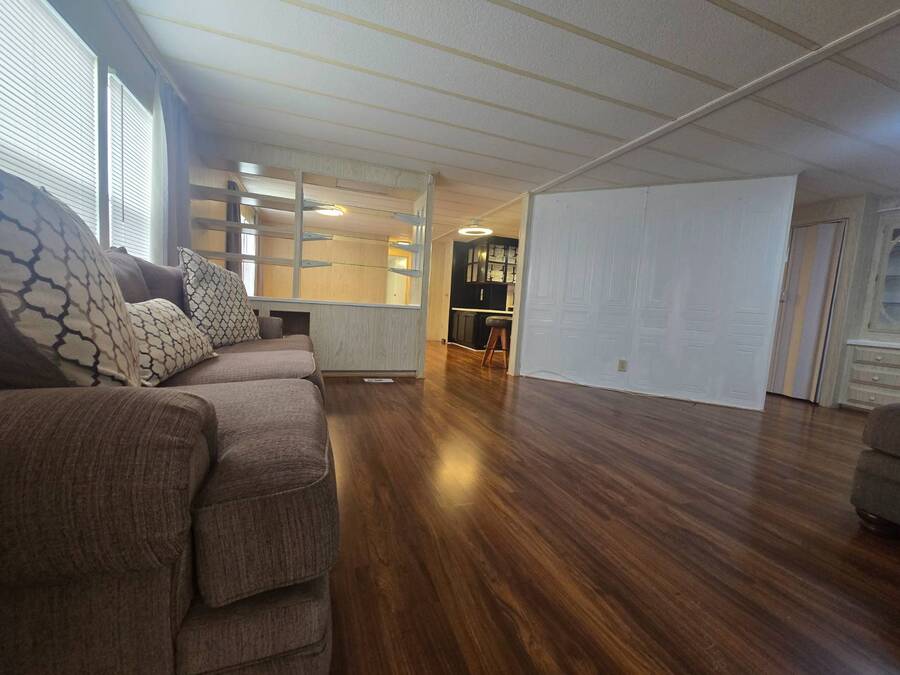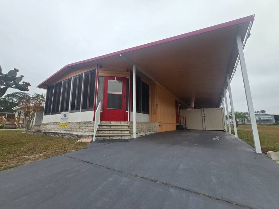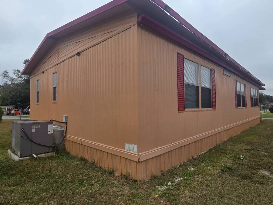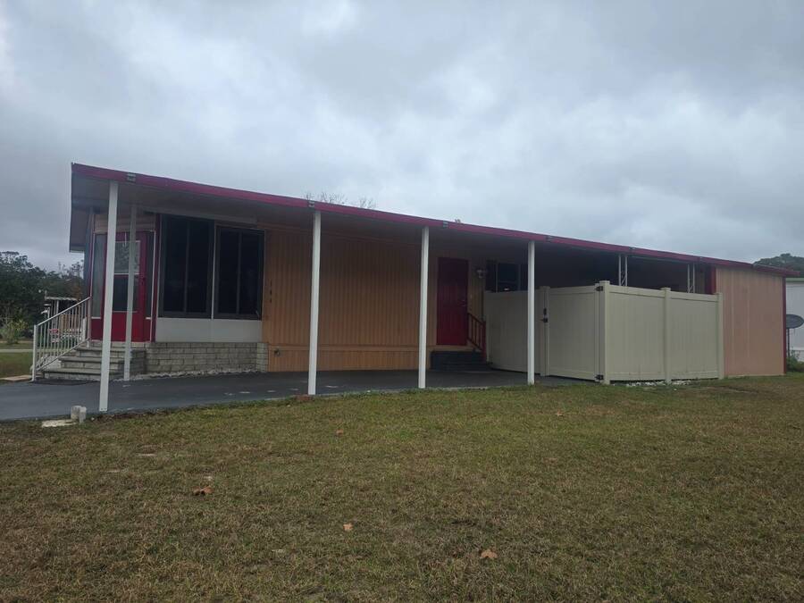 55+ Welcome home to this beautiful spacious 2 bedroom, 2 bath manufactured home in the highly desired Villas of Spanish Oaks community. Sitting proudly with corner-lot views, this home offers over 1,100 sq ft of comfortable living and a layout designed for both style and convenience. Gorgeous natural lighting that flows effortlessly throughout the home, Fresh LED lighting along w/ Solar exterior lights. The living room, dining room, and formal area create a versatile space perfect for relaxing or entertaining guests. The master bedroom features a walk-in shower with hand bars, and both bedrooms are generously sized for queen or king set. The home comes fully equipped with all appliances included-washer, dryer, range, microwave, and dishwasher-making move-in simple and stress-free. Enjoy Florida living with multiple outdoor spaces, including a large enclosed screened-in area, and a private fenced-in section ideal for pets, plants, or peaceful relaxation. Situated in a quiet, well-kept community, this corner-lot gem offers privacy, space, and beautiful hilltop views. The HVAC 2022. The roof sealed in 2025. Move-in ready. Carport updated w/ aluminum tubing 2024 New flooring 2023 .This home is ready with major updates already completed, giving you peace of mind and long-lasting value. Community amenites include water sewer trash lawn along with Clubhouse, Heated pool + second pool, Computer & game rooms, Library, Shuffleboard, Pickleball courts, Billiards, Planned community activities, Outdoor grilling area, Boat & camper storage area and bus transportation in front of community. Close to Publix, Walmart Lowes restaurants and more.On the bus line