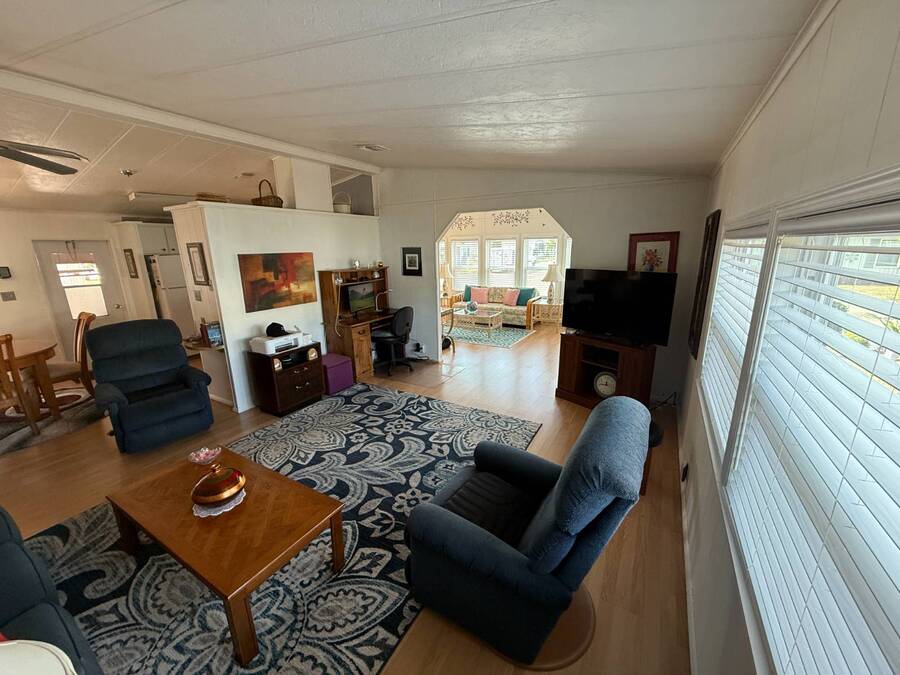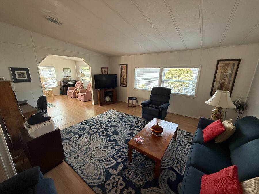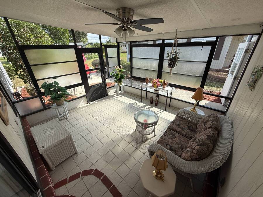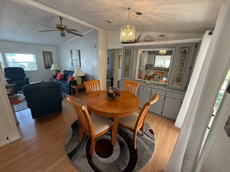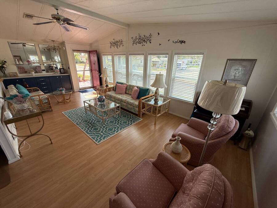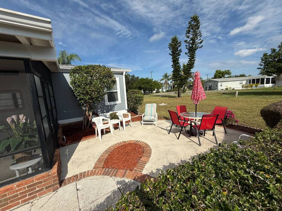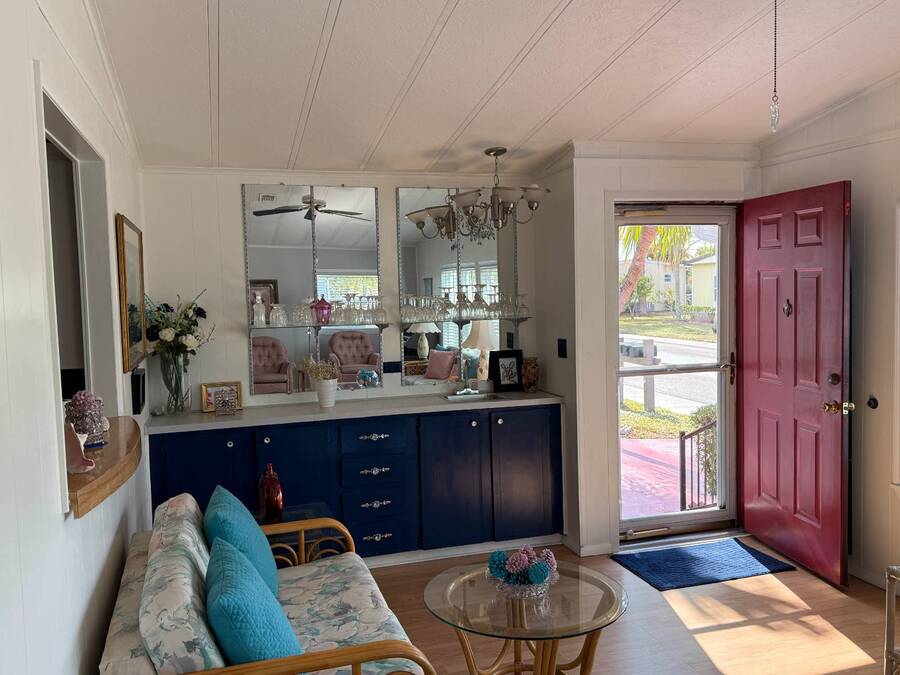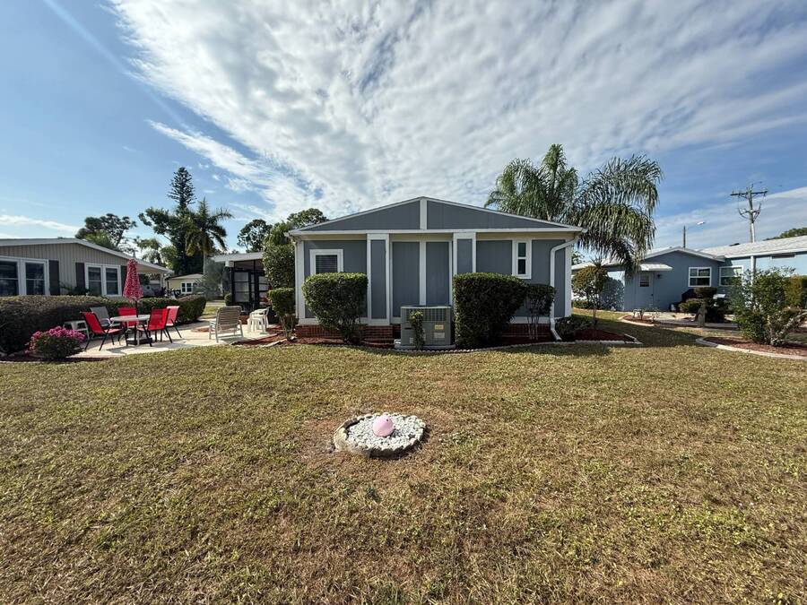 This well-cared for Palm Harbor home is being sold fully furnished. When you arrive at the home, you will see the tasteful landscape, freshly painted driveway, and gutters around the home. When you enter the home, you are in the front living area. This room has plenty of seating for relaxing with plenty of natural lighting from the many windows. This room also has a wet bar with cabinets. The primary living area with additional seating with a desk & a TV. The dining area has a table with chairs and built-in hutch and pendant light. The kitchen has lots of cabinets with glass backsplash. There is a cutout window to the front living area. The guest bathroom has an upgraded single sink vanity, and walk-in shower with glass doors. The primary bedroom has 2 twin beds with furniture, a ceiling fan, and walk-in closet. The primary bathroom has a single sink vanity with tub & shower. The guest bedroom has a queen bed with furniture, a wall closet, and a ceiling fan. The lanai is a great space for relaxing with slide windows with screens, tile floors, and a ceiling fan. Off the lanai is a concrete patio for your outdoor enjoyment. UPDATES: Roof (2022), A/C (2017), Windows (2024) Only a few minutes to one of the five pools & hot tubs, clubhouse, & fitness center as well as tennis courts, pickleball courts and golf course. This community has a full social calendar and activity schedule. Plenty to keep you busy! This is a 55+ (very active) community. Come join this luxury lifestyle community. YOU WON'T BE DISAPPOINTED!!