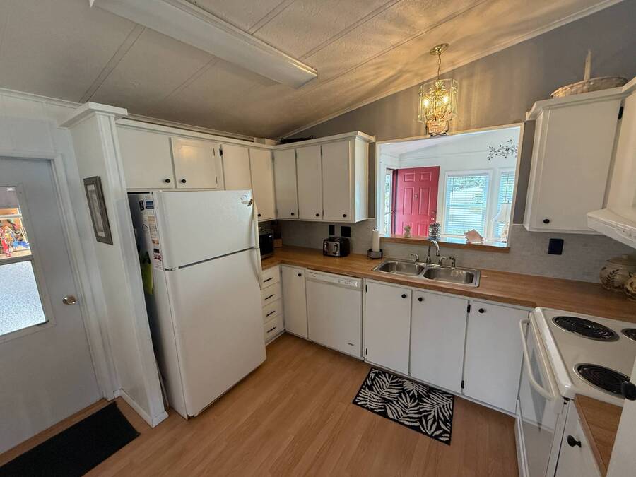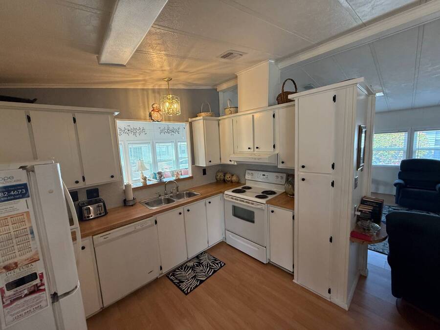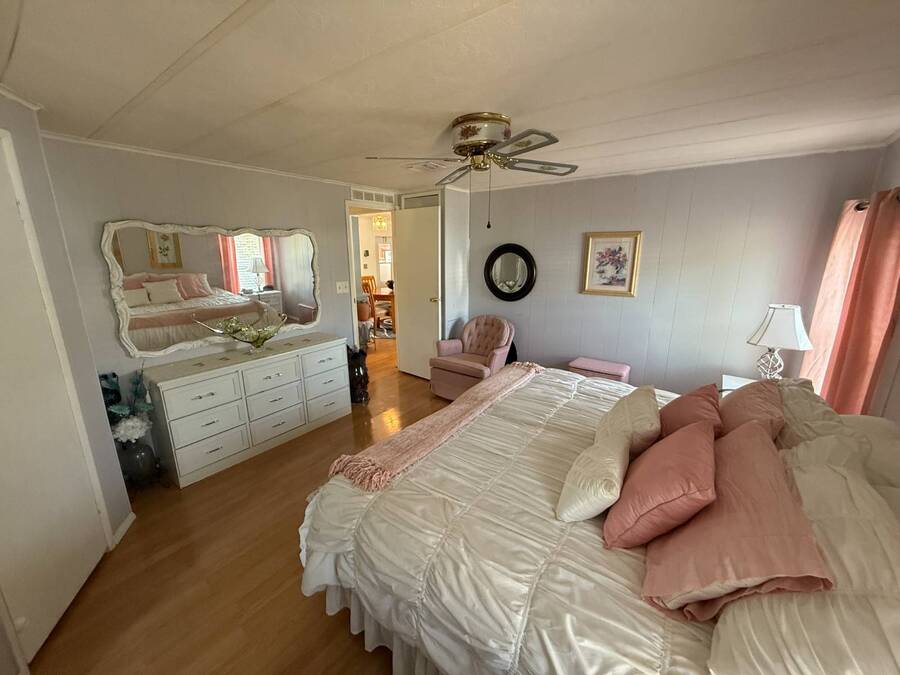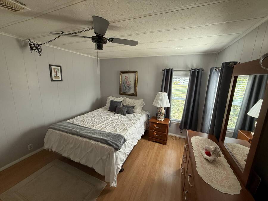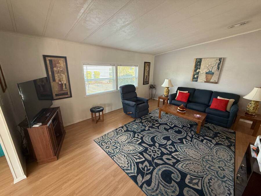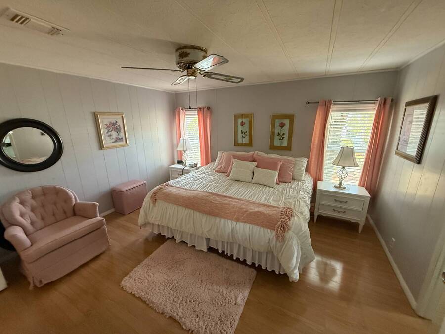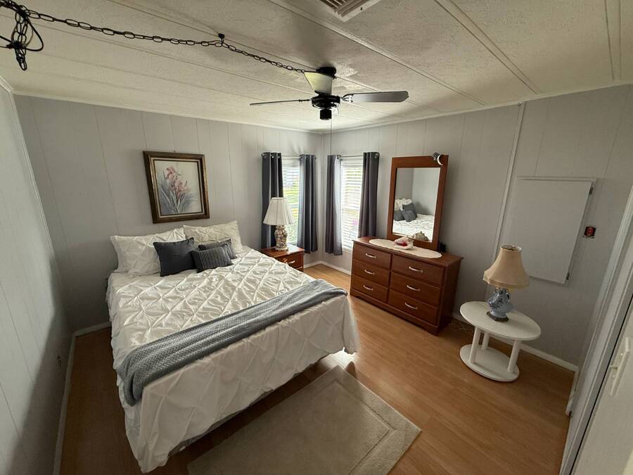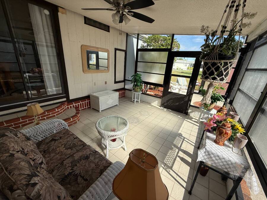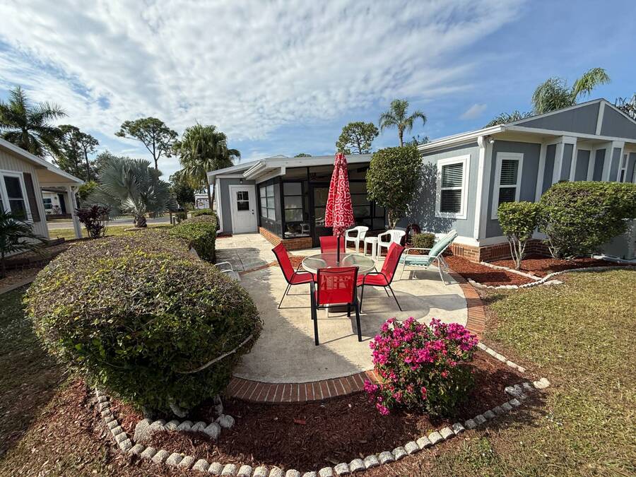 This well-cared for Palm Harbor home is being sold fully furnished. When you arrive at the home, you will see the tasteful landscape, freshly painted driveway, and gutters around the home. When you enter the home, you are in the front living area. This room has plenty of seating for relaxing with plenty of natural lighting from the many windows. This room also has a wet bar with cabinets. The primary living area with additional seating with a desk & a TV. The dining area has a table with chairs and built-in hutch and pendant light. The kitchen has lots of cabinets with glass backsplash. There is a cutout window to the front living area. The guest bathroom has an upgraded single sink vanity, and walk-in shower with glass doors. The primary bedroom has 2 twin beds with furniture, a ceiling fan, and walk-in closet. The primary bathroom has a single sink vanity with tub & shower. The guest bedroom has a queen bed with furniture, a wall closet, and a ceiling fan. The lanai is a great space for relaxing with slide windows with screens, tile floors, and a ceiling fan. Off the lanai is a concrete patio for your outdoor enjoyment. UPDATES: Roof (2022), A/C (2017), Windows (2024) Only a few minutes to one of the five pools & hot tubs, clubhouse, & fitness center as well as tennis courts, pickleball courts and golf course. This community has a full social calendar and activity schedule. Plenty to keep you busy! This is a 55+ (very active) community. Come join this luxury lifestyle community. YOU WON'T BE DISAPPOINTED!!