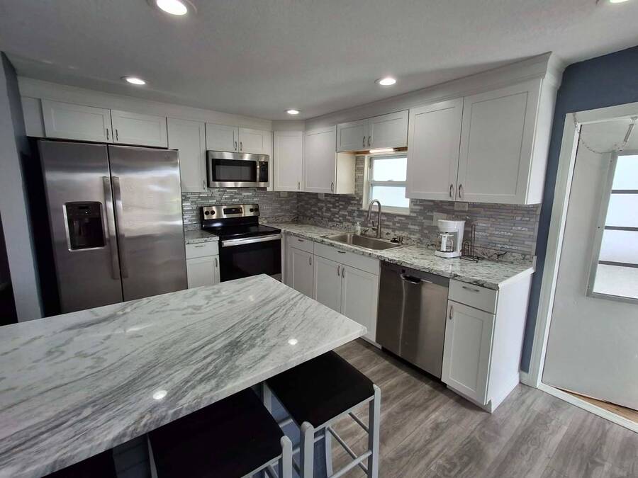 This fully remodeled home is waiting for its new owner. Lots of storage with 2 hallway closets and master bedroom offers a lovely walk in closet. Open concept new kitchen with beautiful island complete with granite top newer stainless steel appliances and garbage disposal. The bathroom is large with custom tiled walk in shower and plenty of room in the vanity for two with granite top with double sinks. LED lighting, ceiling fans, and recessed lighting make this home light and bright. The entire home is sheet rocked, subfloors are plywood with water resistant flooring. Washer and dryer set up in the laundry area of the shed. New steps and new custom ramp into your screen room make getting into your home very accessible. Contact me for more details. lt is vacant and a quick sale available. Hacienda Village is a premium 55+ Gated community in New Port Richey. Golf cart friendly, just minutes from down town. Lot rent approximately $1000 per month and will include property taxes, water, sewer, garbage and lawn care. Amenities include heated pool, fitness center, billiards and more. 15,000 down, 585/mth + lot rent for 5 years.