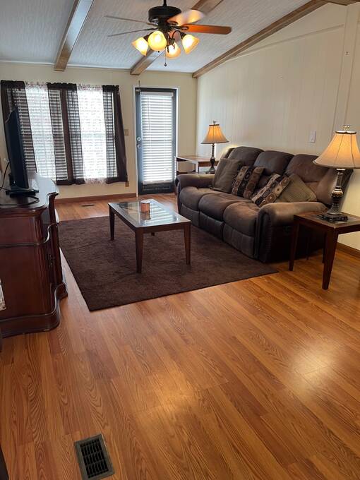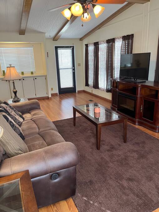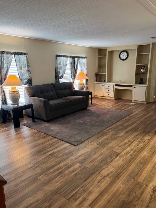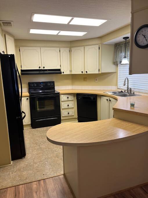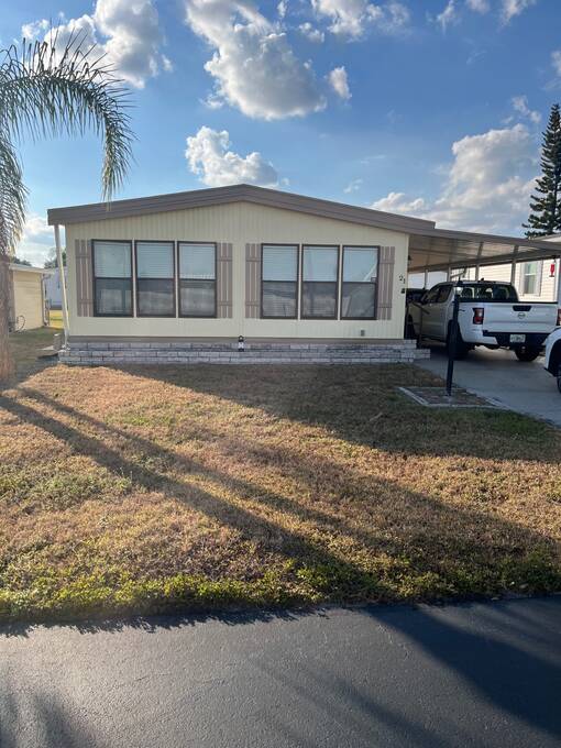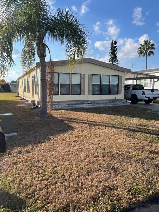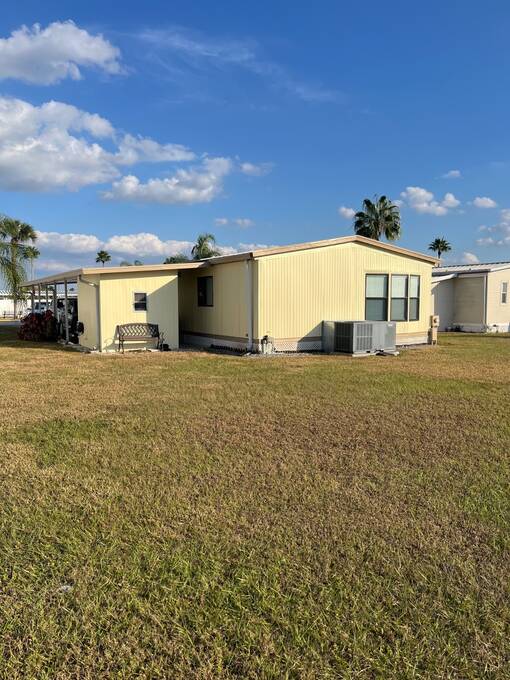 SELLER IS MOTIVATED AND IS OFFERING TO PAY SIX MONTH'S LOT RENT FOR NEW BUYER. Must see this lovely 2 bedroom, 2 bath double wide mobile home in sought after Orange Manor West community. Owners have left some furnishings, leaving space for you to purchase and furnish you new home just the way you like it. Perfect home for those cold winters up north or make it your year round residence. This home is on leased land with a monthly fee of $513, which includes cable, internet and trash pick up. Engage in friendly competition with shuffleboard, putt-putt, and horseshoes, or unwind with a game of bingo or cards. Enjoy sunny days at the swimming pool or take a peaceful stroll to the picturesque lake. There's always something happening, making it easy to forge new friendships and create lasting memories. Whether you're looking to downsize, retire, or simply find a peaceful place to call home, this gem has it all! NO PETS, ONLY EMOTIONAL SUPPORT AND SERVICE DOGS