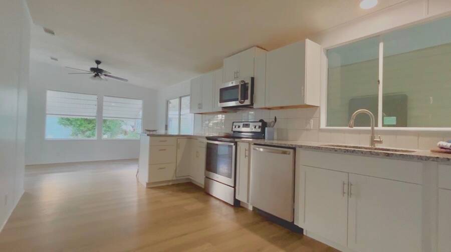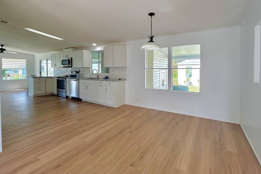 Welcome to effortless Florida living in this beautifully renovated 1991 doublewide mobile home, located in the peaceful and well-kept Swan Lake Estates-an inviting 55+ community that feels like a hidden retreat. Completely updated and truly move-in ready. PLUS WITH A FULL PRICE OFFER SELLERS WILL HAVE A NEW ROOF INSTALLED. This three-bedroom, two-bath home has been thoughtfully upgraded to impress even the most discerning buyer. Step inside to a bright, open, and welcoming interior featuring fresh paint throughout, stylish luxury vinyl plank flooring, and energy-efficient lighting. Abundant natural light fills the space, enhancing the open floor plan that offers both comfort and functionality for everyday living and entertaining. The spacious kitchen provides ample counter space and generous cabinetry, flowing seamlessly into the attached dining area-perfect for casual meals or hosting family and friends. A dedicated laundry room keeps daily tasks neatly tucked away. The primary suite is a true retreat, offering generous space, a walk-in closet, and a refreshed ensuite bathroom complete with dual vanities. Two additional guest bedrooms are comfortably sized with plenty of closet space, and the guest bathroom has been tastefully updated as well. Outside, enjoy a well-maintained lot with brand-new sod and a watering system, a private driveway, covered carport parking, and an attached shed for extra storage. A convenient breezeway connects to the screened enclosure, creating an ideal space to relax and enjoy Florida's beautiful weather. Additional features include central heat and air with brand new duct work installed in 2026, and a electrical systems that meet current standards-providing peace of mind for years to come. Residents of Swan Lake Estates enjoy resort-style amenities, including a sparkling community pool and clubhouse, fostering an active and social lifestyle. Monthly lot rent is $660. Which includes basic cable. Ideally located near Fox Lake Park, downtown Titusville dining and entertainment, Publix shopping, and just a short drive to Cocoa Beach and Port Canaveral, this home offers both tranquility and convenience. A Home Warranty (1 Year) covering major appliances, HVAC and Water Heater is Included Pictures with furniture are staged. In a few days we will be adding a video so you can see the flow of this lovely home.