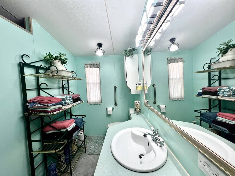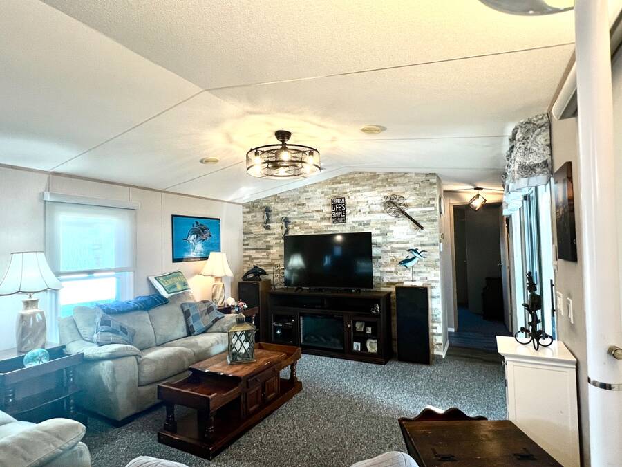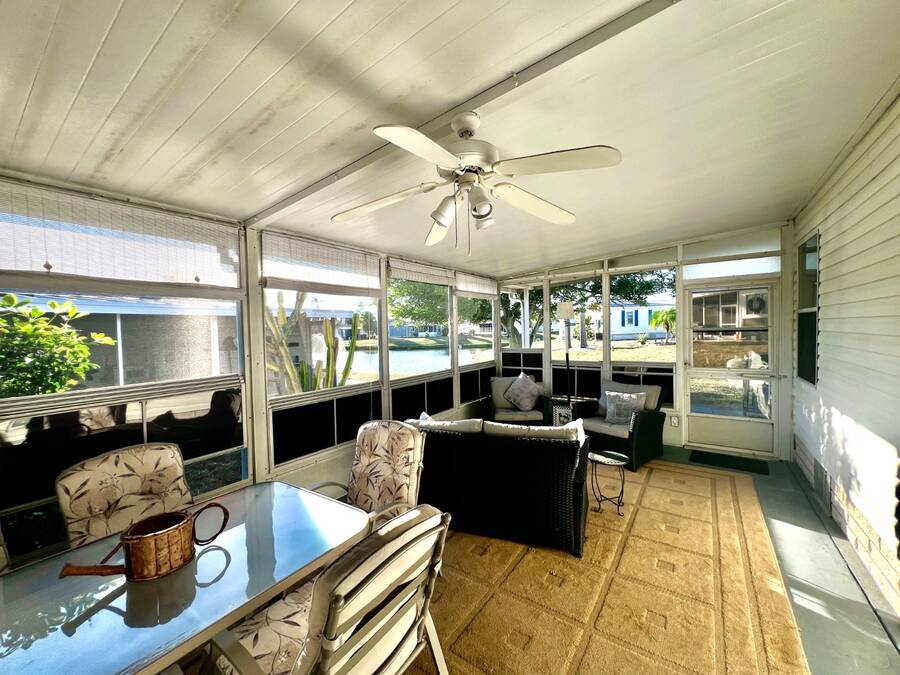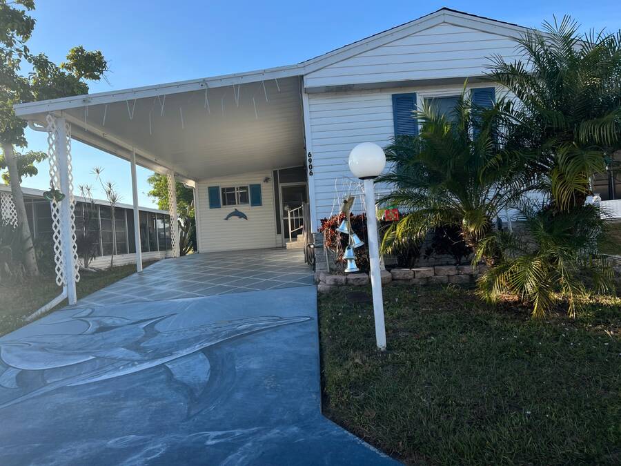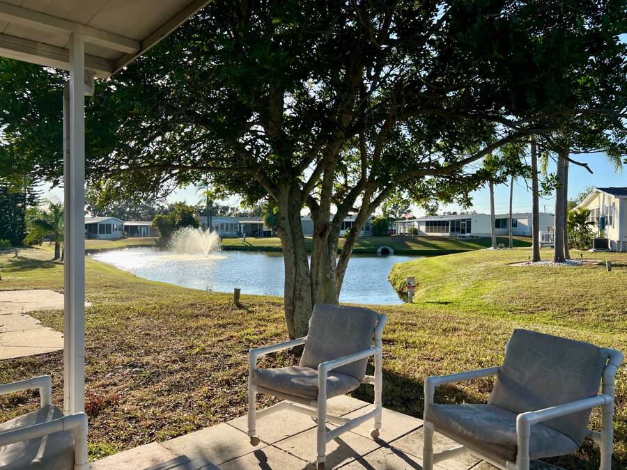 6906 Coconut Grove Cir: Ridgewood Estates, Ellenton, FL. Pet friendly, fully gated golf cart community! Do not miss out seeing this spacious home with a water view (with lighted fountain!) that has many upgrades in exclusive Ridgewood Estates! Walk thru video tour available! A 4 PT Insurance inspection is available for review that covers the next 4 items: ~ROOF: New asphalt shingle roof in 2025 plus 2 new skylights ~HVAC: 2024 Comfortmaker 2.5 ton 15 Seer plus heat strip/duct sanitization ($) Warranty ~PLUMBING: 2026 water heater, CPVC/PVC/copper ~ELECTRICAL: 2024 panel; 150 amp service ^^^FEATURES/UPDATES: ~PRIME LOCATION: Exclusive fully gated Ridgewood Estates. Water view lot with lighted fountain! ~REMODELED KITCHEN 2024: New cabinetry and faux granite resin counter tops plus glass backsplash ~REMODELED HALL BATH 2024: New tile shower with rain style shower head and glass doors ~FLOORS: Luxury vinyl plank and carpet with plywood subfloors ~WALLS/CEILINGS: Sheetrock with vaulted ceilings (no paneling!). Real stone feature wall in living room ~WINDOWS: Many windows have been updated to double hung, thermo-pane/tilt-in ~LIGHTING/Ceiling Fans: Trendy new lighting throughout plus remote control FANDOLIER in living room ~INSIDE LAUNDRY: The washer/dryer are included plus extra cabinetry ~LANAI 12 x 44/528 SF: Water tight room with vinyl windows, plus screens with roll up sun shades, 2 doors; one from carport and one to the rear patio. A great living space where you will enjoy the beautiful Florida weather in comfort! ~BLOCK PATIO: Shaded space that can be used for outdoor grilling, hot tub, fire pit or your other favorite outdoor activity ~SHED: 8 x 10 with workbench providing ample room for storing tools, equipment, or seasonal items ~CARPORT/DRIVEWAY: Decorative dolphin mural with parking for 2+ vehicles ~ENTRANCES: Glass EZ slide front door under carport plus door to lanai ~OFFERED: Mostly furnished with turnkey supplies like linens/kitchenware plus includes all appliances ^^^ROOM DESCRIPTIONS: ~LIVING ROOM: Large open living space and you will love the real stone feature wall with a freestanding remote control electric fireplace! ~EAT-IN KITCHEN: Newly remodeled with new faux black granite counter tops/peninsula plus glass backsplash. There is all new cabinetry and gooseneck faucet plus a new skylight too! ~2 LARGE BEDROOMS/2 FULL BATHROOMS: -OWNERS BEDROOM SUITE ~ Accommodates king size furniture, features a large walk-in closet and ceiling fan, large ensuite bathroom that boasts PVC step-in shower with glass doors, large framed mirror plus trendy lighting . -GUEST BEDROOM/GUEST BATH: The guest bedroom is generous in size and can accommodate queen sized furniture. A full bath is just a few steps away with a new tile shower/tub combo and skylight for easy access from living areas and guest bedroom. The lot rent is a reasonable $1321 through September 30, 2026 and offers exceptional value. This monthly fee includes comprehensive lawn care services, covering the edging, cutting, and blowing of debris, ensuring a beautifully maintained yard without the hassle. Residents also enjoy full access to all the fantastic amenities offered within Ridgewood Estates, including two sparkling pools, two spacious clubhouses perfect for social gatherings, a relaxing spa, a well-equipped workout room for staying active, a library for quiet reading, a billiards room for friendly competition, shuffleboard/pickleball/tennis courts for sports enthusiasts, as well as a wide array of wonderful activities and social events to foster a strong sense of community. Golf cart access to shopping centers; park is pet friendly; 2 pets up to 25 lbs each. NEARBY: 7 miles of sugar sand beaches at Anna Maria Island! ~~ Please note that Florida MH Sales, LLC cannot guarantee or warrant the accuracy of the information provided, including measurements or the condition of the property.
