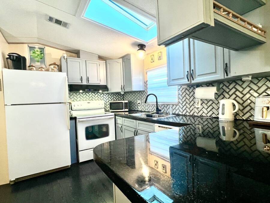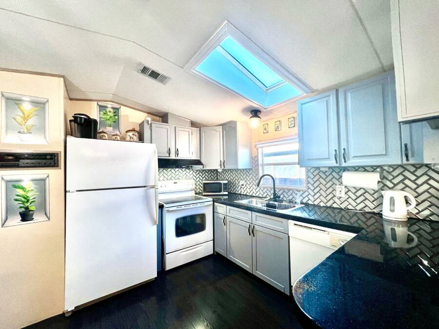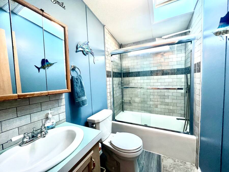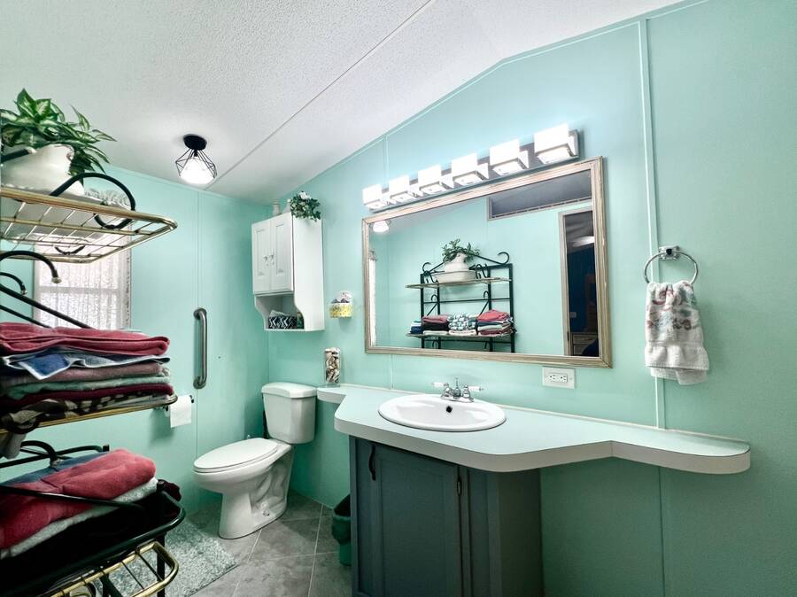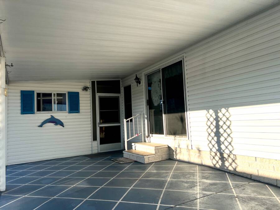 6906 Coconut Grove Cir: Ridgewood Estates, Ellenton, FL. Pet friendly, fully gated golf cart community! Do not miss out seeing this spacious home with a water view (with lighted fountain!) that has many upgrades in exclusive Ridgewood Estates! Walk thru video tour available! A 4 PT Insurance inspection is available for review that covers the next 4 items: ~ROOF: New asphalt shingle roof in 2025 plus 2 new skylights ~HVAC: 2024 Comfortmaker 2.5 ton 15 Seer plus heat strip/duct sanitization ($) Warranty ~PLUMBING: 2026 water heater, CPVC/PVC/copper ~ELECTRICAL: 2024 panel; 150 amp service ^^^FEATURES/UPDATES: ~PRIME LOCATION: Exclusive fully gated Ridgewood Estates. Water view lot with lighted fountain! ~REMODELED KITCHEN 2024: New cabinetry and faux granite resin counter tops plus glass backsplash ~REMODELED HALL BATH 2024: New tile shower with rain style shower head and glass doors ~FLOORS: Luxury vinyl plank and carpet with plywood subfloors ~WALLS/CEILINGS: Sheetrock with vaulted ceilings (no paneling!). Real stone feature wall in living room ~WINDOWS: Many windows have been updated to double hung, thermo-pane/tilt-in ~LIGHTING/Ceiling Fans: Trendy new lighting throughout plus remote control FANDOLIER in living room ~INSIDE LAUNDRY: The washer/dryer are included plus extra cabinetry ~LANAI 12 x 44/528 SF: Water tight room with vinyl windows, plus screens with roll up sun shades, 2 doors; one from carport and one to the rear patio. A great living space where you will enjoy the beautiful Florida weather in comfort! ~BLOCK PATIO: Shaded space that can be used for outdoor grilling, hot tub, fire pit or your other favorite outdoor activity ~SHED: 8 x 10 with workbench providing ample room for storing tools, equipment, or seasonal items ~CARPORT/DRIVEWAY: Decorative dolphin mural with parking for 2+ vehicles ~ENTRANCES: Glass EZ slide front door under carport plus door to lanai ~OFFERED: Mostly furnished with turnkey supplies like linens/kitchenware plus includes all appliances ^^^ROOM DESCRIPTIONS: ~LIVING ROOM: Large open living space and you will love the real stone feature wall with a freestanding remote control electric fireplace! ~EAT-IN KITCHEN: Newly remodeled with new faux black granite counter tops/peninsula plus glass backsplash. There is all new cabinetry and gooseneck faucet plus a new skylight too! ~2 LARGE BEDROOMS/2 FULL BATHROOMS: -OWNERS BEDROOM SUITE ~ Accommodates king size furniture, features a large walk-in closet and ceiling fan, large ensuite bathroom that boasts PVC step-in shower with glass doors, large framed mirror plus trendy lighting . -GUEST BEDROOM/GUEST BATH: The guest bedroom is generous in size and can accommodate queen sized furniture. A full bath is just a few steps away with a new tile shower/tub combo and skylight for easy access from living areas and guest bedroom. The lot rent is a reasonable $1321 through September 30, 2026 and offers exceptional value. This monthly fee includes comprehensive lawn care services, covering the edging, cutting, and blowing of debris, ensuring a beautifully maintained yard without the hassle. Residents also enjoy full access to all the fantastic amenities offered within Ridgewood Estates, including two sparkling pools, two spacious clubhouses perfect for social gatherings, a relaxing spa, a well-equipped workout room for staying active, a library for quiet reading, a billiards room for friendly competition, shuffleboard/pickleball/tennis courts for sports enthusiasts, as well as a wide array of wonderful activities and social events to foster a strong sense of community. Golf cart access to shopping centers; park is pet friendly; 2 pets up to 25 lbs each. NEARBY: 7 miles of sugar sand beaches at Anna Maria Island! ~~ Please note that Florida MH Sales, LLC cannot guarantee or warrant the accuracy of the information provided, including measurements or the condition of the property.