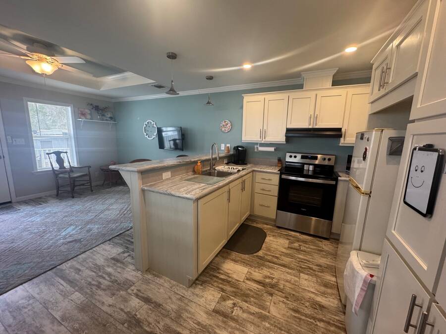 NEW PRICE!! Welcome to this charming 2021 home in the highly desirable Lake Point community in Tavares! This beautifully maintained 2-bedroom, 1-bath home features an open and roomy layout with tall ceilings, soft interior colors, great flooring, and plenty of storage throughout. Enjoy outdoor living with a large deck, carport, porch, and a storage shed-all adding convenience and extra space. Relax on your front porch and take in the beautiful view of Lake Eustis right from your doorstep. Located in the heart of Tavares, you're just minutes from waterfront dining, entertainment, shopping, and all the fun this active community offers. Don't miss this opportunity-call your agent today and come see this lovely home!