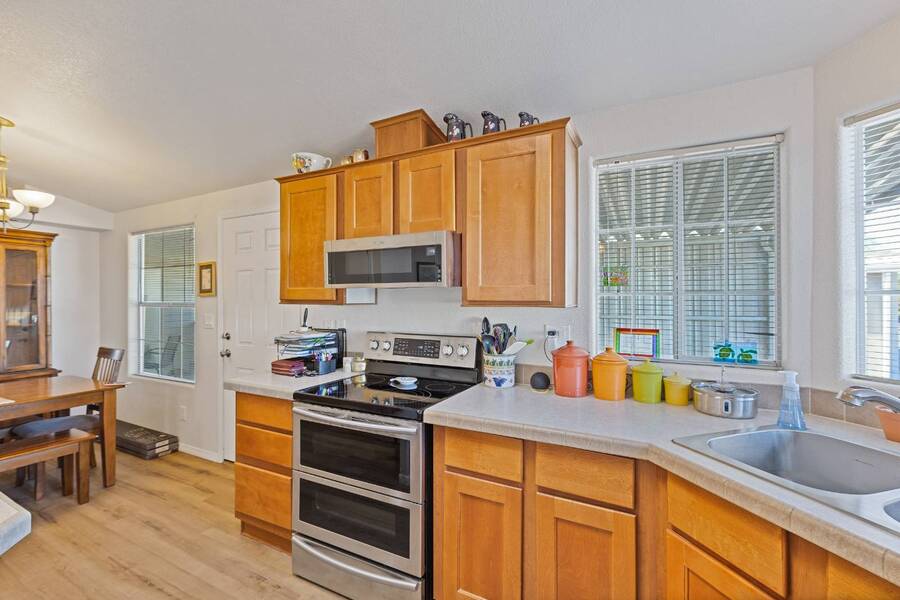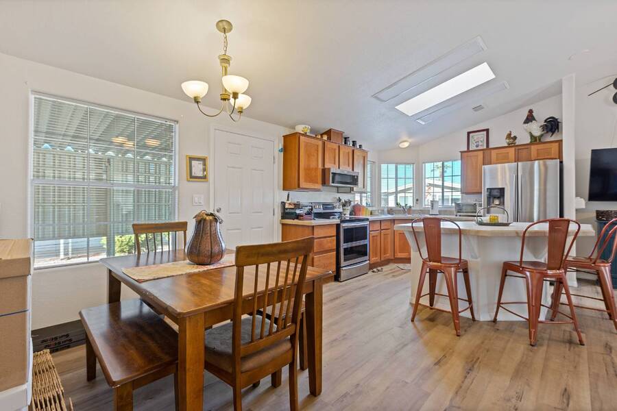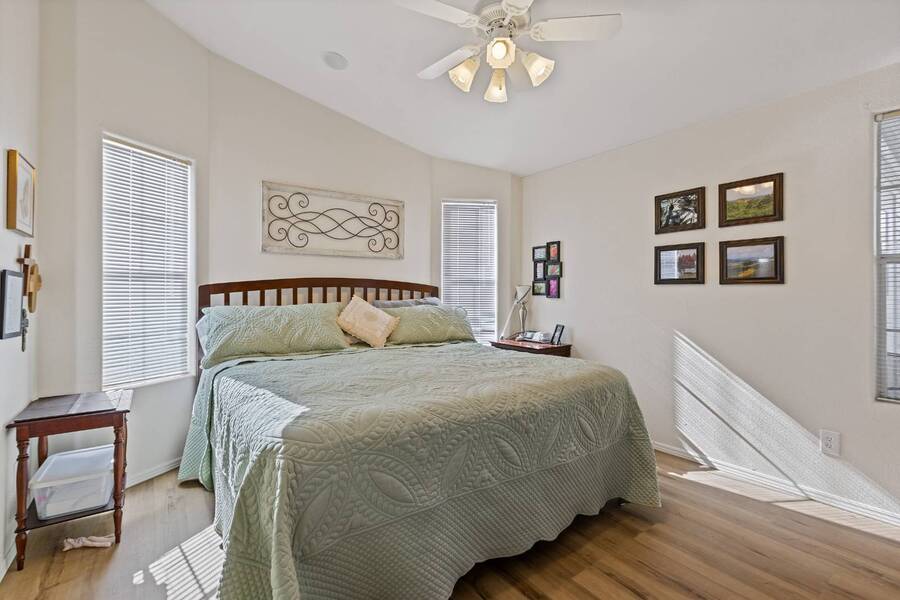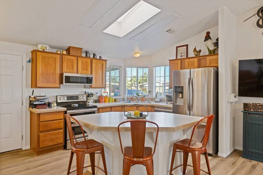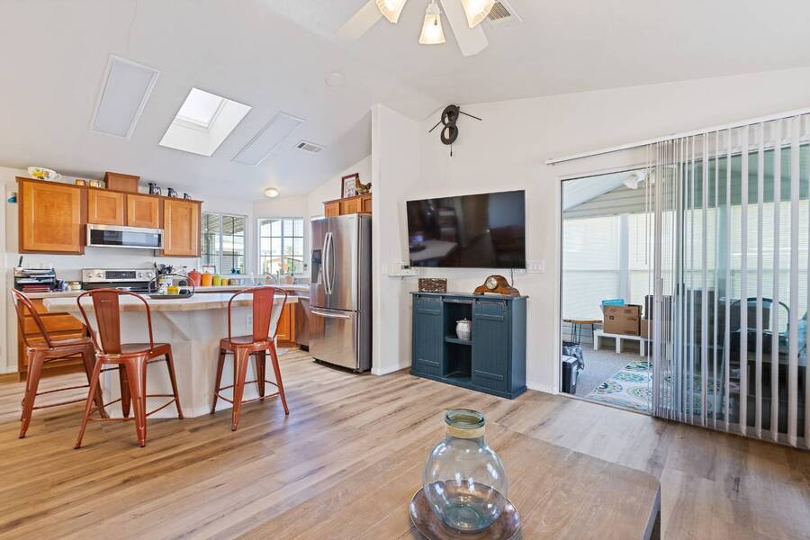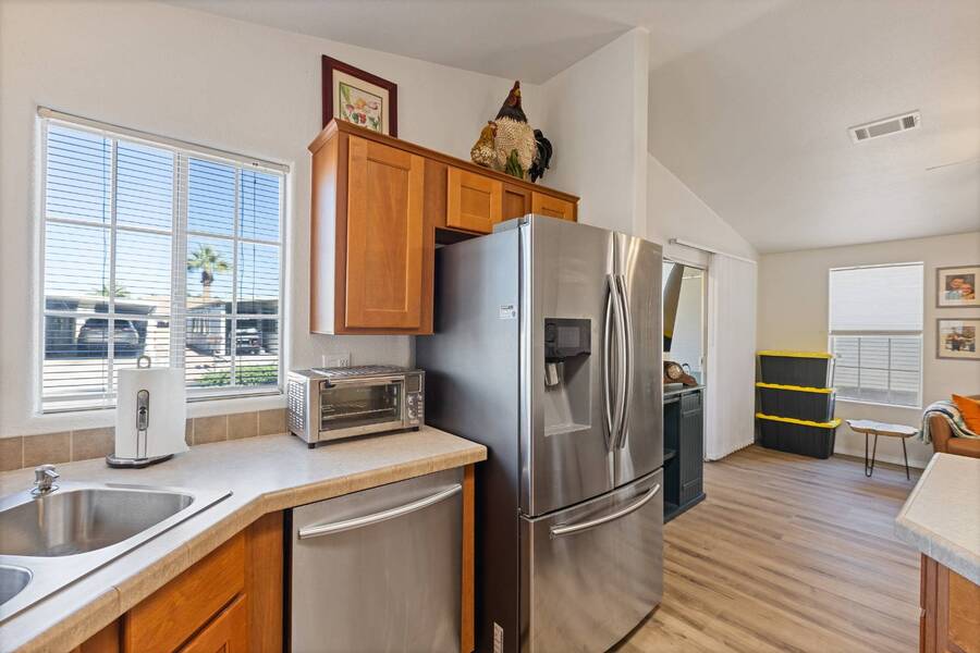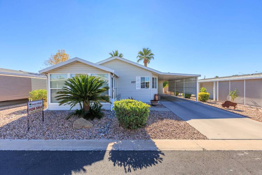 This beautiful 2005 Cavco home has a cozy feel but is spacious and open. The ceiling sky light provides tones of natural lighting in the living area. The all season Arizona room right off the living room would make a great sitting room great for reading or relaxing. Both bedrooms are nicely sized with the primary having its on ensuite bath. Recent updates includes, new toilets, flooring throughout, water heater with all new plumbing, vents cleaned, roof replacement. Don't miss out on this home! Flooring-2025 Vent Cleaning-2025 Water Hester w/plumbing-2022 Roof- 2021 Stainless Steel Appliances-2019 Experience the Thesman Lifestyle, we are an active 55 plus land lease community where luxury meets affordability. For over 40 years we have set the standard with world class amenities and year-round activities. Our community features a gated community, with a beautiful clubhouse including ballroom, library with computers and individual rooms for cards, billiards, arts & crafts and fitness center. Enjoy outdoor amenities heated pool & spa, BBQ area, pet park, sport courts for shuffleboard. Our activities director assures a full calendar of social and recreation events. Our shuttle bus makes it easy and convenient to attend sporting and special events, plus local shopping. Whether you want to relax or stay active our vibrant communities offer everything you need to enjoy life to the fullest. Start living the Thesman Lifestyle today!
