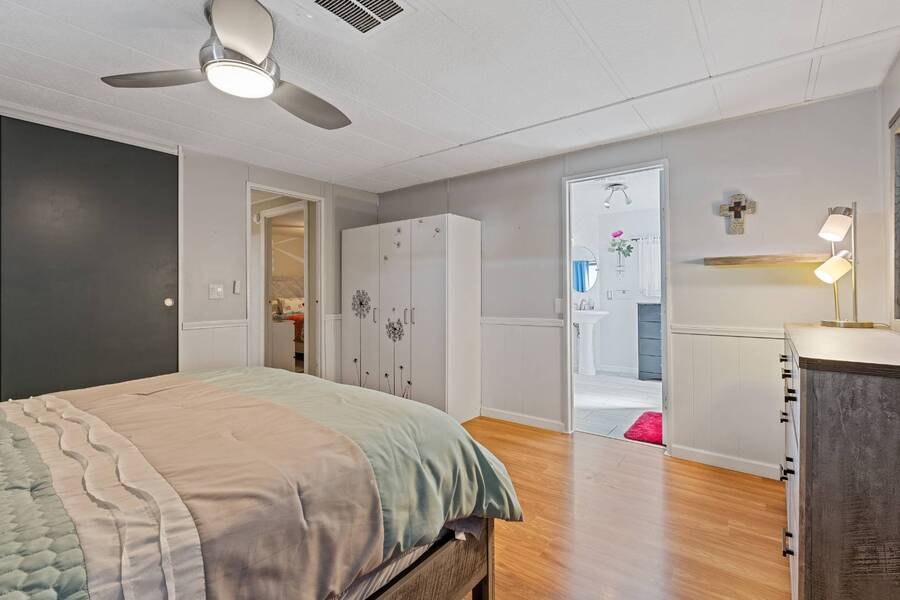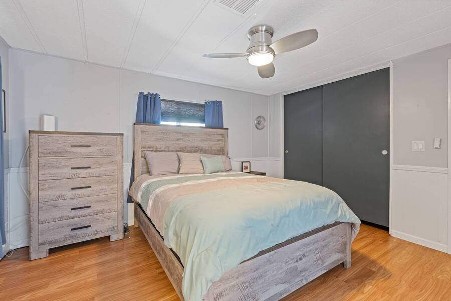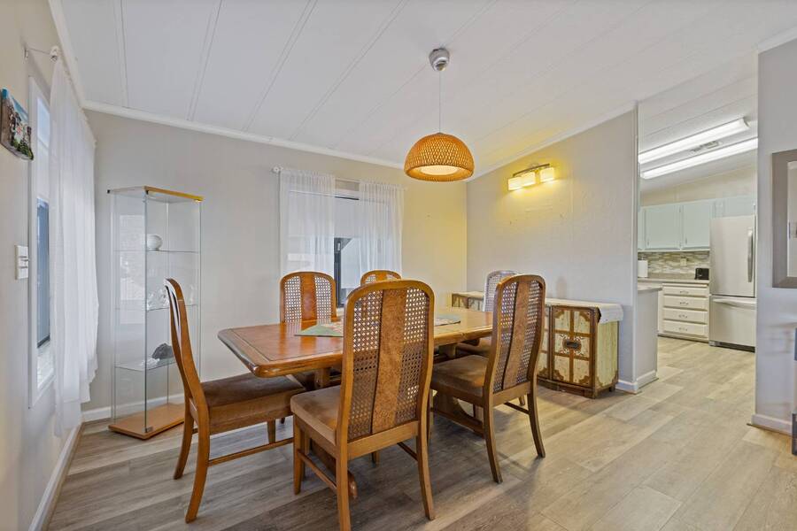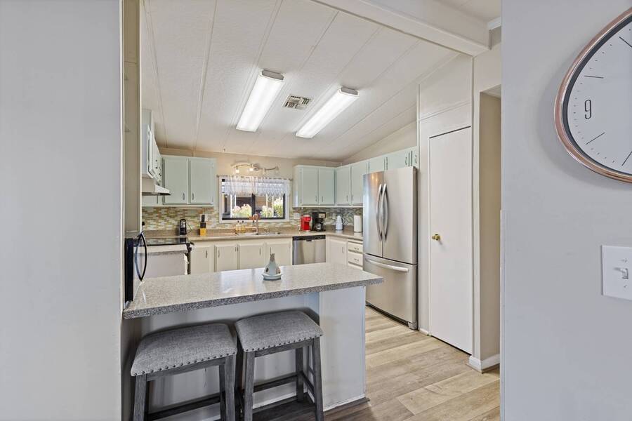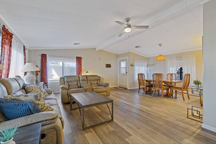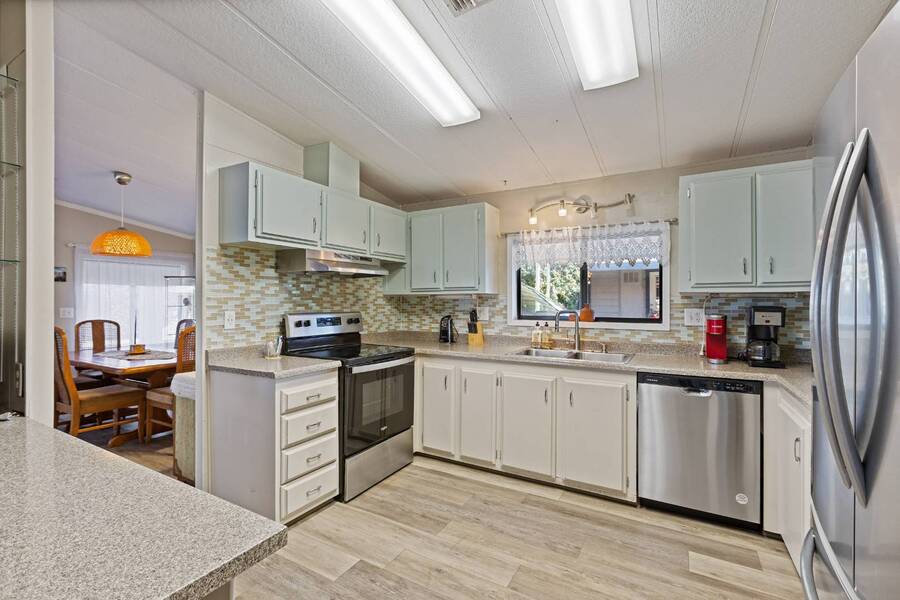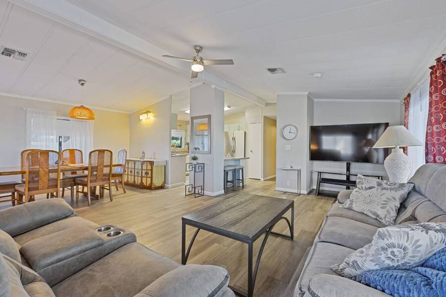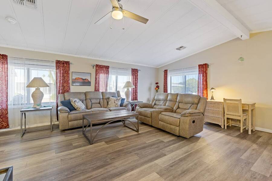 Purchase by 4/30/26 for $5000 BUYERS CREDIT!! Fully furnished home located at the very end of a quiet street, offering excellent privacy and an open-concept layout. Features new flooring throughout, an updated kitchen with modern appliances, and spacious living and dining areas filled with natural light. Both bathrooms include walk-in showers, and the primary suite also offers a relaxing garden tub. Move-in ready with comfortable furnishings and a welcoming layout. A/c- 2023 |Roof- 2023 |Stainless Appliances Experience the Thesman Lifestyle, we are an active 55 plus land lease community where luxury meets affordability. For over 40 years we have set the standard with world class amenities and year-round activities. Our community features a gated community, with a beautiful clubhouse including ballroom, library with computers and individual rooms for cards, billiards, arts & crafts and fitness center. Enjoy outdoor amenities heated pool & spa, BBQ area, pet park, sport courts for shuffleboard. Our activities director assures a full calendar of social and recreation events. Our shuttle bus makes it easy and convenient to attend sporting and special events, plus local shopping. Whether you want to relax or stay active our vibrant communities offer everything you need to enjoy life to the fullest. Start living the Thesman Lifestyle today!