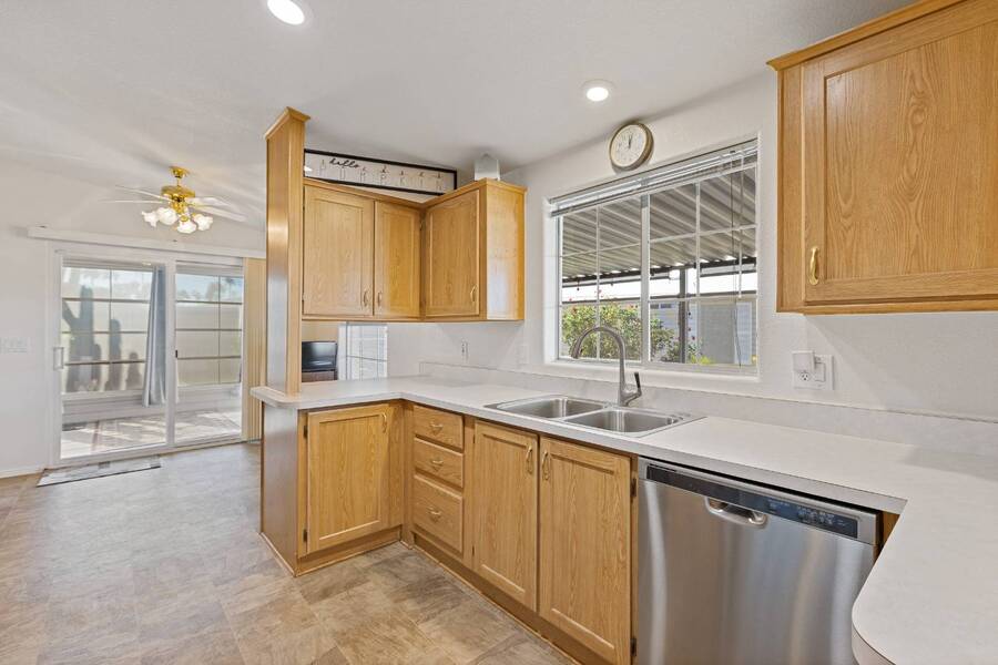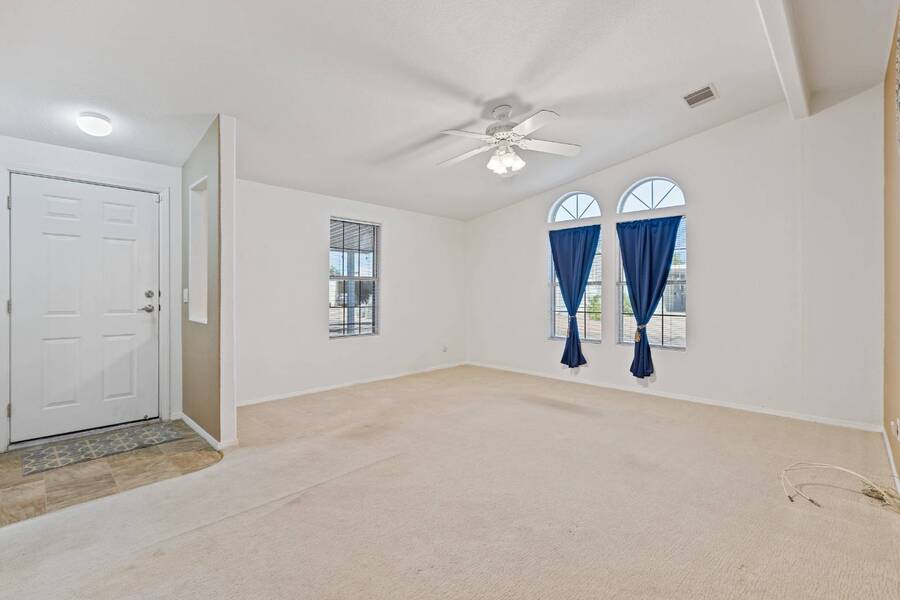 Charming 2BD/2BA home w/bonus room off the primary bedroom-perfect for a home office or crafting! Enjoy a bright, cheerful layout with a galley-style eat-in kitchen featuring stainless steel appliances. Fully tape and textured, this home offers ideal N/S exposure and is conveniently close to the clubhouse. Includes sunshades to minimalize summer A/C usage, golf cart parking, and a newer HVAC system with updated ductwork for added comfort and efficiency..... HVAC and updated duct work - 2022.... Stainless steel kitchen appliances.... Bonus room..... Close to clubhouse............................ Experience Thesman Communities Lifestyle, we are an active 55 plus community where luxury meets affordability. For over 40 years we have set the standard with world class amenities and year-round activities. Our community is a 24-hour gated community, with a beautiful 20,000 square foot clubhouse including ballroom, fireside lounge, library with computers and individual rooms for cards, billiards, arts & crafts and fitness center. Enjoy outdoor amenities heated pool & spa with cabanas, BBQ area, pet park, sport courts for pickleball, tennis, bocce, shuffleboard and basketball. Our activities director assures a full calendar of social and recreation events. Our shuttle bus makes it easy and convenient to attend sporting and special events, plus local shopping. Whether you want to relax or stay active our vibrant communities offer everything you need to enjoy life to the fullest. Discover Thesman Communities and start living the Thesman Lifestyle today!