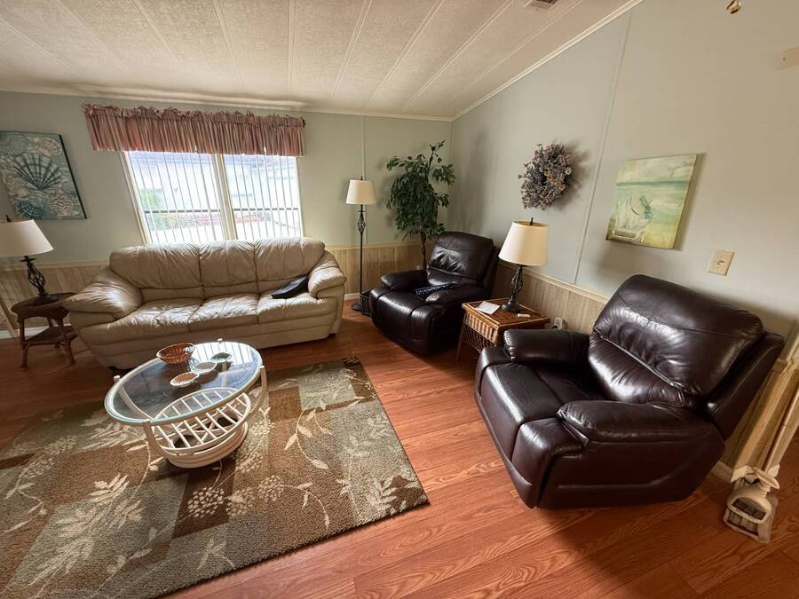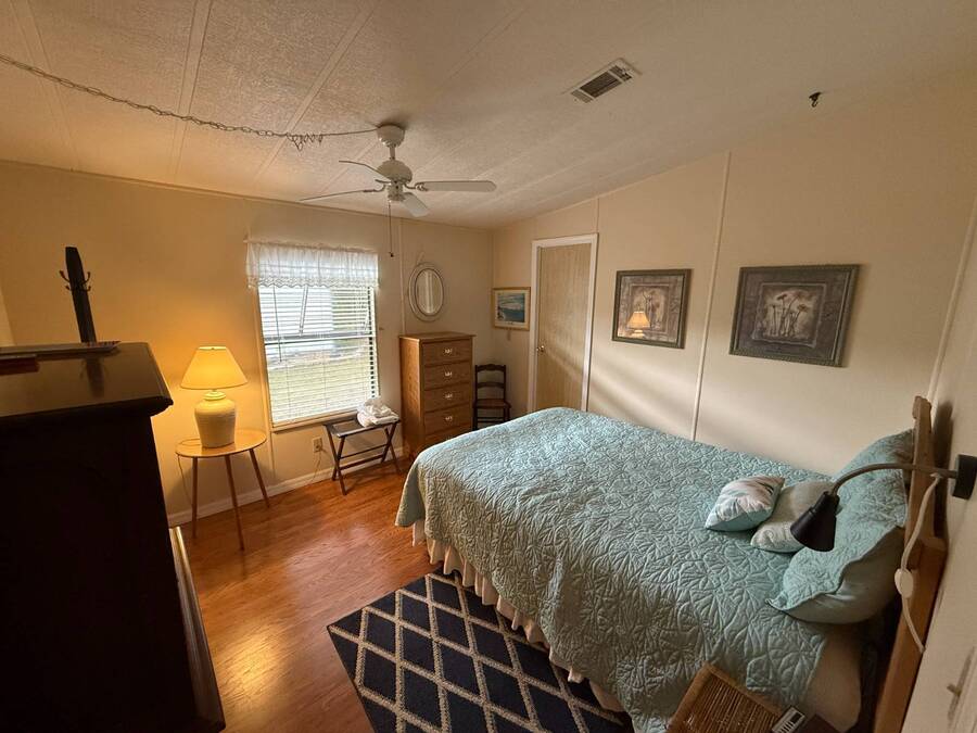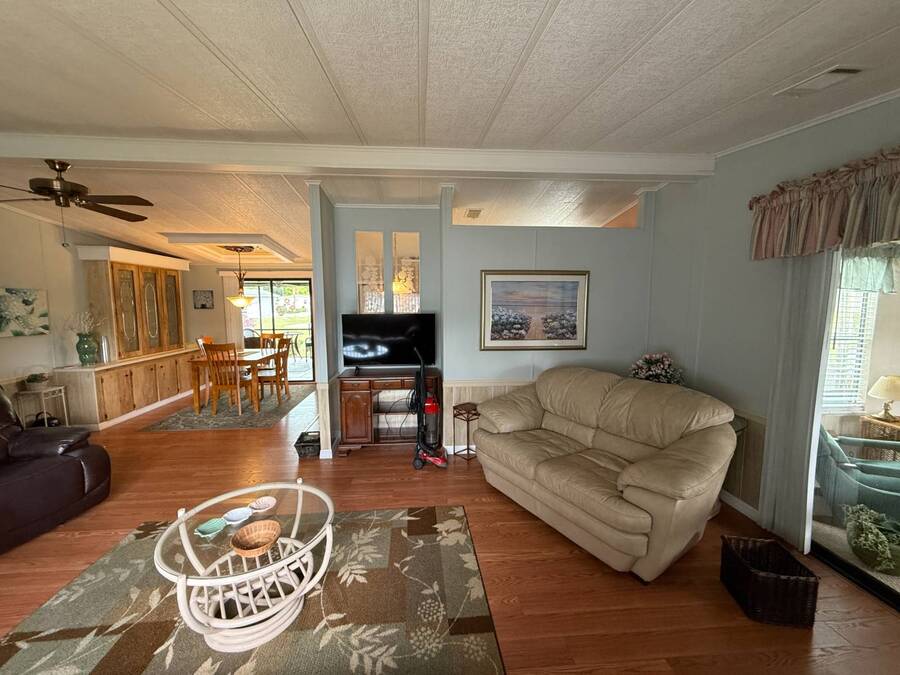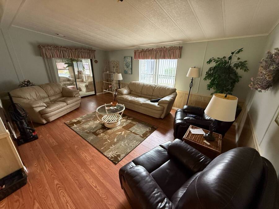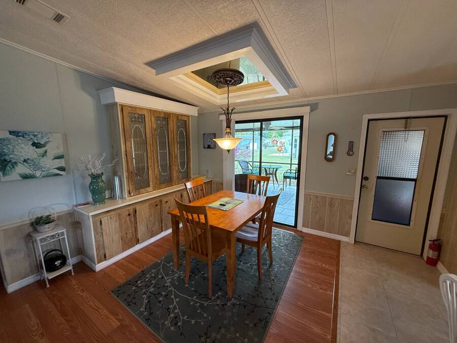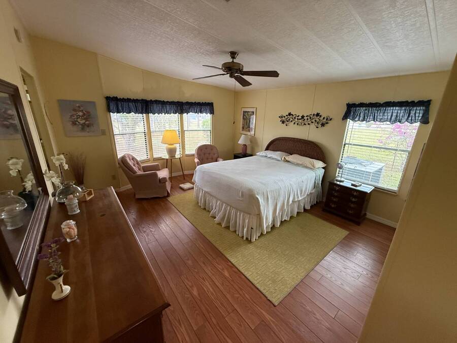 This well cared for 2-bedroom, 2-bathroom home is being sold furnished. The home is located on a quiet street just a few houses down from one of the five pools in the community. When you arrive at the home, you will see the tasteful landscape, shutters on the front of the home, gutters around the home, and a covered front entryway. As you enter the home, you are in the front sitting area with plenty of seating, carpet floors, and a ceiling fan. The primary living area has plenty of additional seating with natural lighting from the windows. The dining area has a table with chairs, a built-in hutch, trey ceilings with a pendant light. The kitchen has lots of cabinets, a breakfast table, and a ceiling fan. The guest bedroom has a bed with furniture, a large closet, and a ceiling fan. The guest bathroom has a single sink vanity, tub with shower, linen cabinet, and tile floors. The primary bedroom is a large room with a queen bed, furniture, a wall closet, and a ceiling fan. The primary bathroom has a large double sink vanity, with a walk-in closet, and separate room for shower. The lanai is a great area to relax and enjoy the Florida weather. This is a screened room with tile floors, a ceiling fan, and table with chairs. UPDATES: Roof (2018) Only a few minutes to one of the five pools & hot tubs, clubhouse, & fitness center as well as tennis courts, pickleball courts and golf course. This community has a full social calendar and activity schedule. Plenty to keep you busy! This is a 55+ (very active) community. Come join this luxury lifestyle community. YOU WON'T BE DISAPPOINTED!!